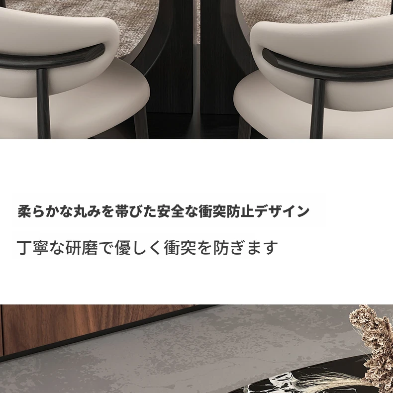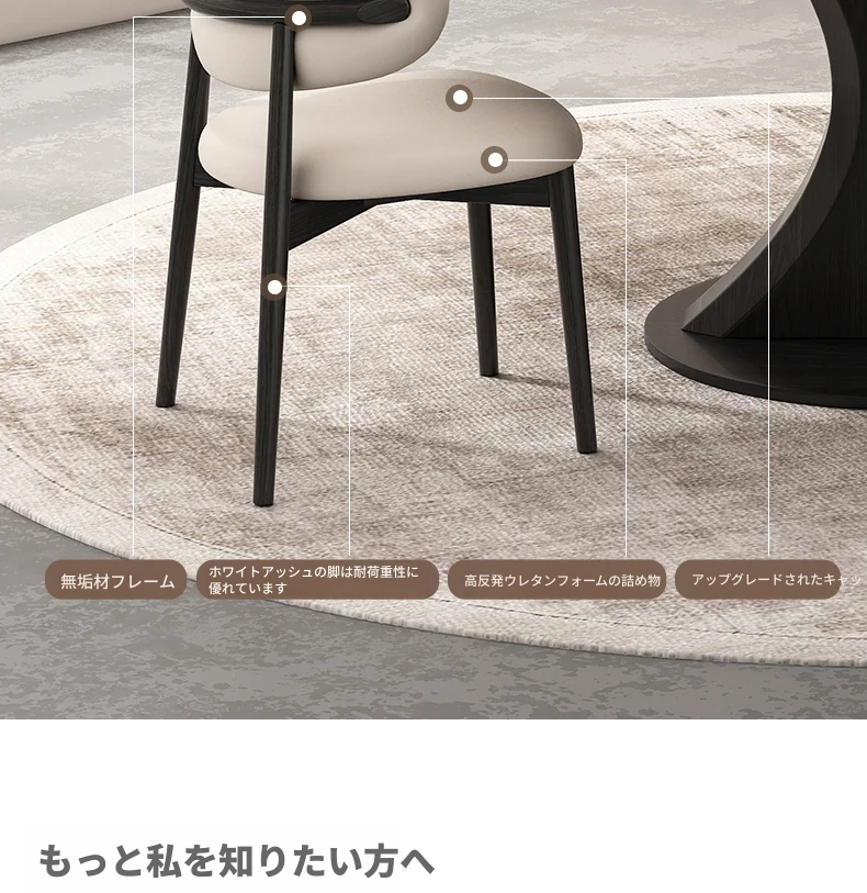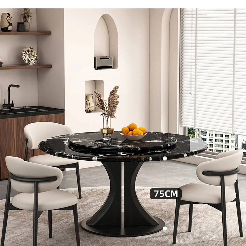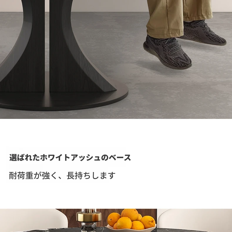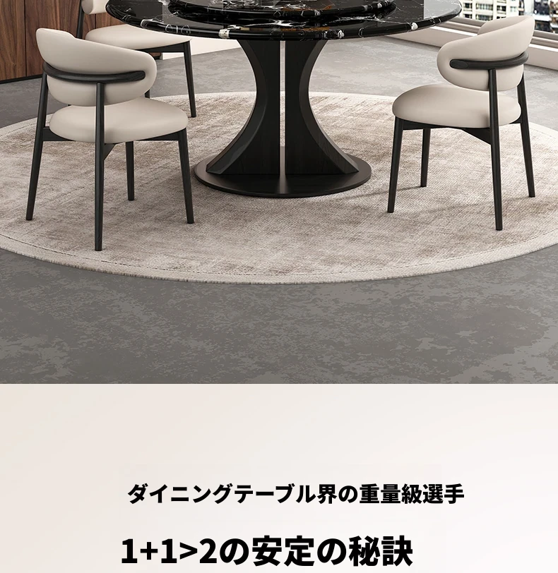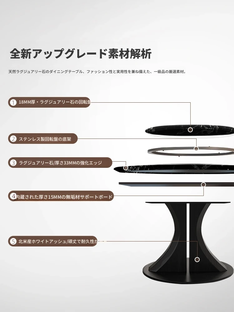 天然ラグジュアリーストーンダイニングテーブル+ラグジュアリーストーン回転テーブル【輸入ラグジュアリーストーン+ホワイトアッシュベース】+猫の爪を防ぐ無垢材ダイニングチェア*4