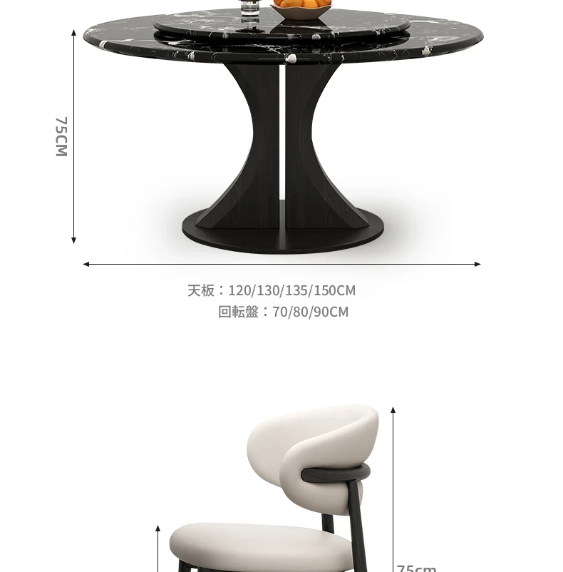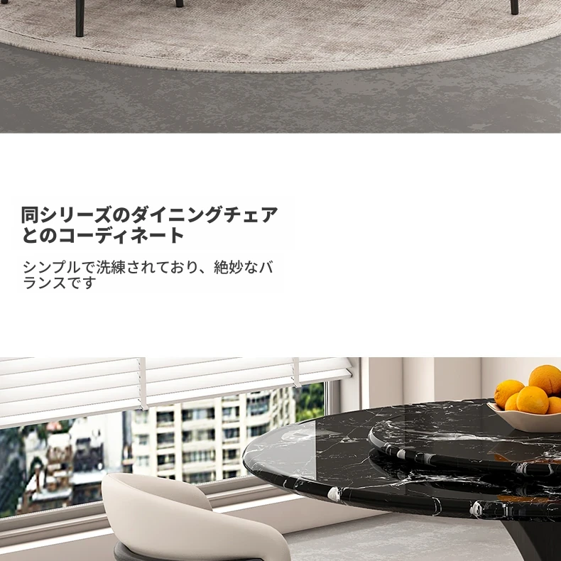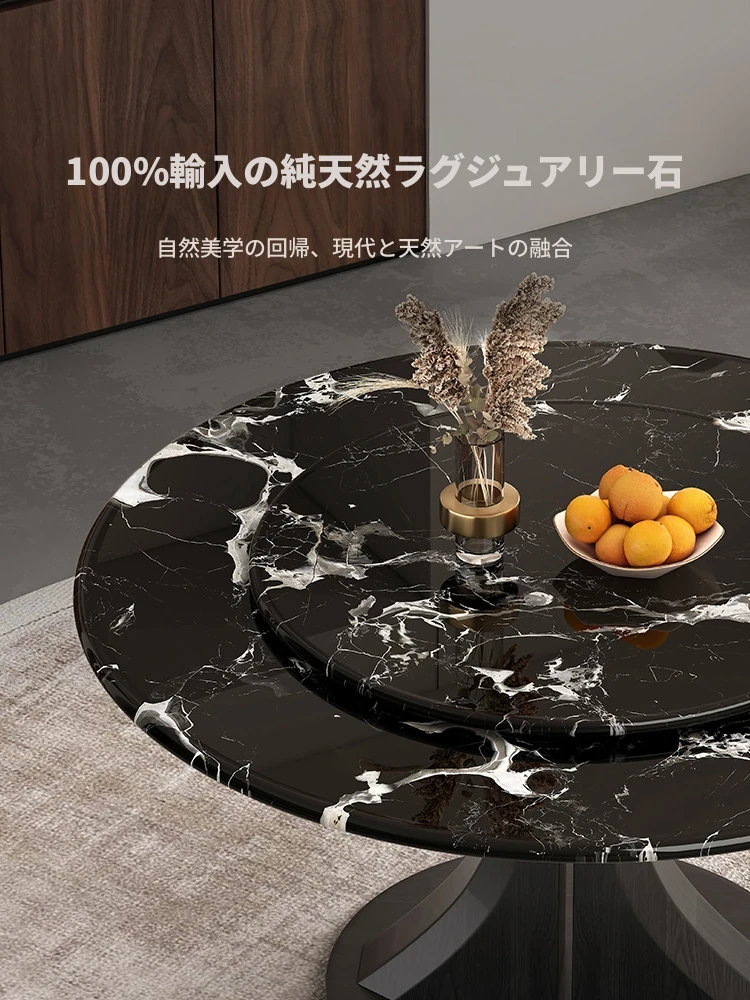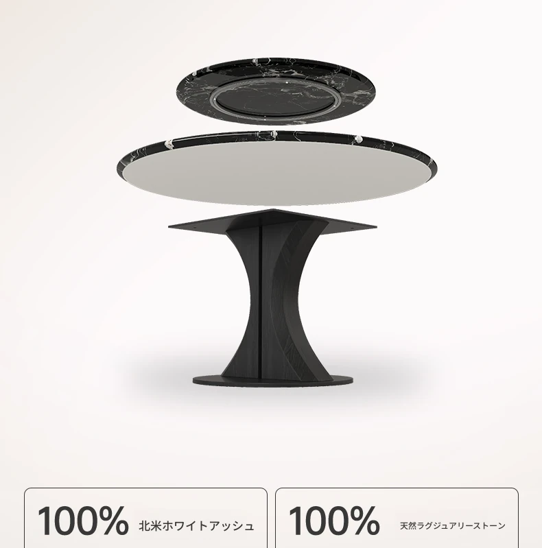 天然ラグジュアリーストーンダイニングテーブル+ラグジュアリーストーン回転テーブル【輸入ラグジュアリーストーン+ホワイトアッシュベース】