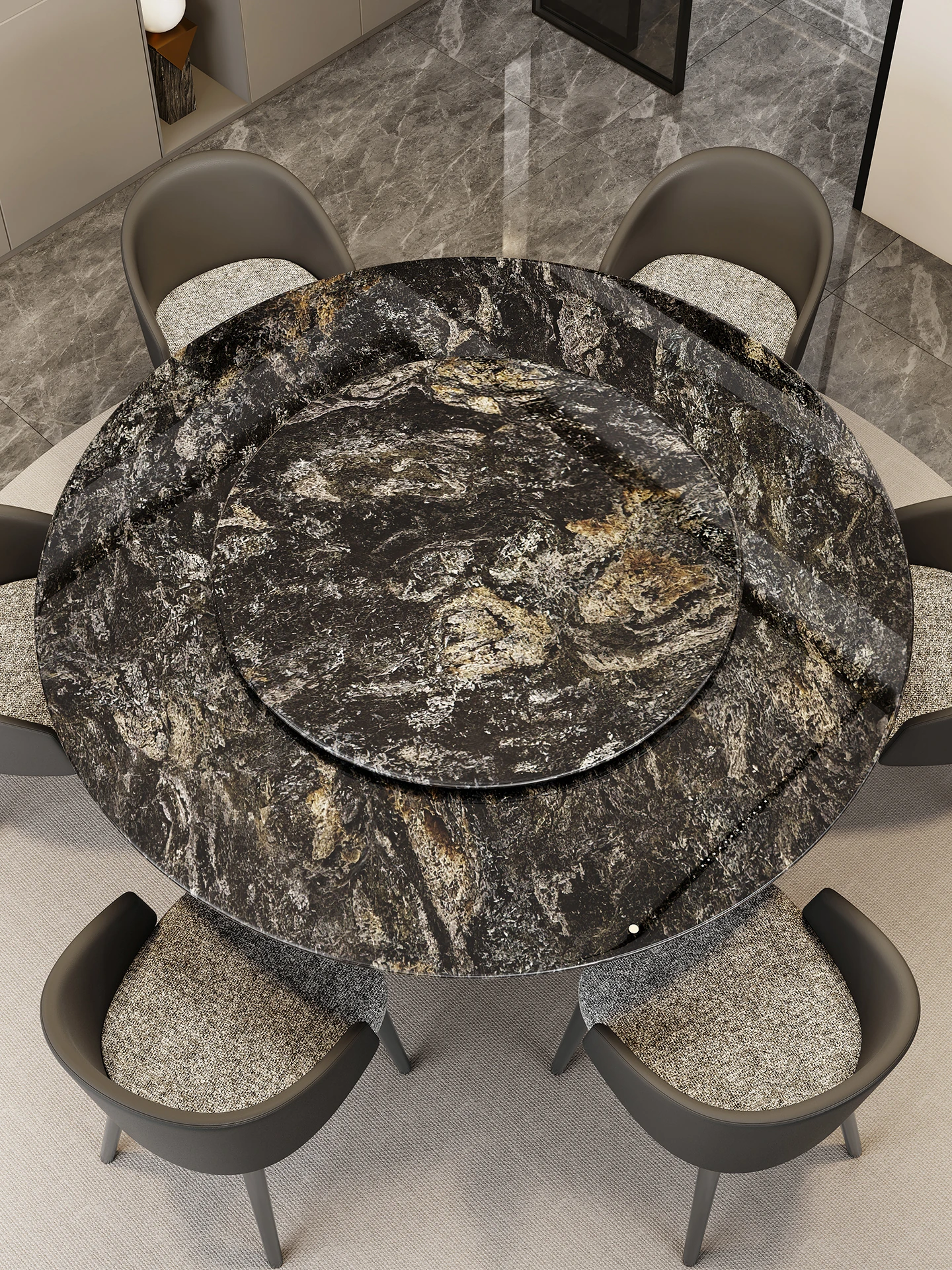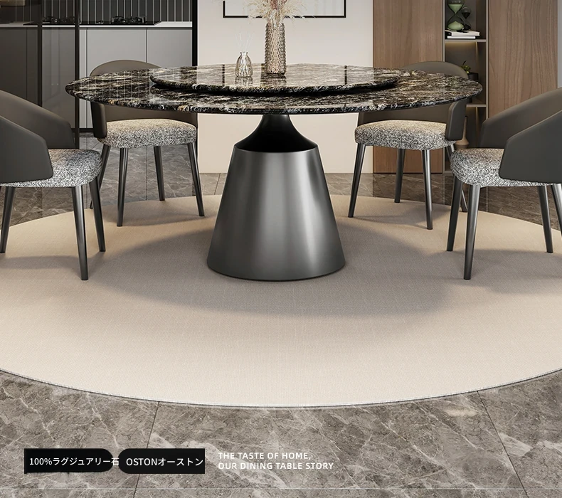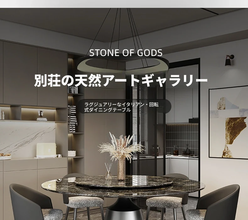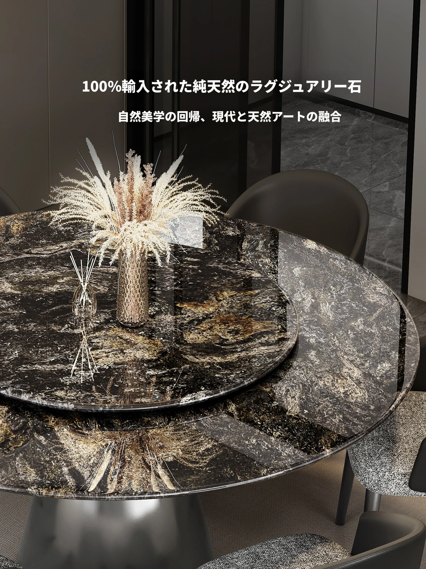 天然輸入プラチナダイヤモンド高級大理石ラウンドテーブル - イタリアンスタイルのラグジュアリーを体感!回転式ターンテーブル付き、家庭用や別荘にも最適な上品な食卓。
