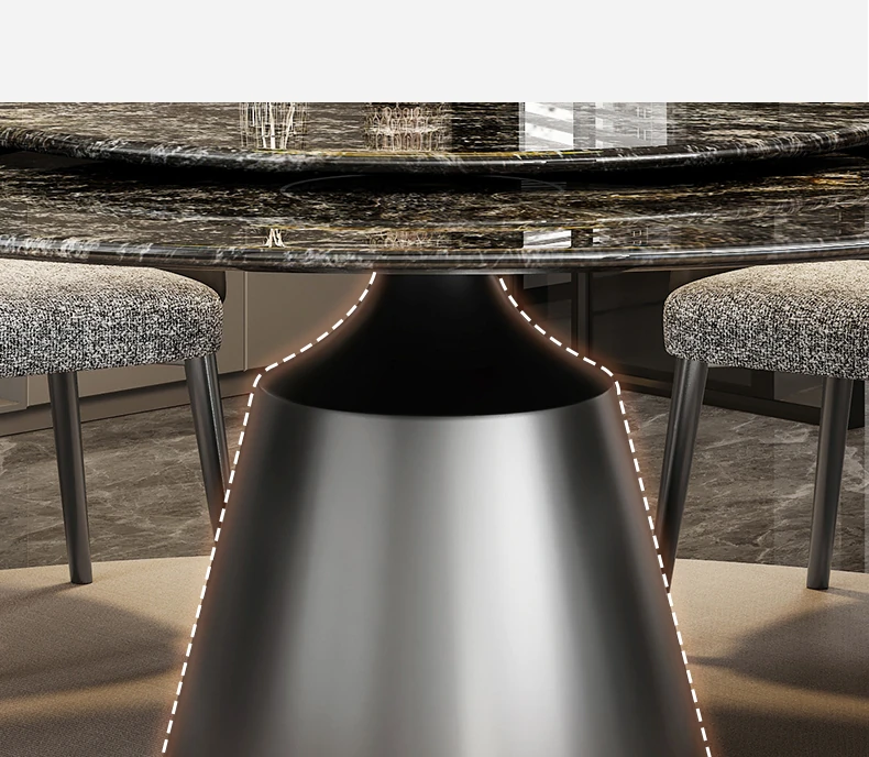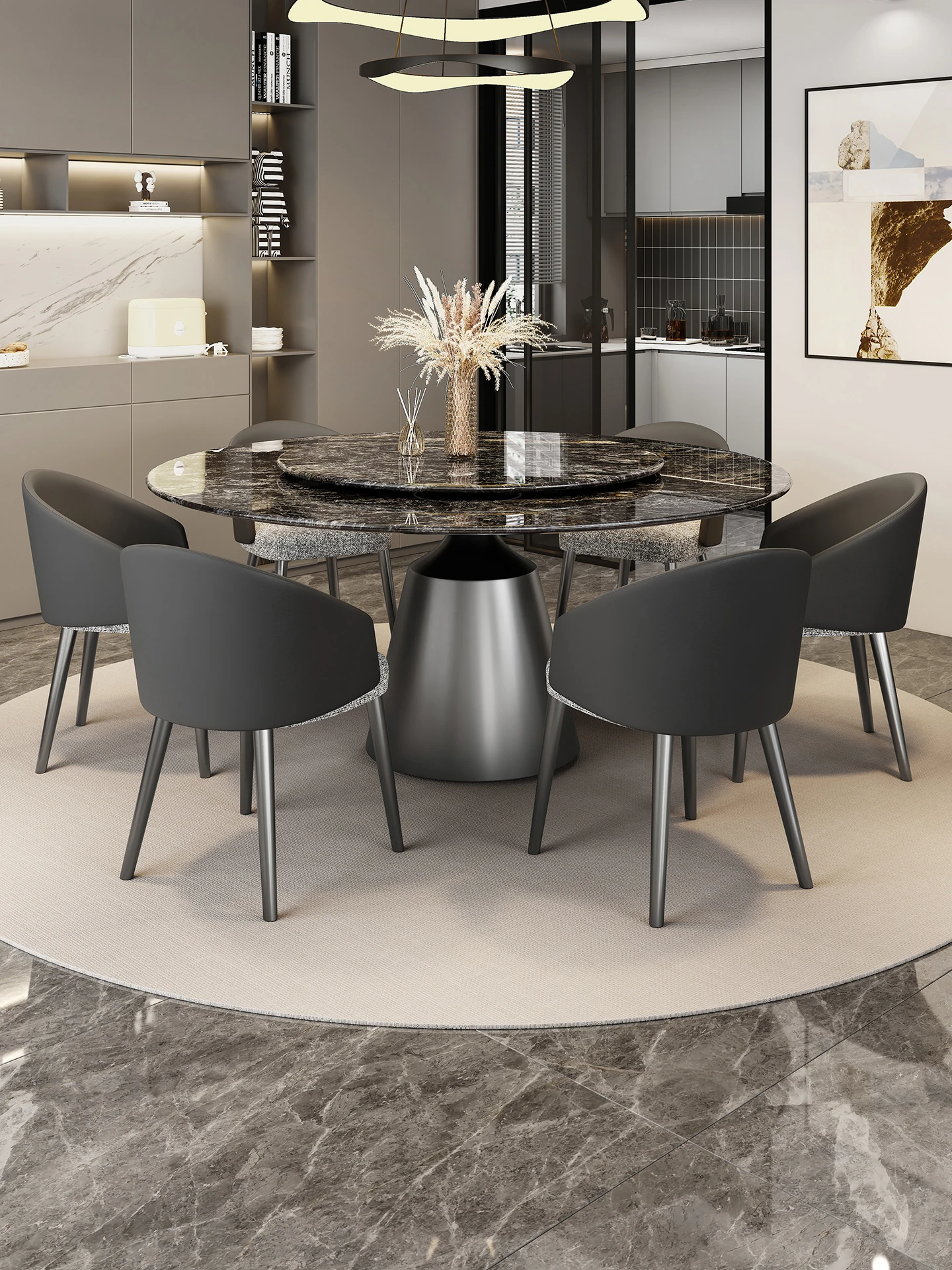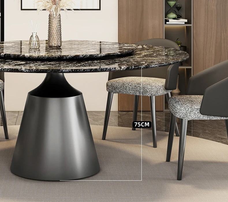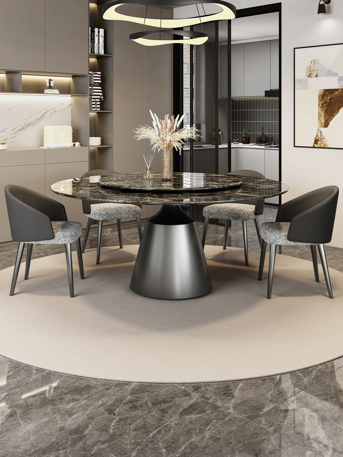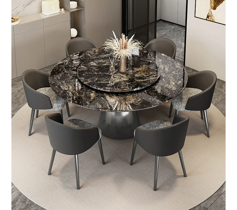 天然輸入プラチナダイヤモンド高級大理石ラウンドテーブル - イタリアンスタイルのラグジュアリーを体感!回転式ターンテーブル付き、家庭用や別荘にも最適な上品な食卓。