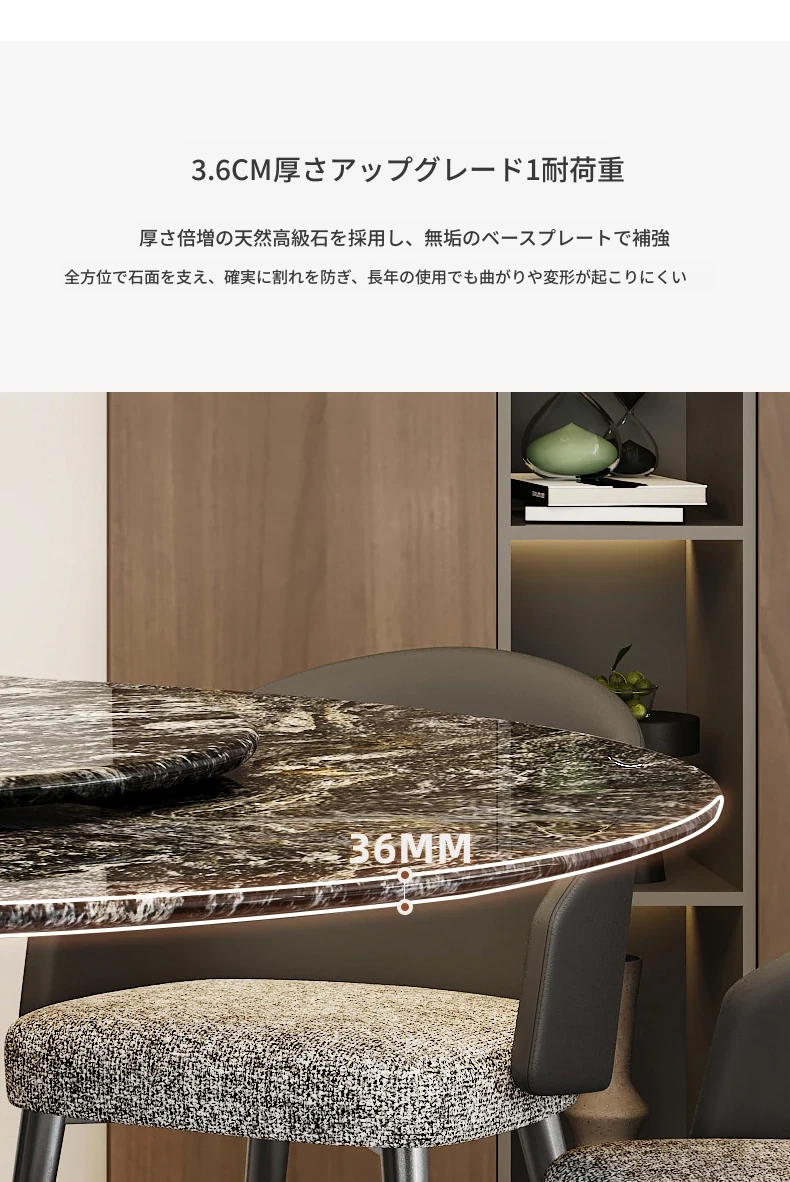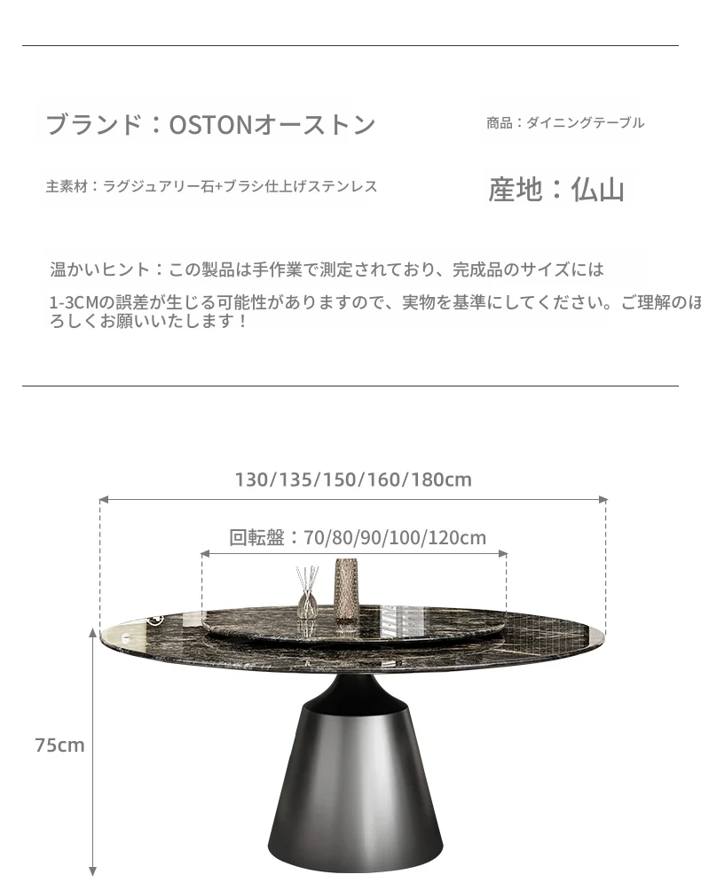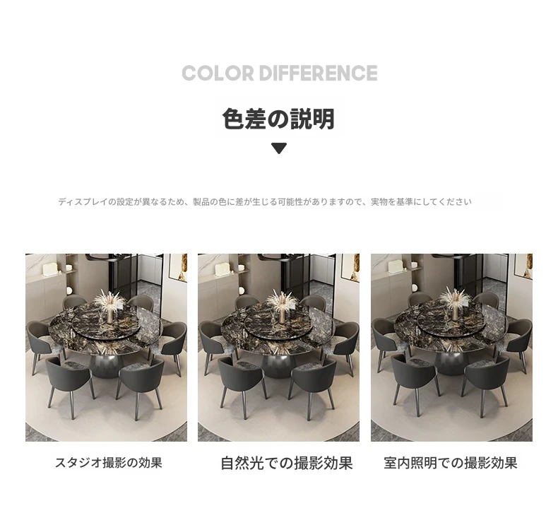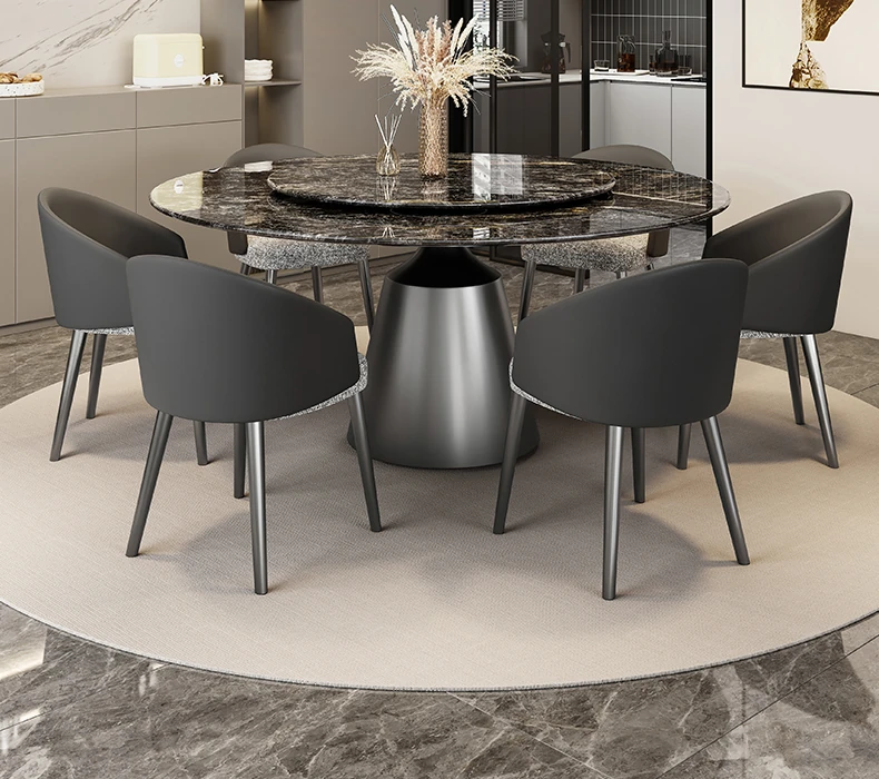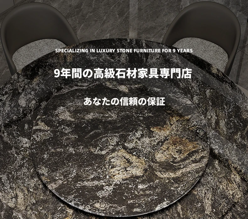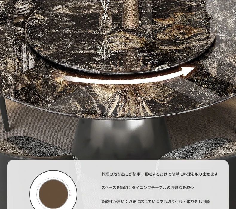 インポートプラチナダイヤモンド天然ラグジュアリー石ダイニングテーブル+ターンテーブル+ダイニングチェア*6