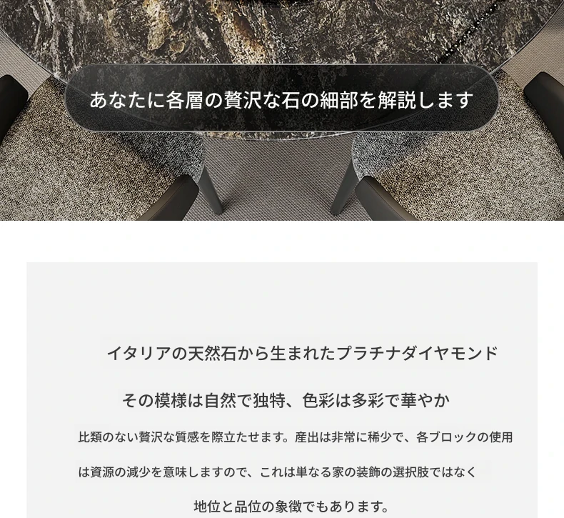 インポートプラチナダイヤモンド天然ラグジュアリー石ダイニングテーブル+ダイニングチェア*6