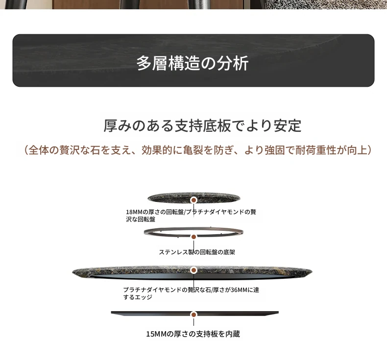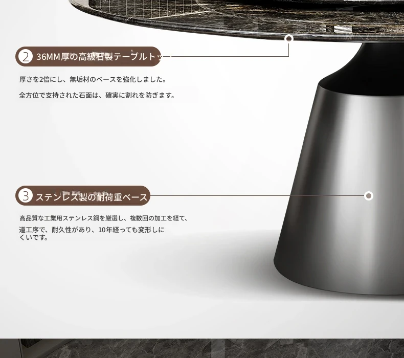 インポートプラチナダイヤモンド天然ラグジュアリー石ダイニングテーブル+ターンテーブル