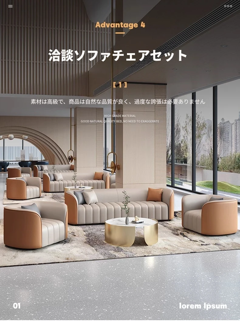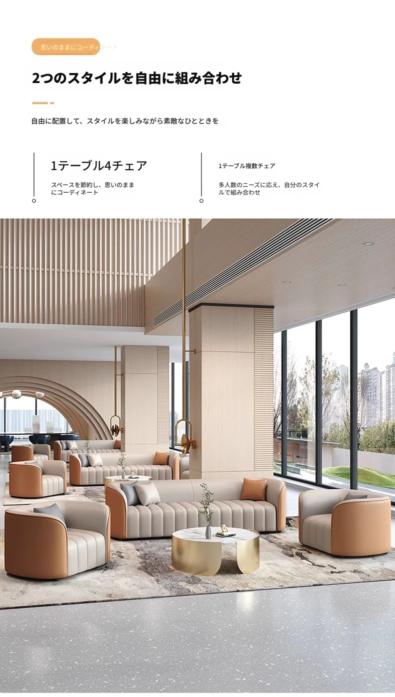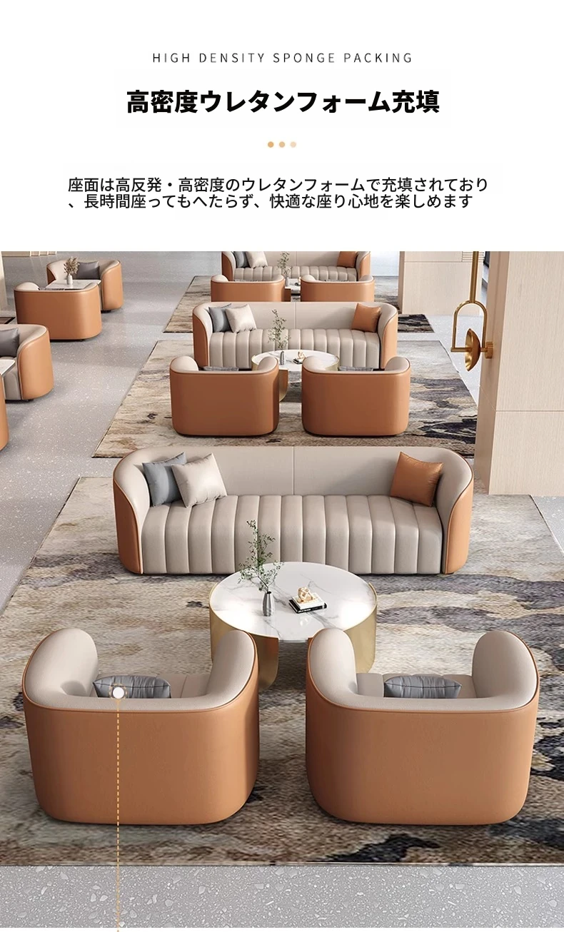 ホテルロビー貴賓室・接客エリアに最適!洗練されたデザインの商談ソファで、快適なひとときを。お客様をお迎えするための理想的なアイテムです。どんな空間にもフィット!