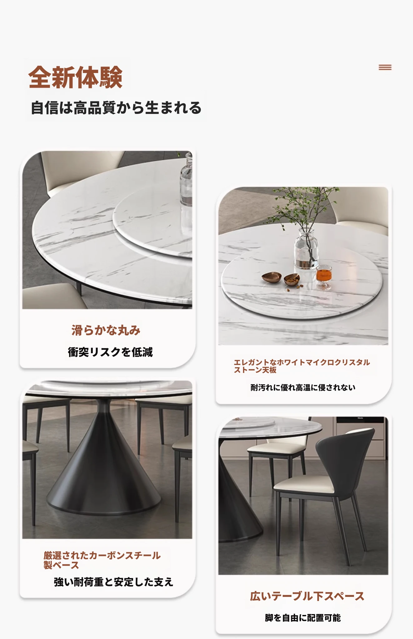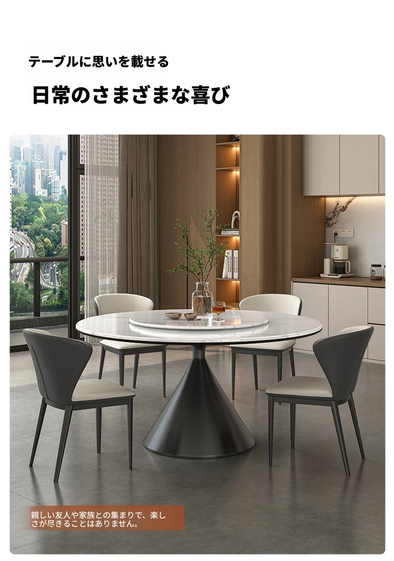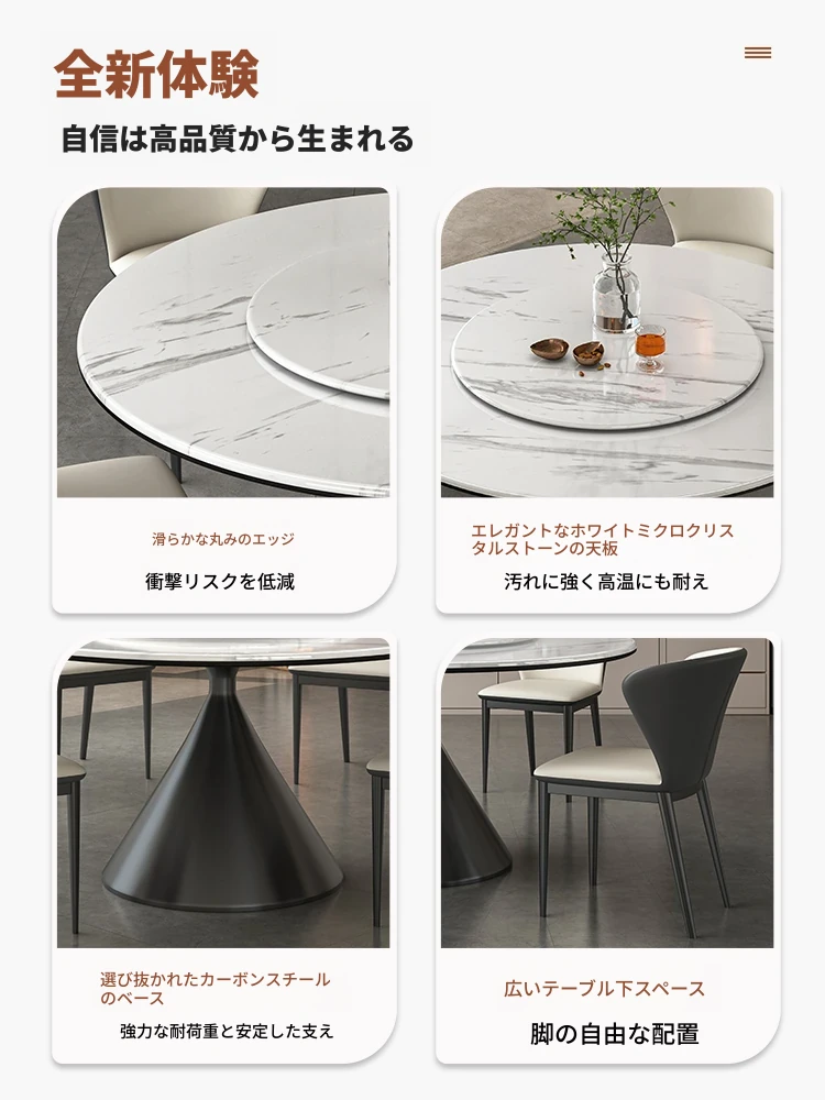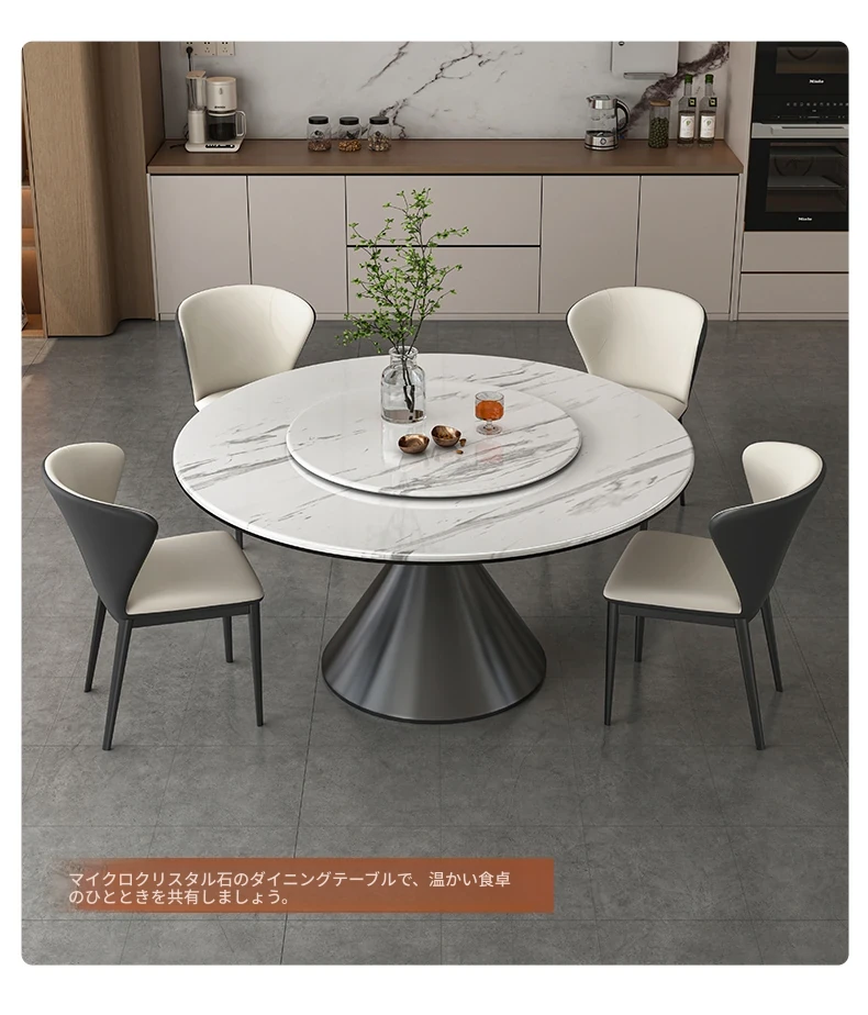 1.35Mマイクロクリスタル石テーブル【回転台付き】+キャットスクラッチレザー椅子*4