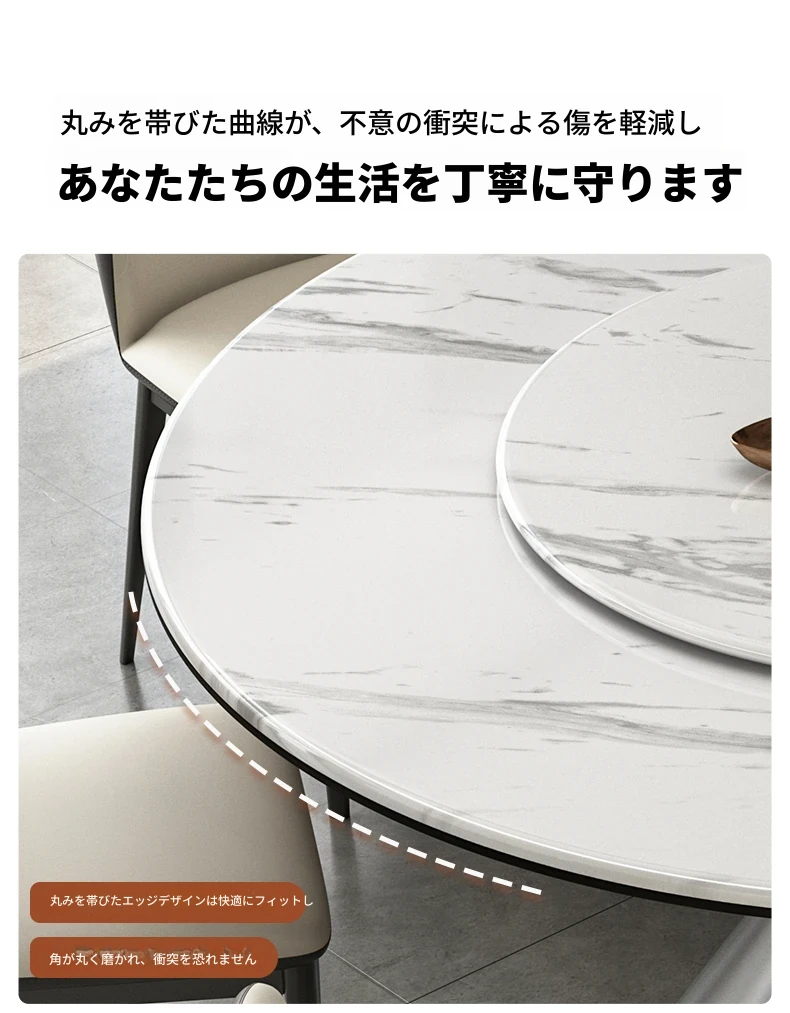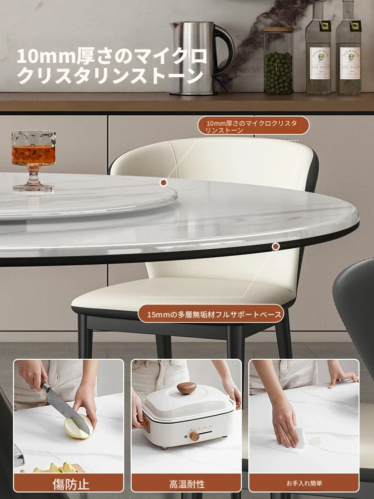 1.5Mマイクロクリスタル石テーブル【回転台付き】+キャットスクラッチレザー椅子*6
