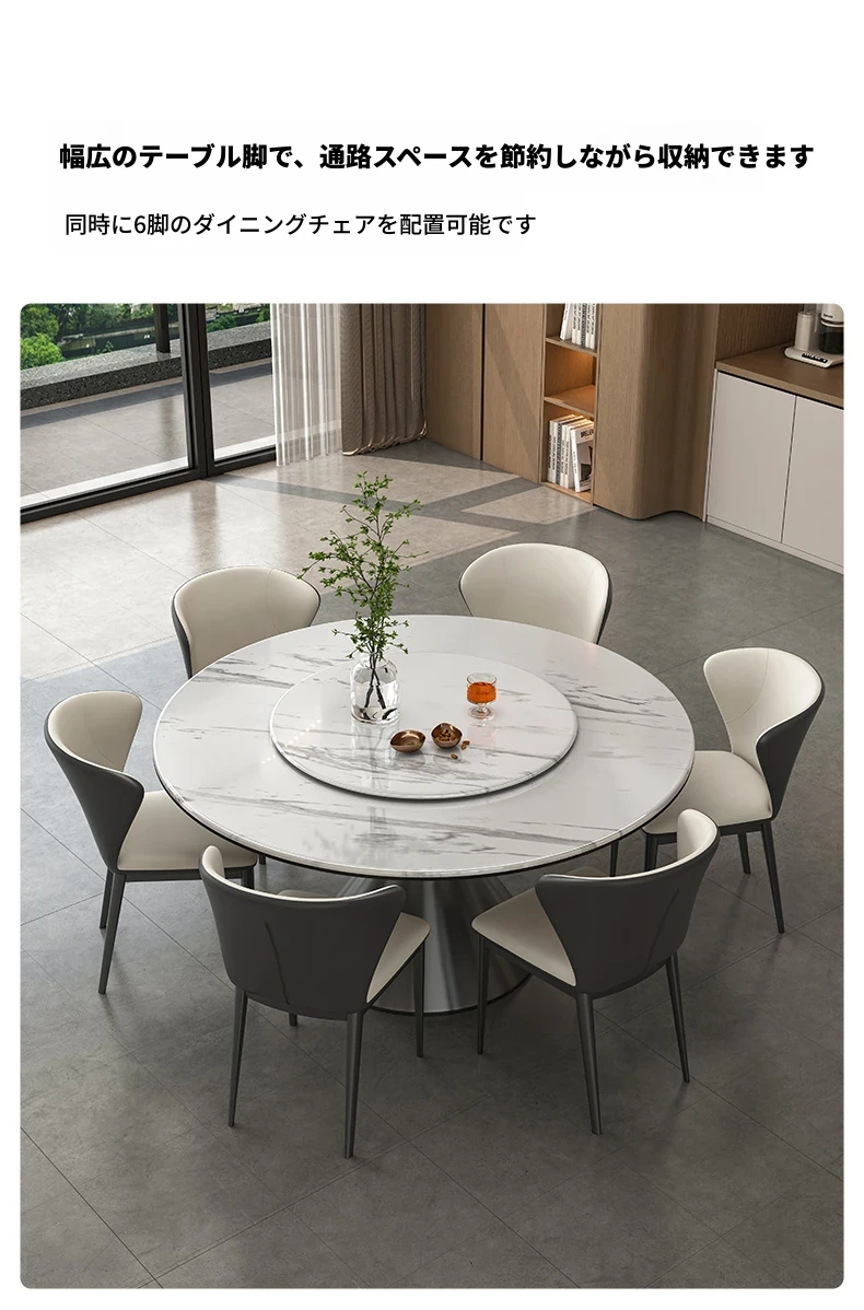 1.2Mマイクロクリスタル石テーブル【回転台付き】+キャットスクラッチレザー椅子*6