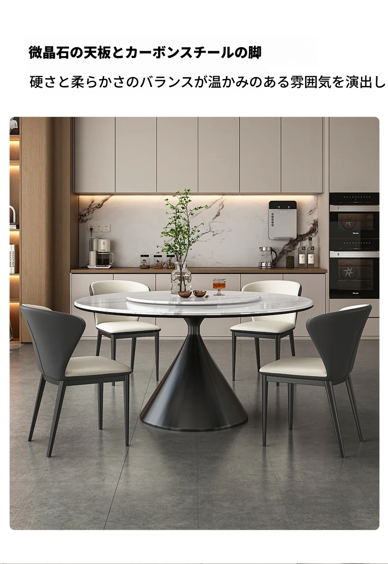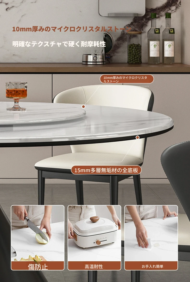 1.2Mマイクロクリスタル石テーブル【回転台付き】+キャットスクラッチレザー椅子*4
