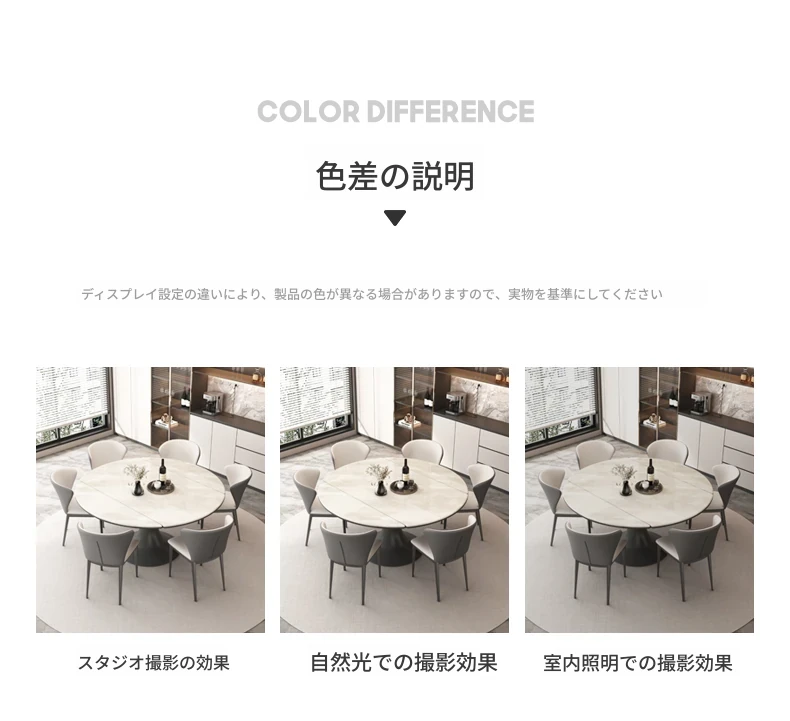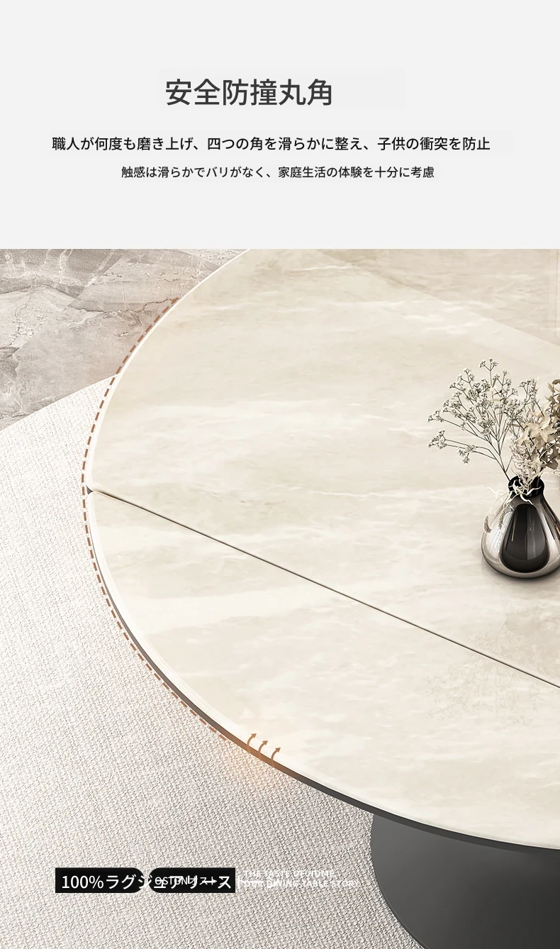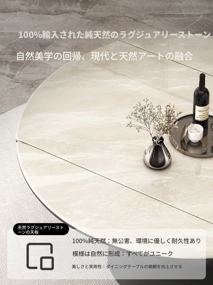 イタリアンモダンスタイルの天然石回転テーブル - スペースを有効活用する伸縮式サークルダイニングテーブル。小さなお部屋にも最適なデザイン!
