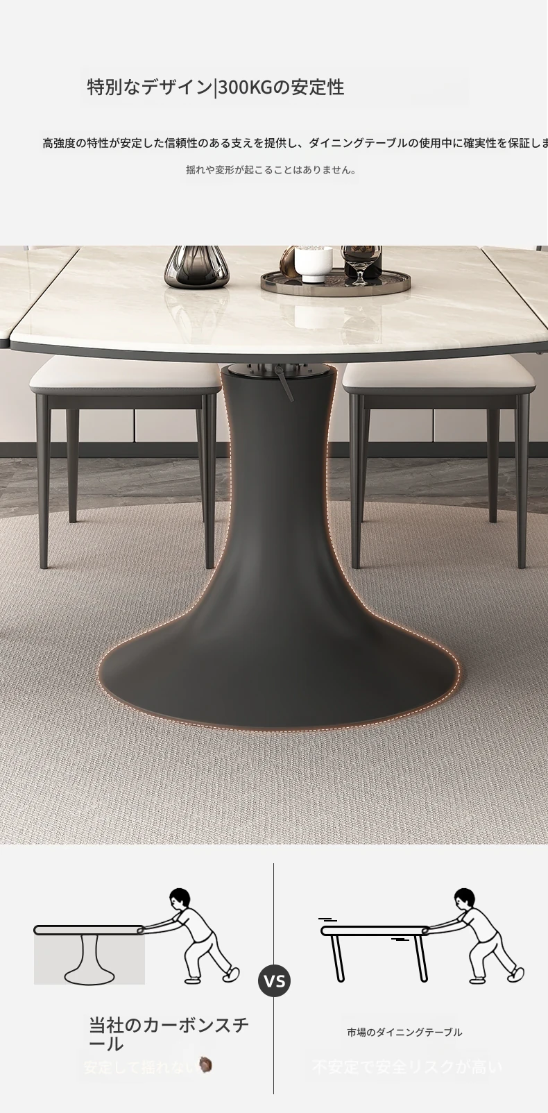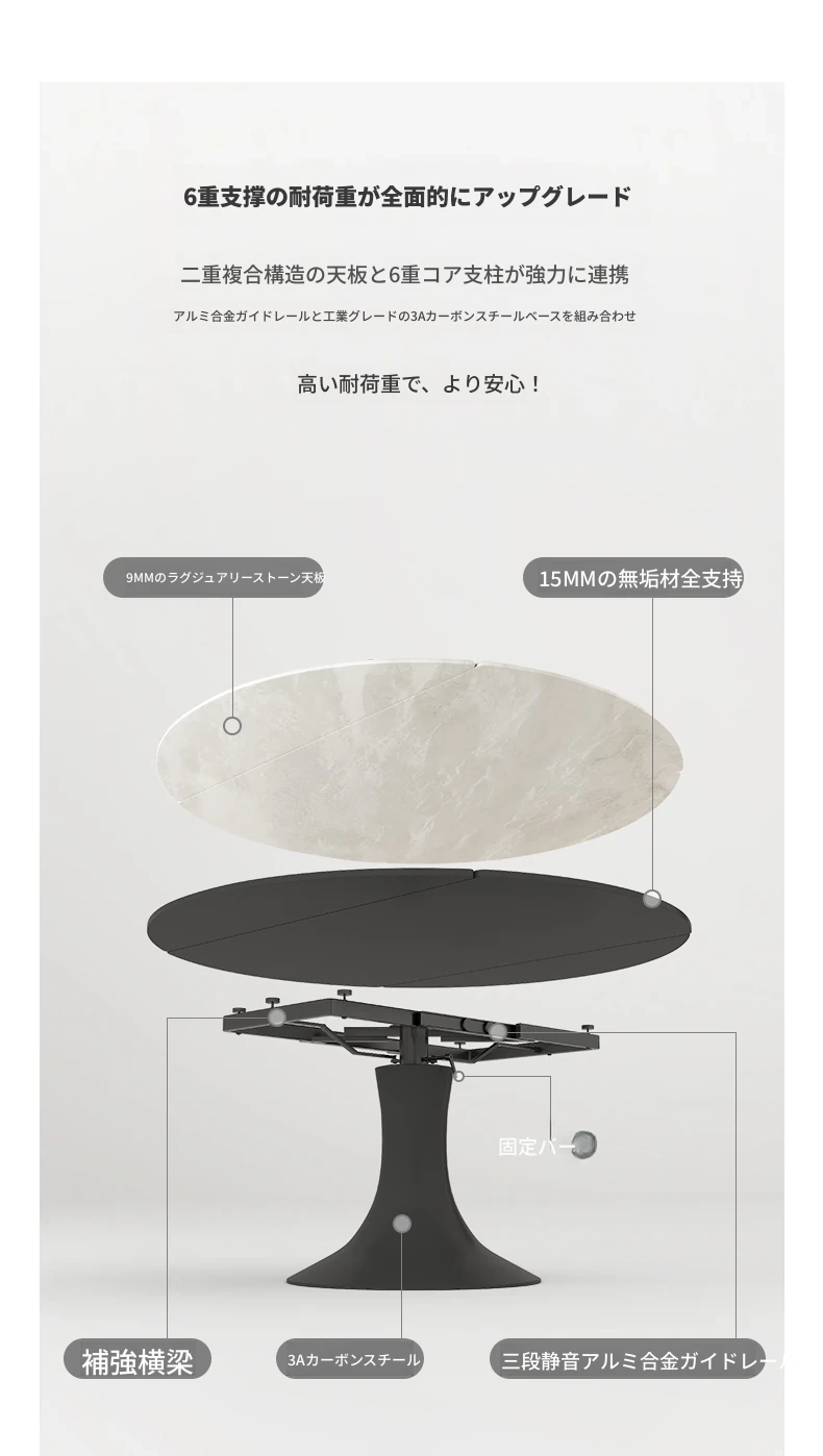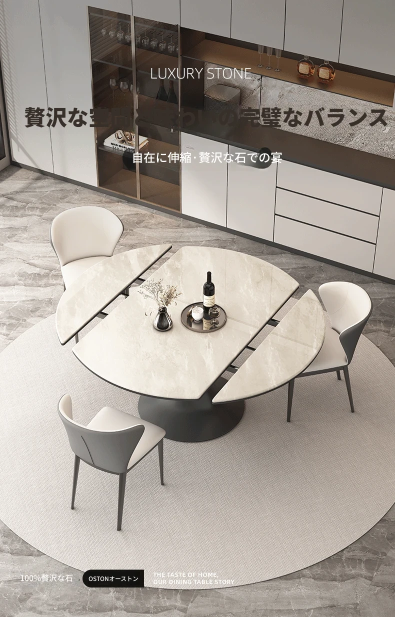 可伸縮ダイニングテーブル(高級輸入ラグジュアリー石)