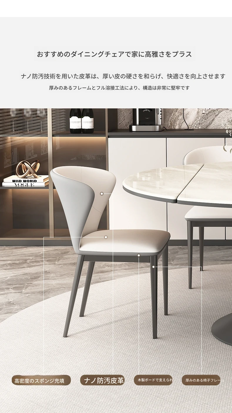 可伸縮ダイニングテーブル(高級輸入ラグジュアリー石)+猫爪皮のダイニングチェア*4