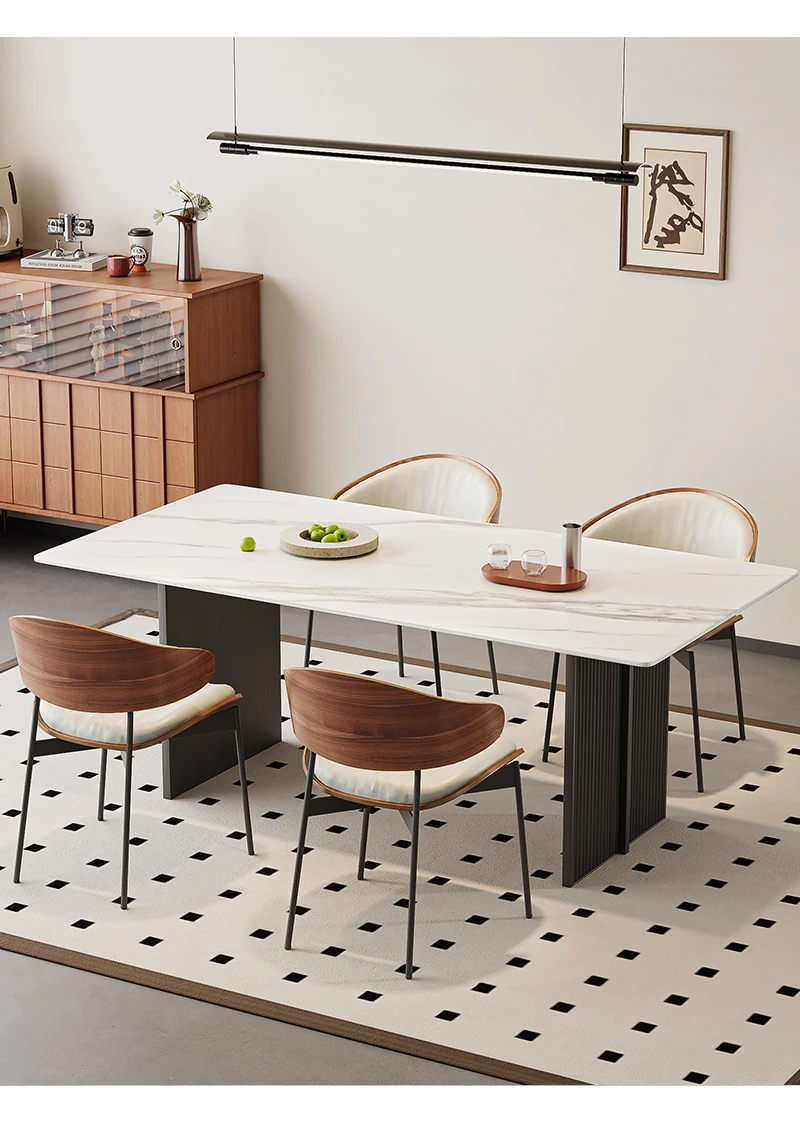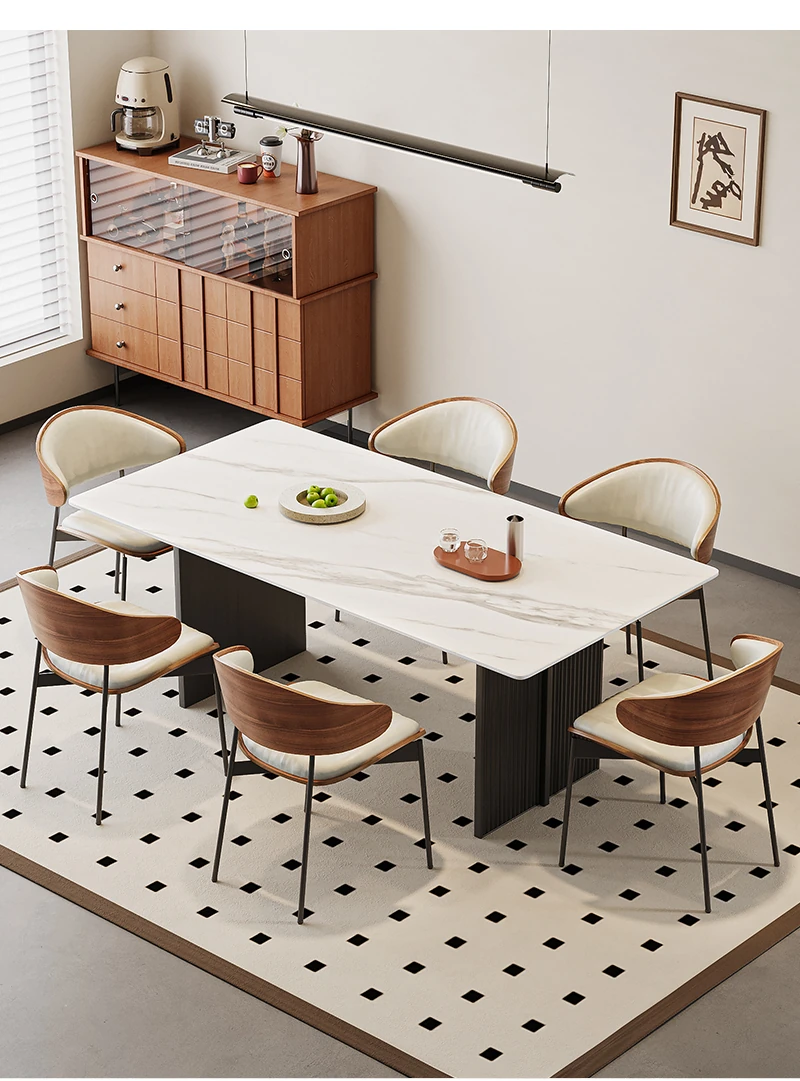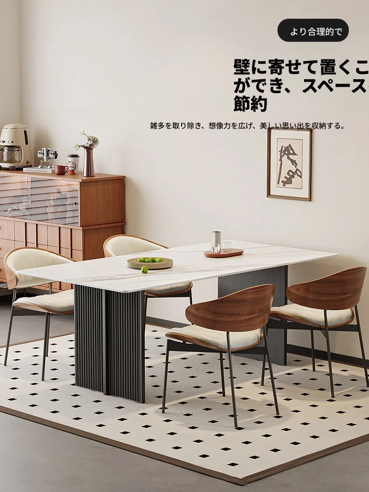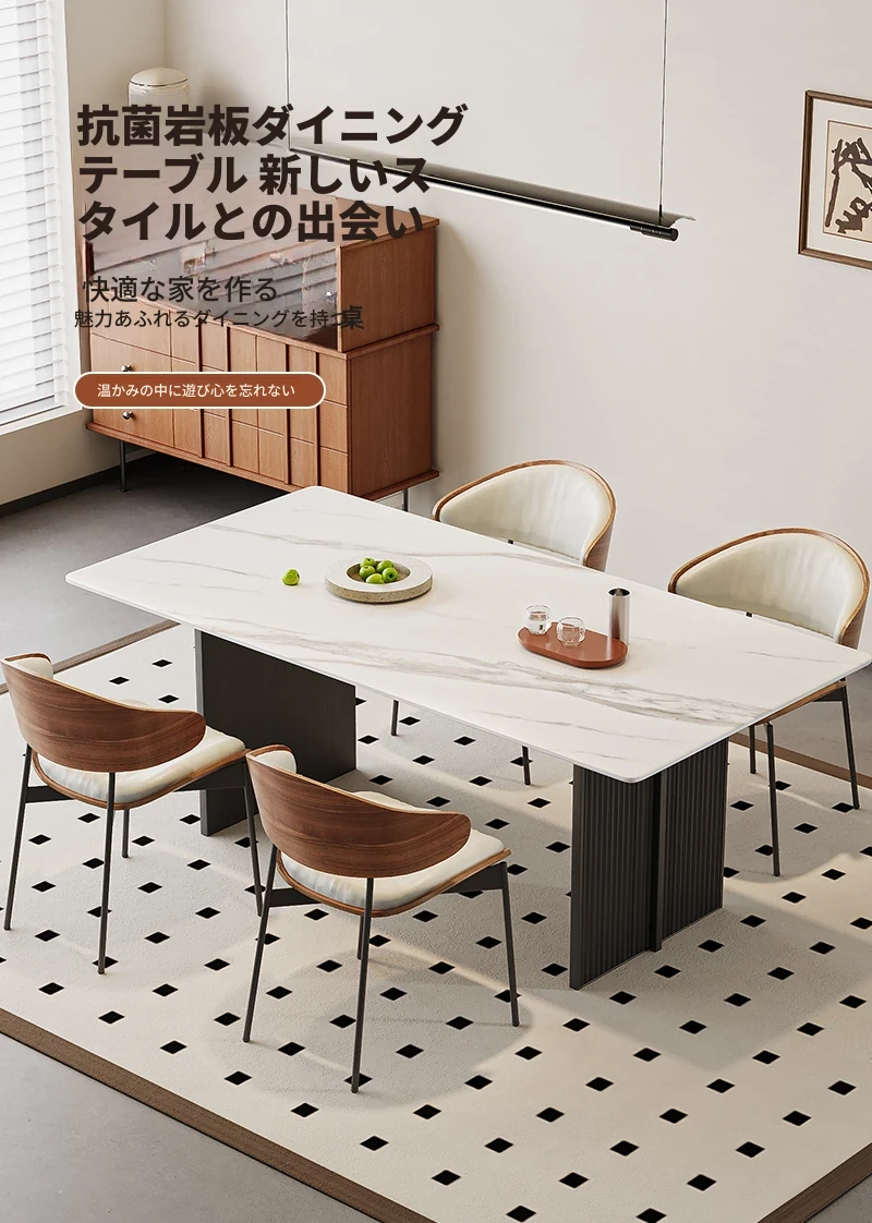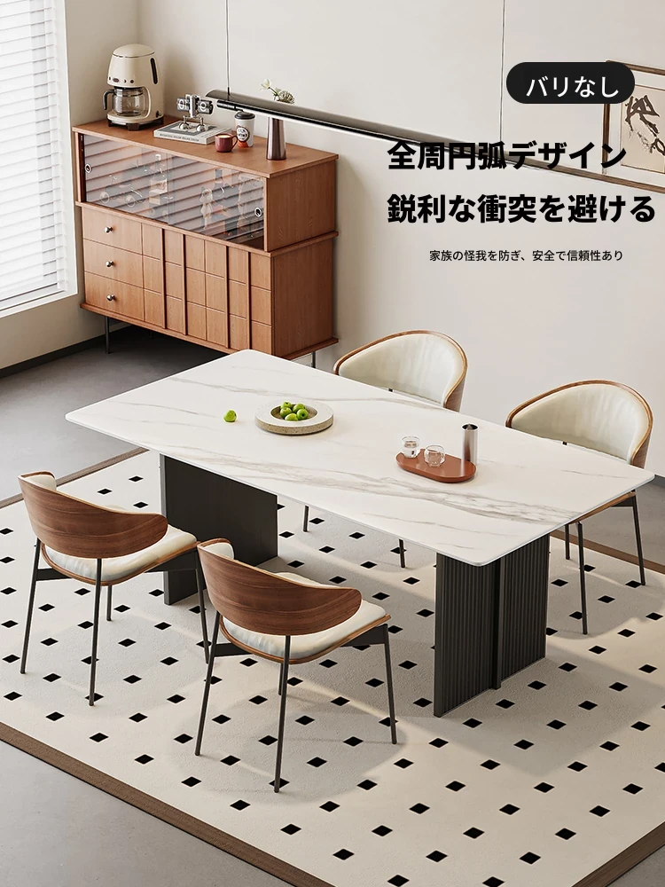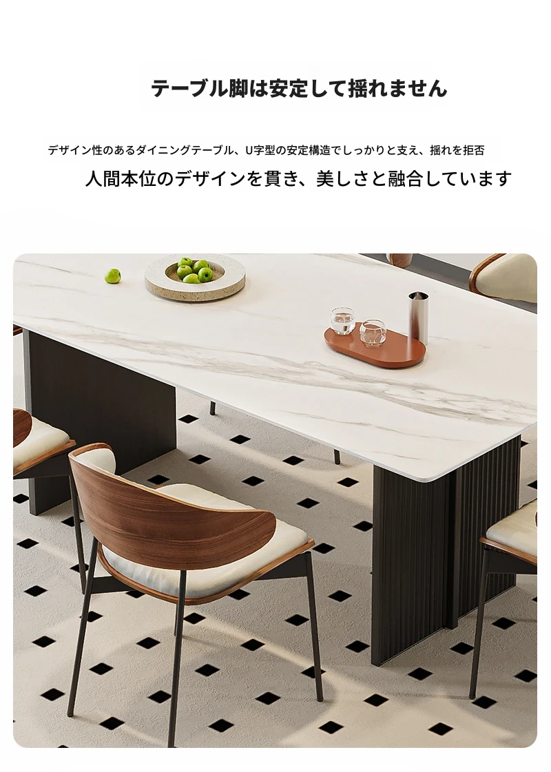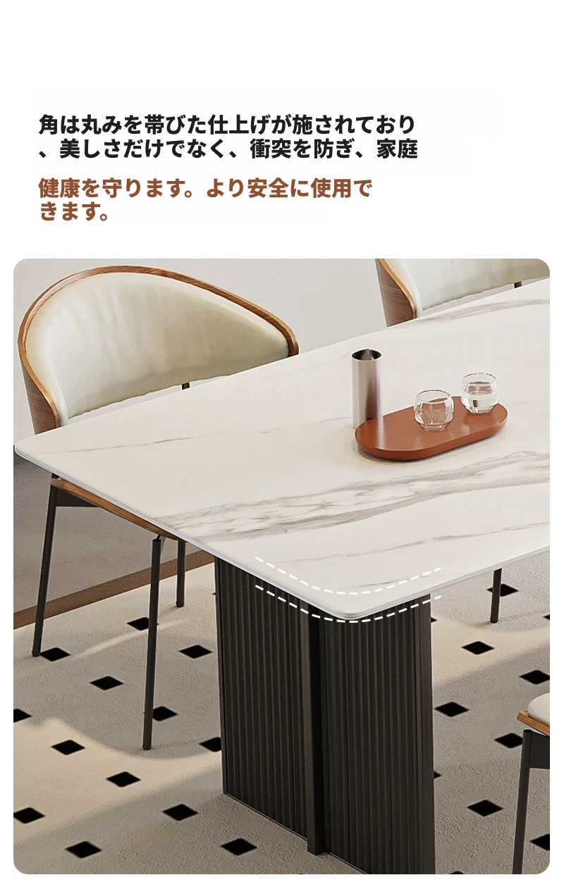セット:1.8メートルスノーホワイトダイニングテーブル+ダイニングチェア6脚
