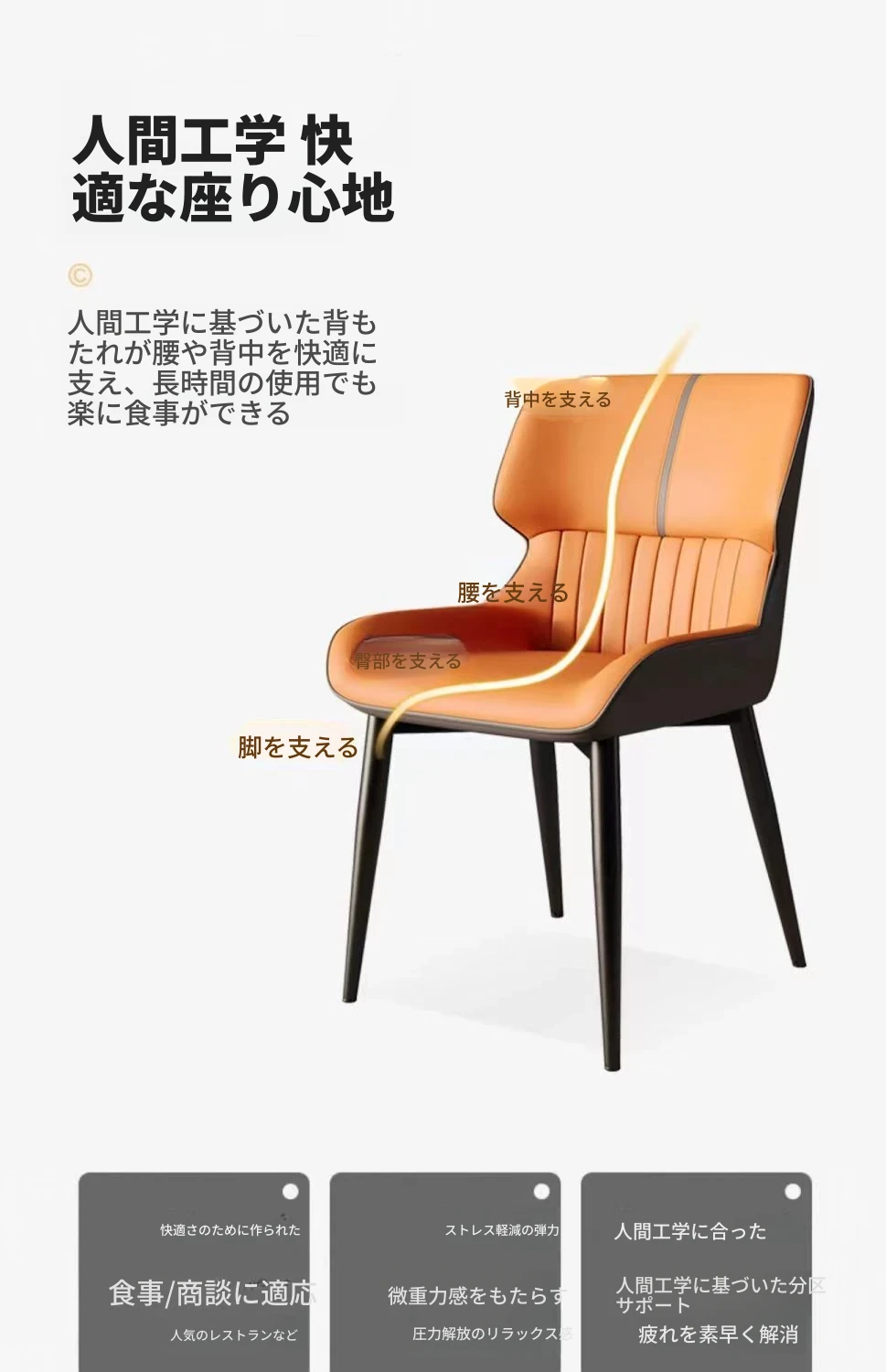 シンプルでモダンなデザインのレストランチェア|軽やかなラグジュアリー感|ホテルや洽談に最適|おしゃれなレザー製|書斎用・リラックスしたい時にぴったりの背もたれ付き椅子|家庭用にもおすすめ!