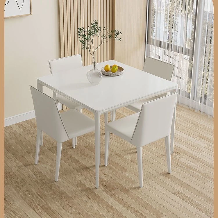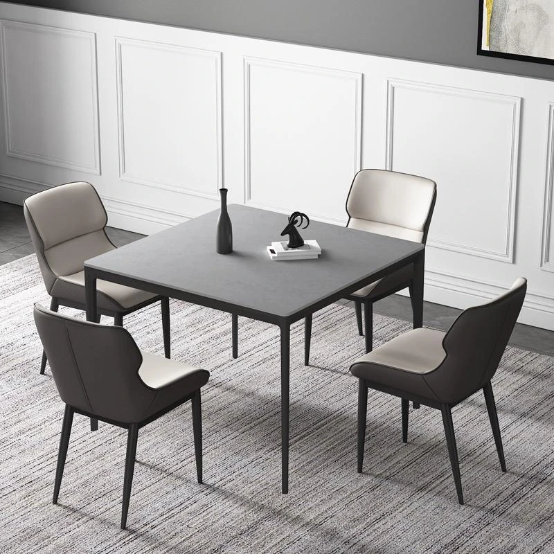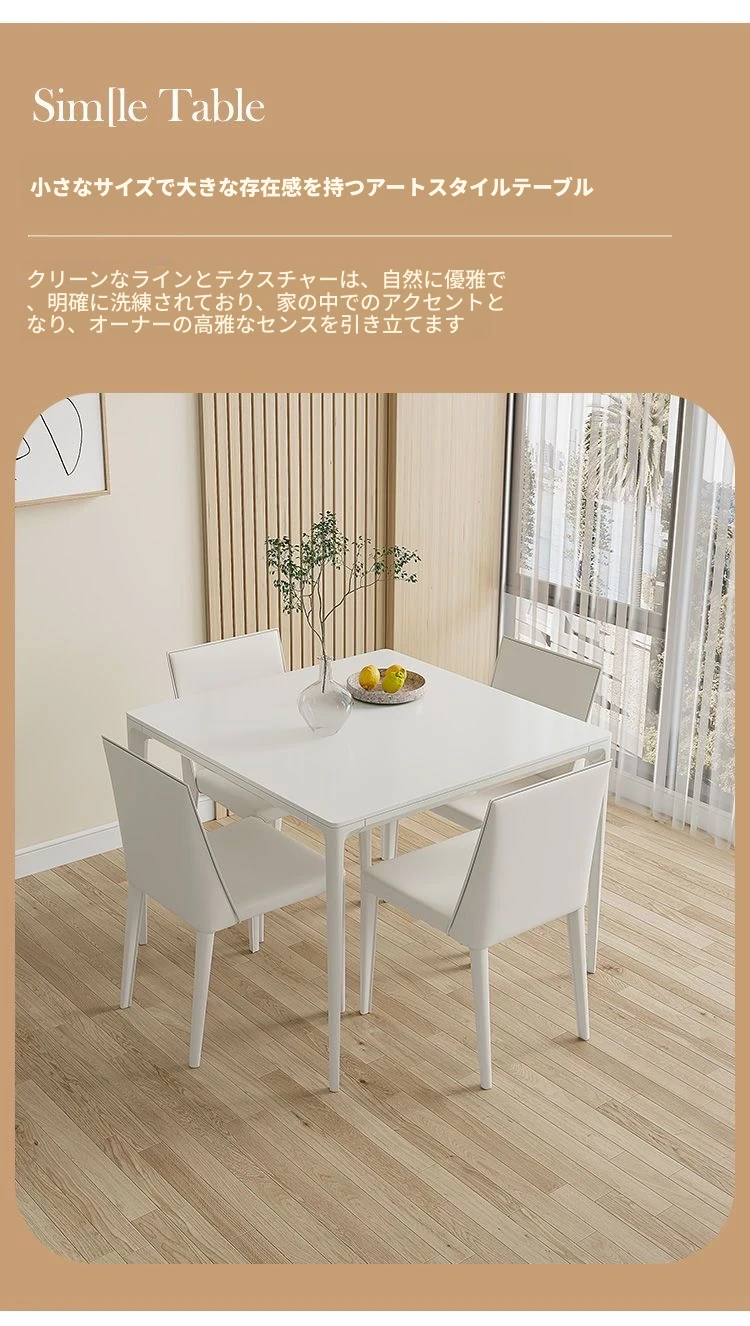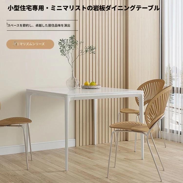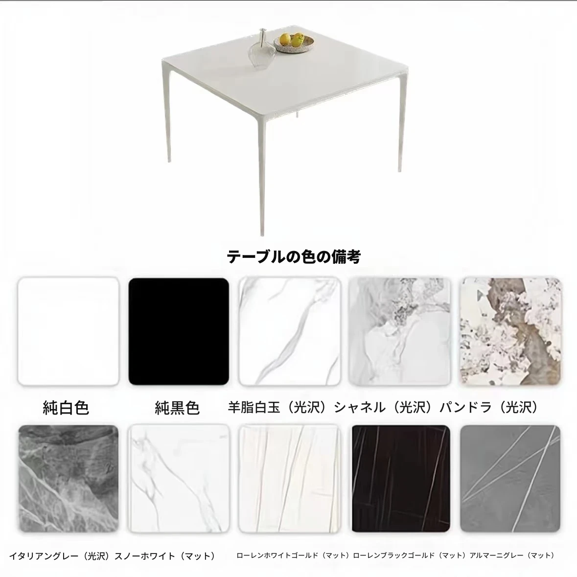 モダンシンプルな光沢仕上げの石板製スクエアダイニングテーブル - 小型家庭向け北欧スタイルのリラックス会話テーブル、デザイナーによる洗練されたデザイン!