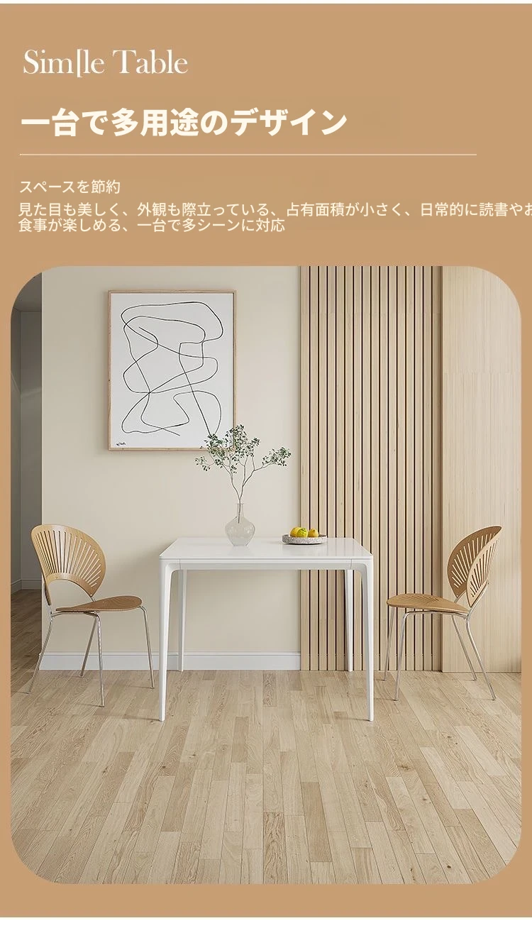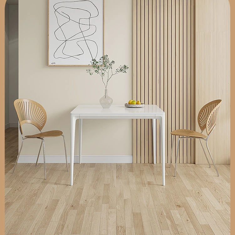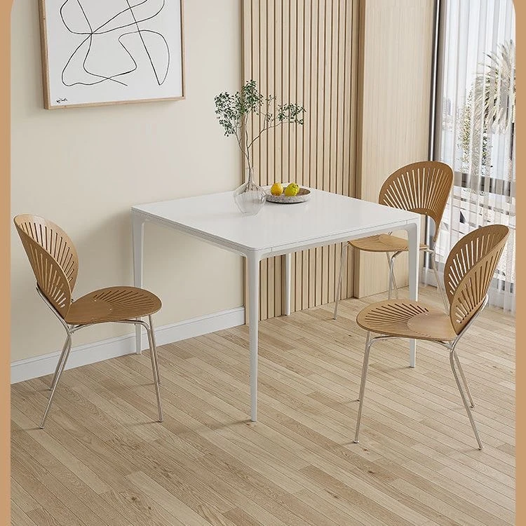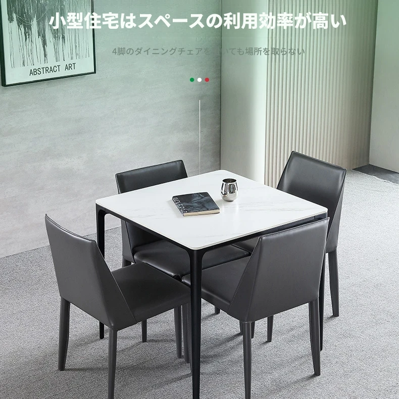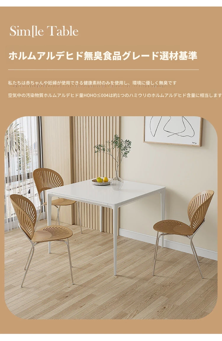 モダンシンプルな光沢仕上げの石板製スクエアダイニングテーブル - 小型家庭向け北欧スタイルのリラックス会話テーブル、デザイナーによる洗練されたデザイン!