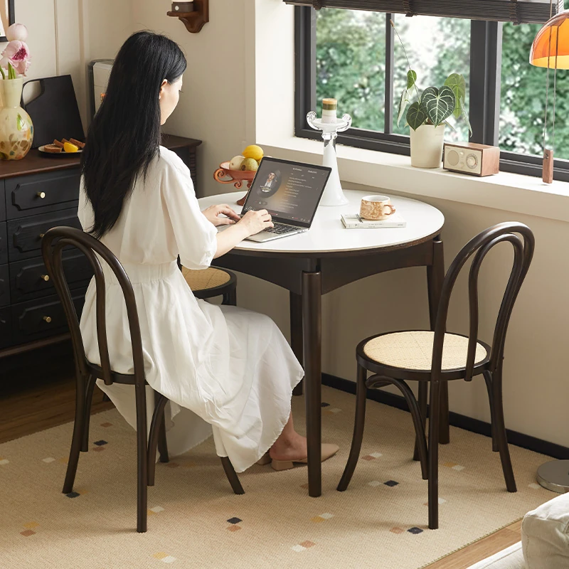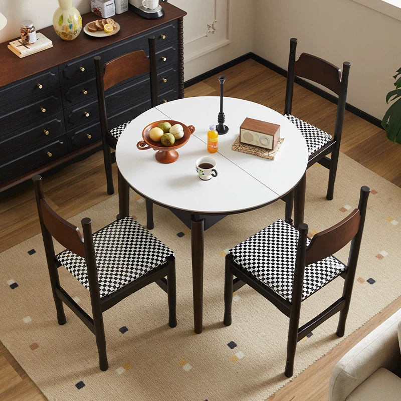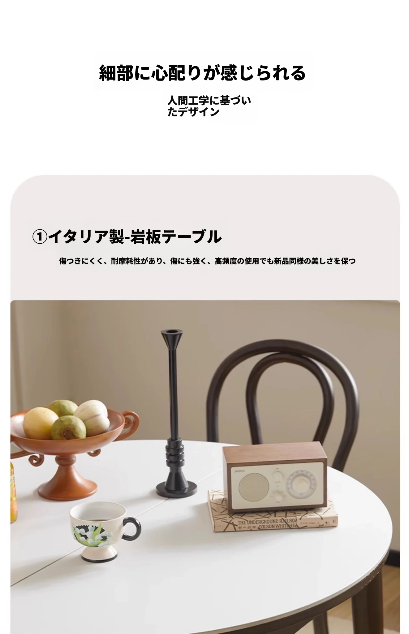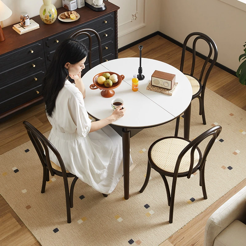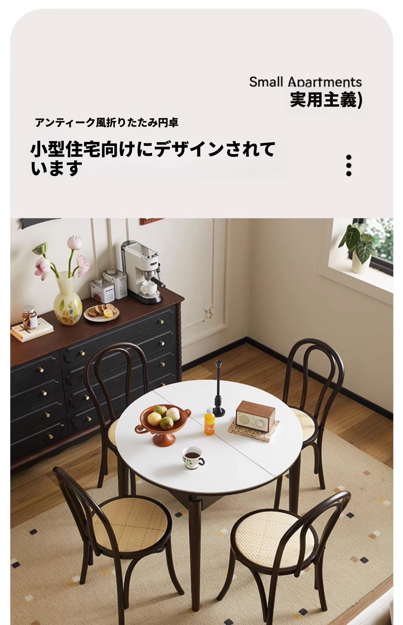 コンパクトで折りたたみ可能な円形ダイニングテーブル - スタイリッシュな現代風、天然木と高品質なストーンで作られたエレガントなデザイン。小さなスペースにも最適で、便利に伸縮可能!