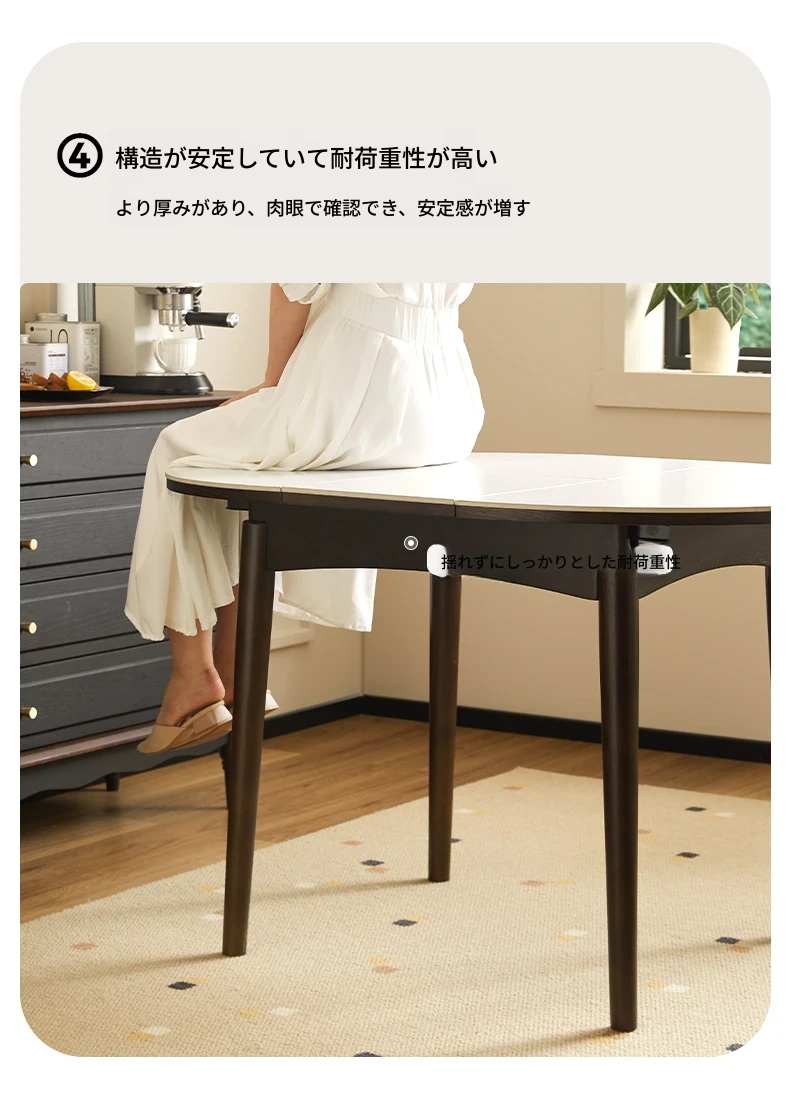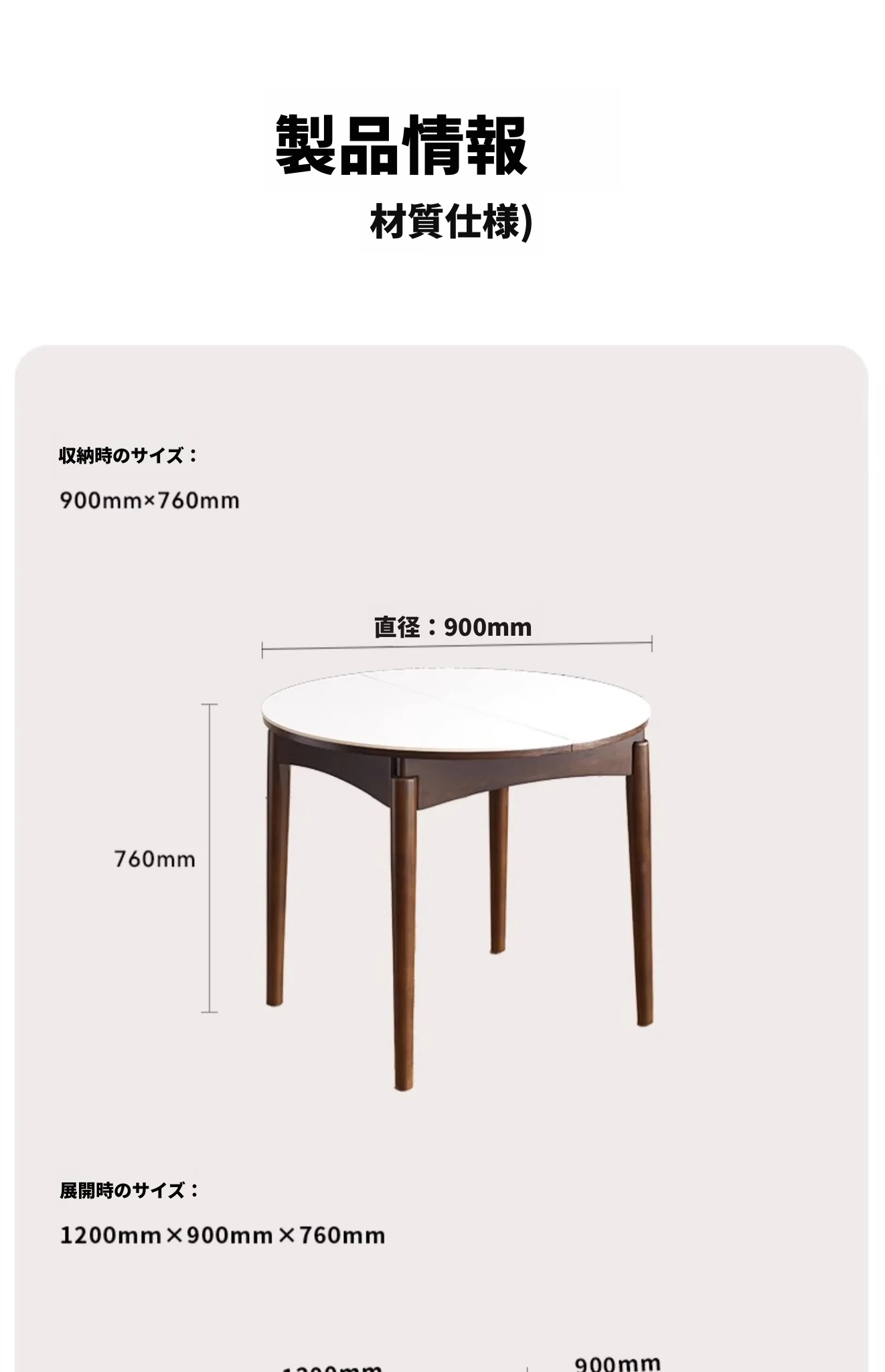 【単独ダイニングテーブル】合体φ90|展開120*90cm