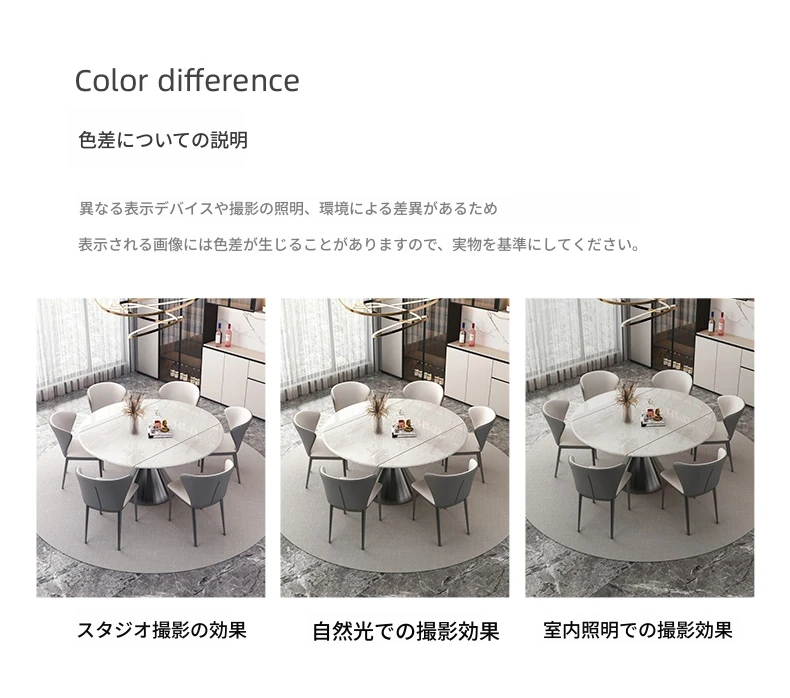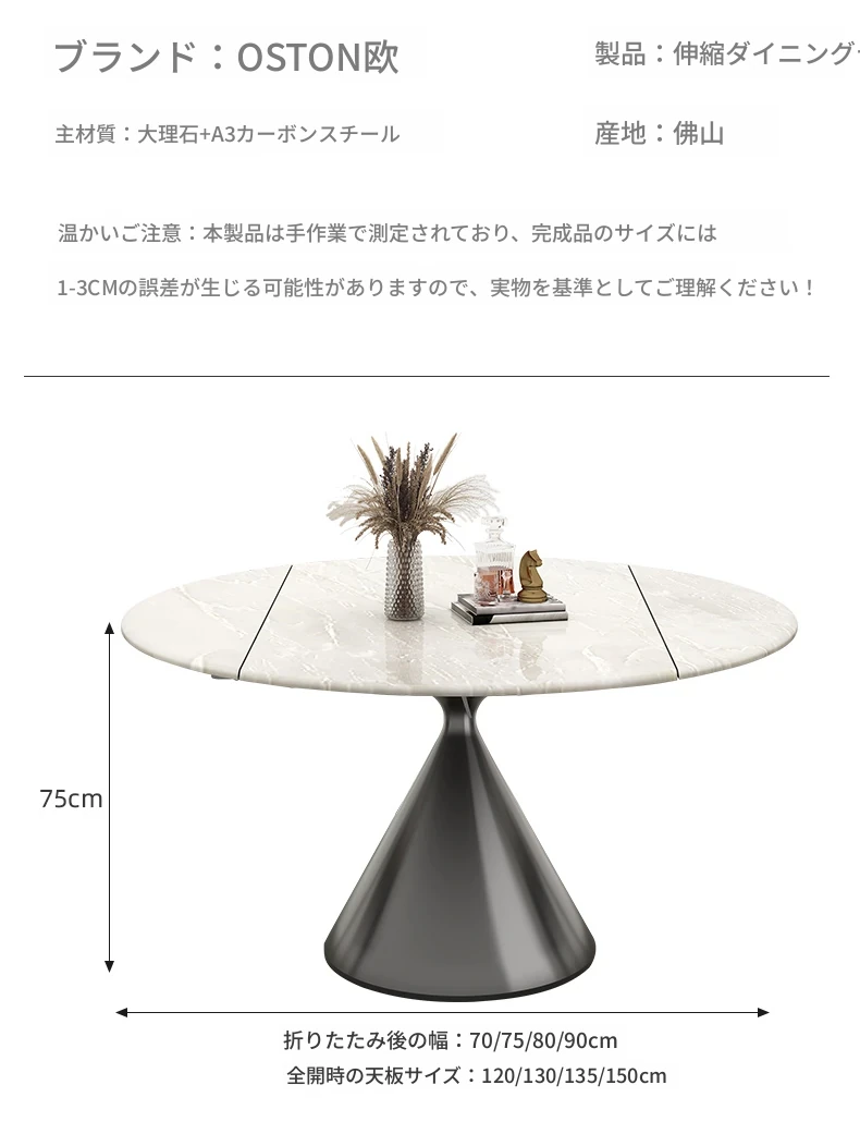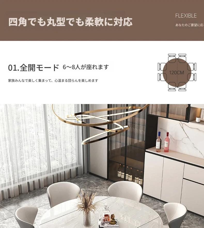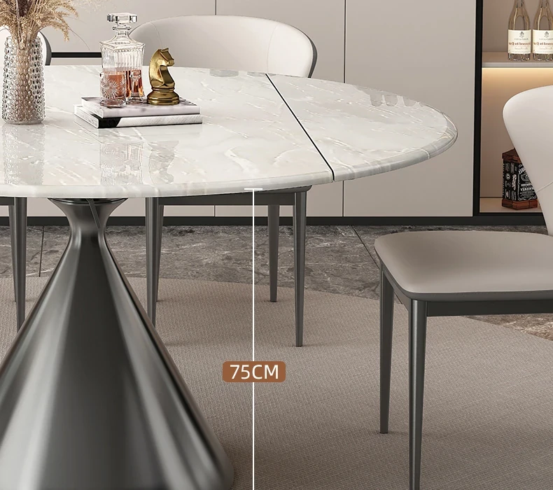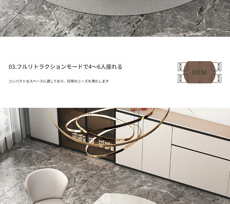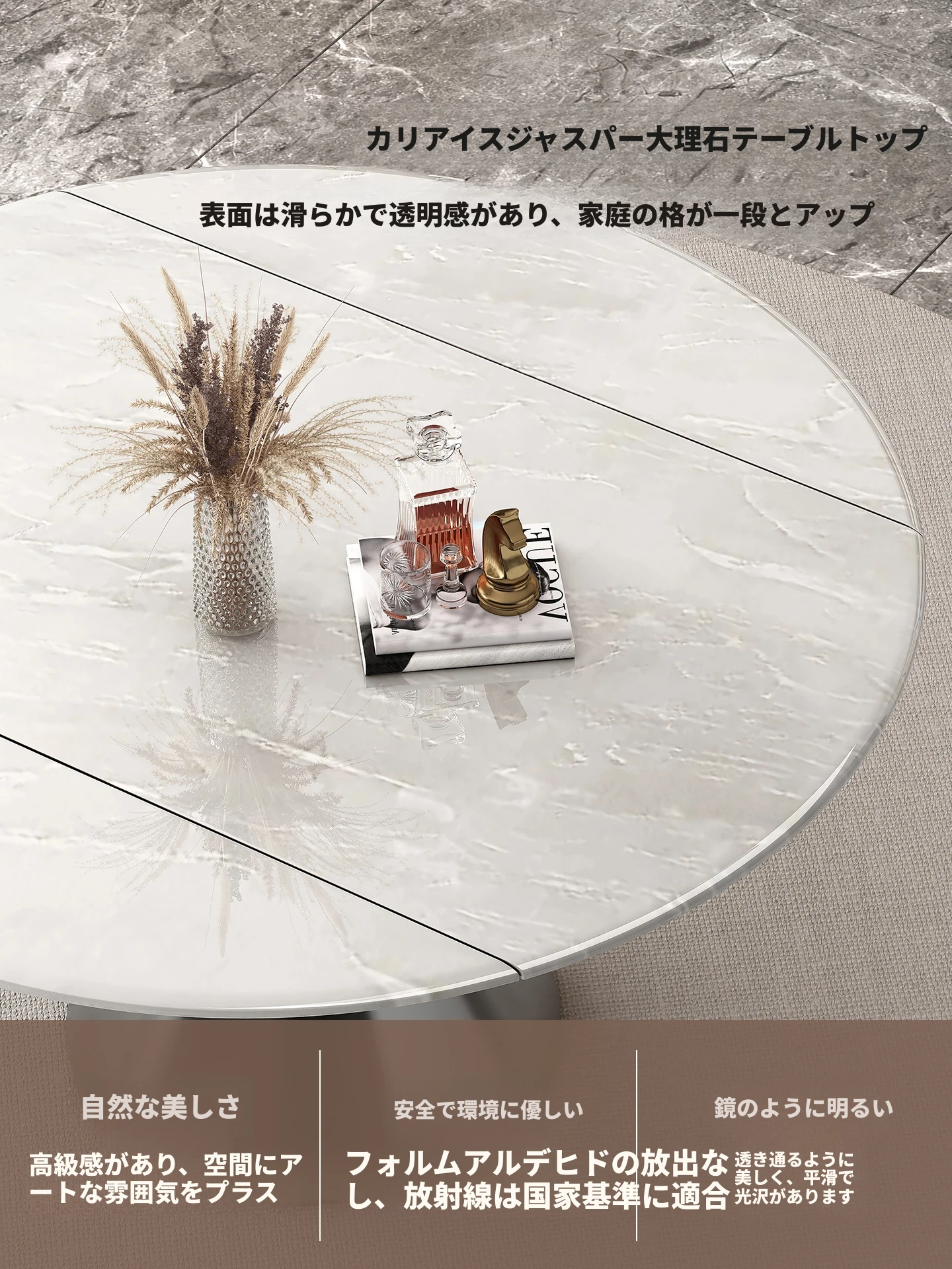天然大理石の伸縮式ダイニングテーブル - イタリアンミニマルデザイン、狭いスペースにもぴったりなカリビアンアイスジュエルの回転式テーブルとチェアのセット!おしゃれで機能的な食事空間を実現!