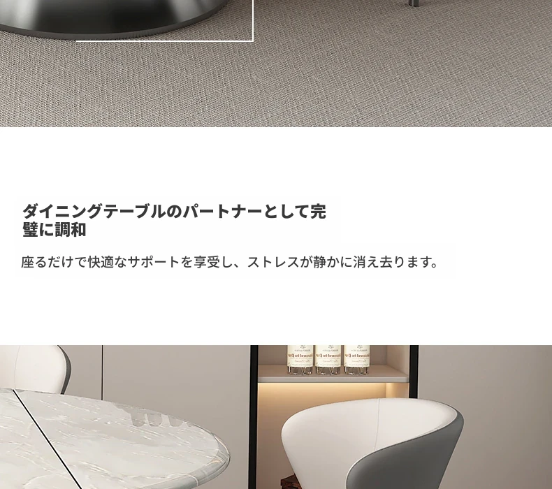 回転式ダイニングテーブル(天然大理石)+キャットスクラッチレザーのダイニングチェア*6
