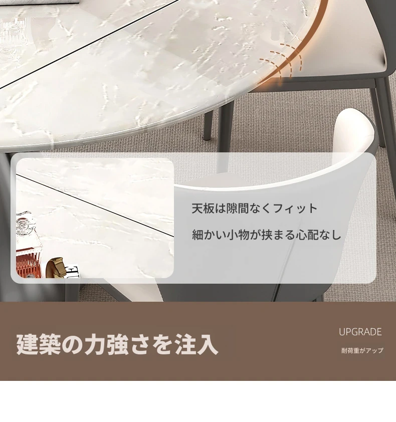 伸縮式ダイニングテーブル(天然大理石)+キャットスクラッチレザーのダイニングチェア*6