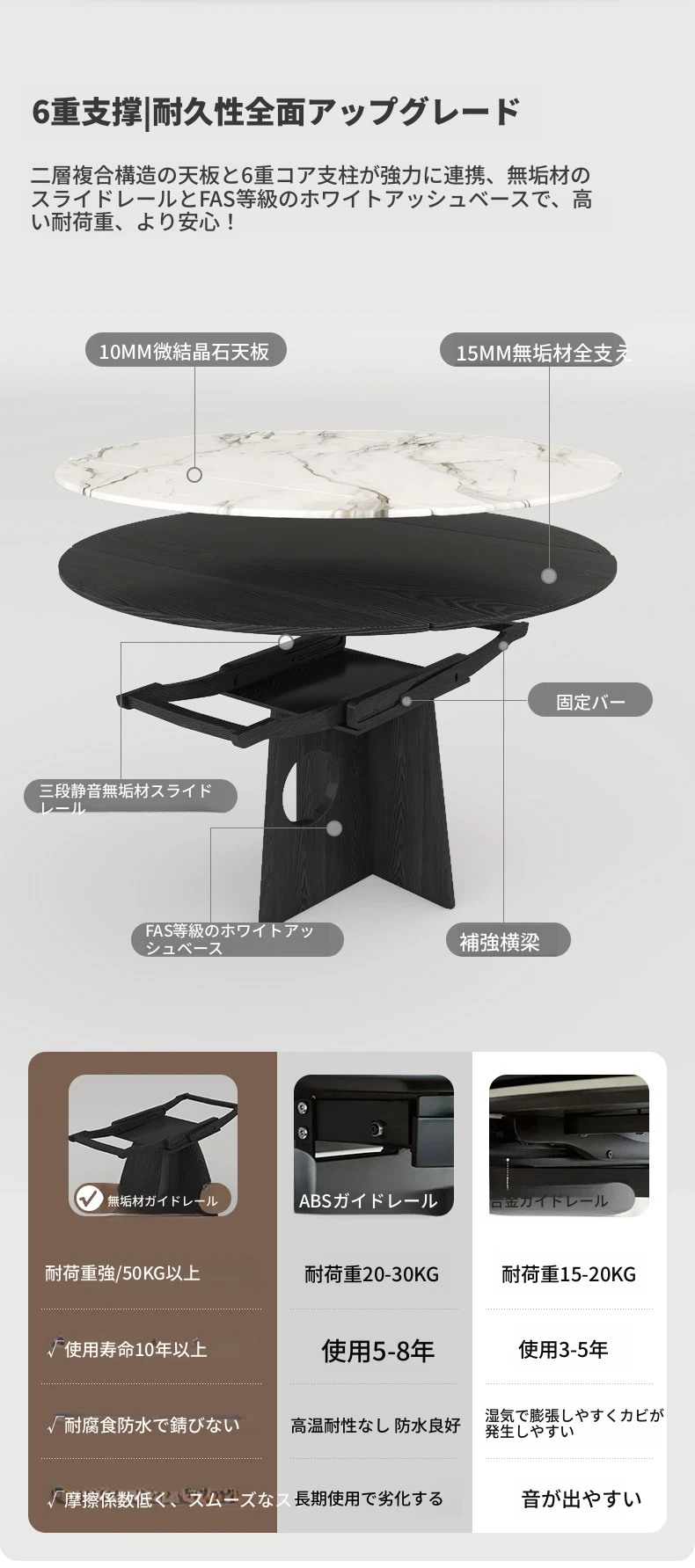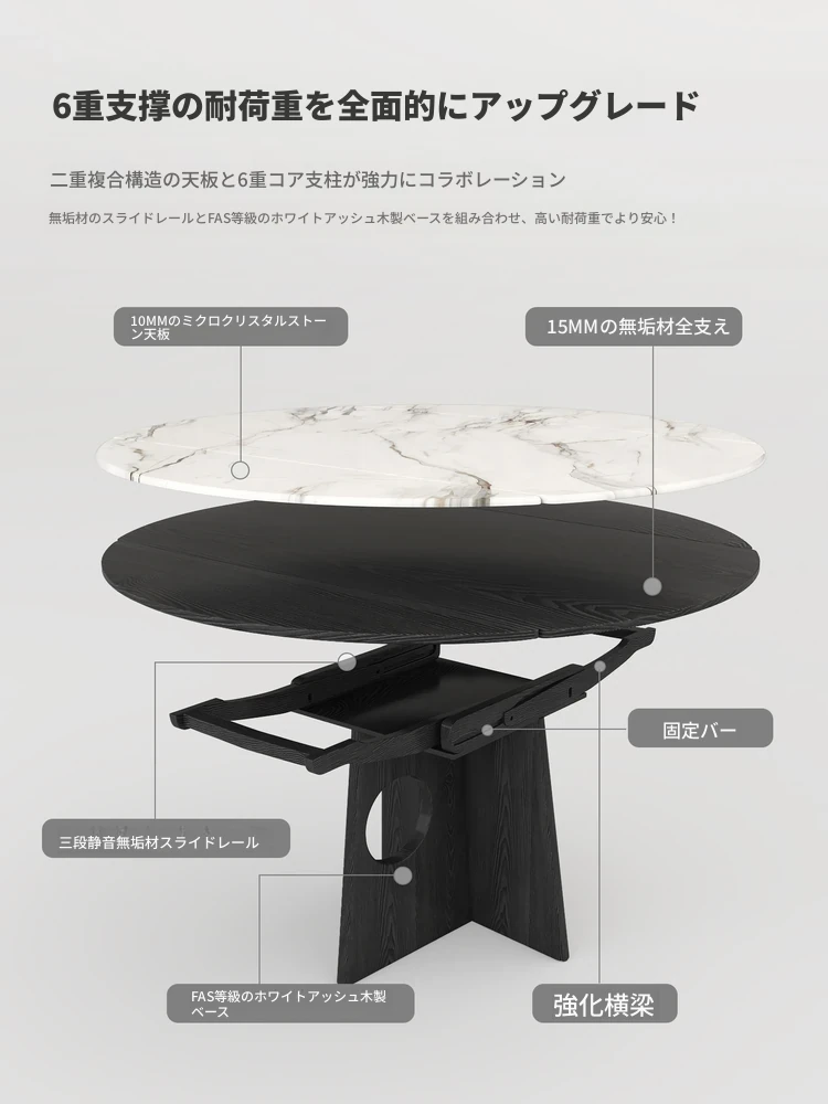 1.5メートル天然ミクロ結晶石折り畳みダイニングテーブル