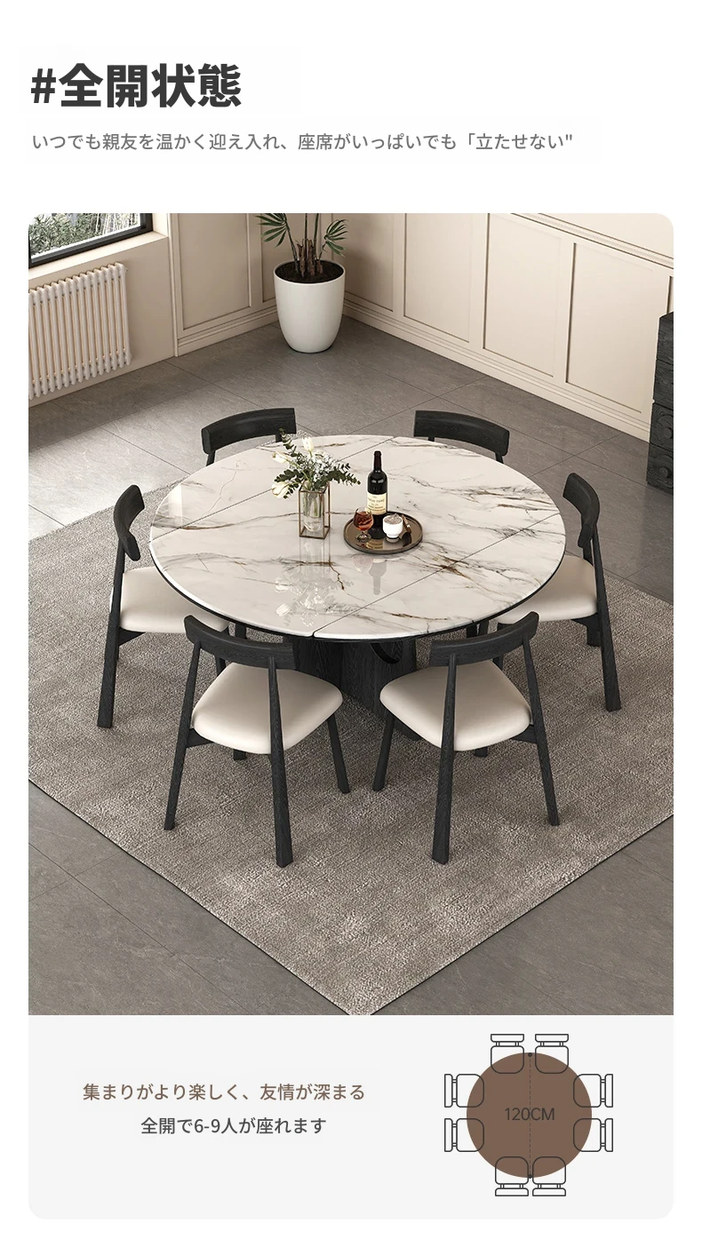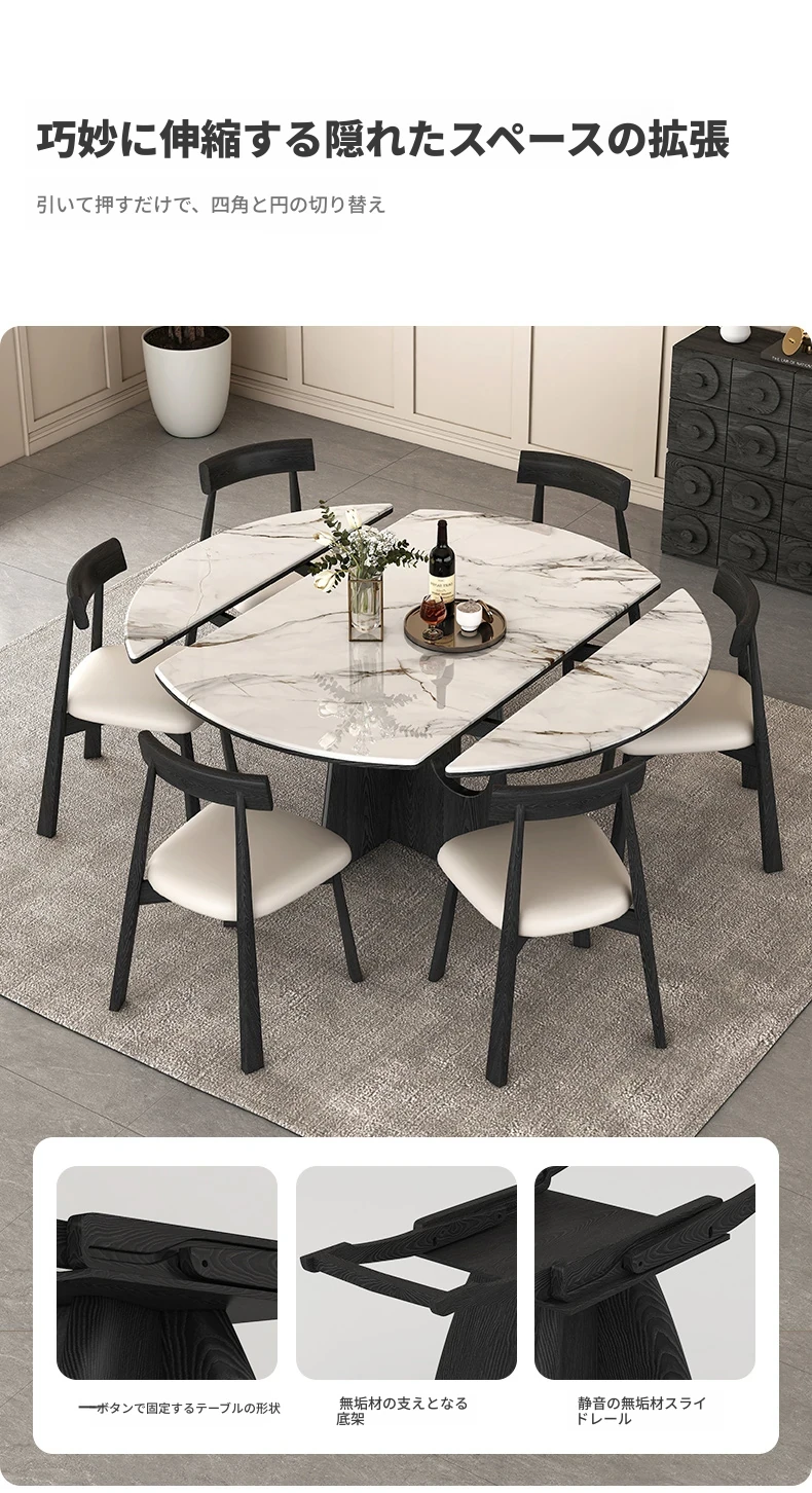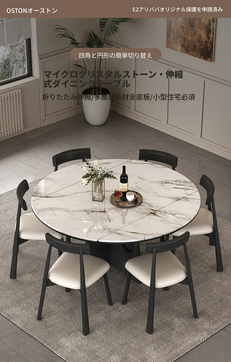 1.35メートル天然ミクロ結晶石折り畳みダイニングテーブル+ダイニングチェア*6