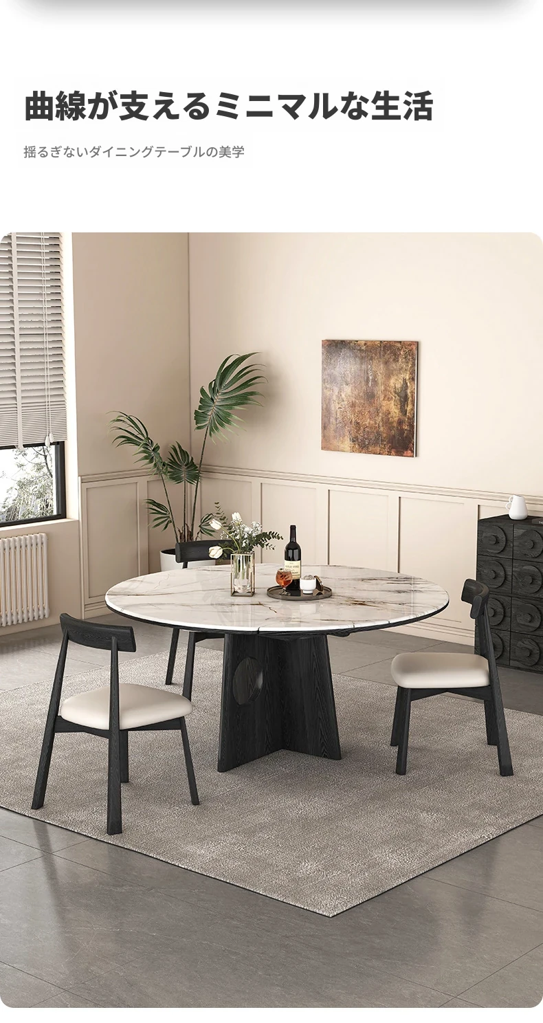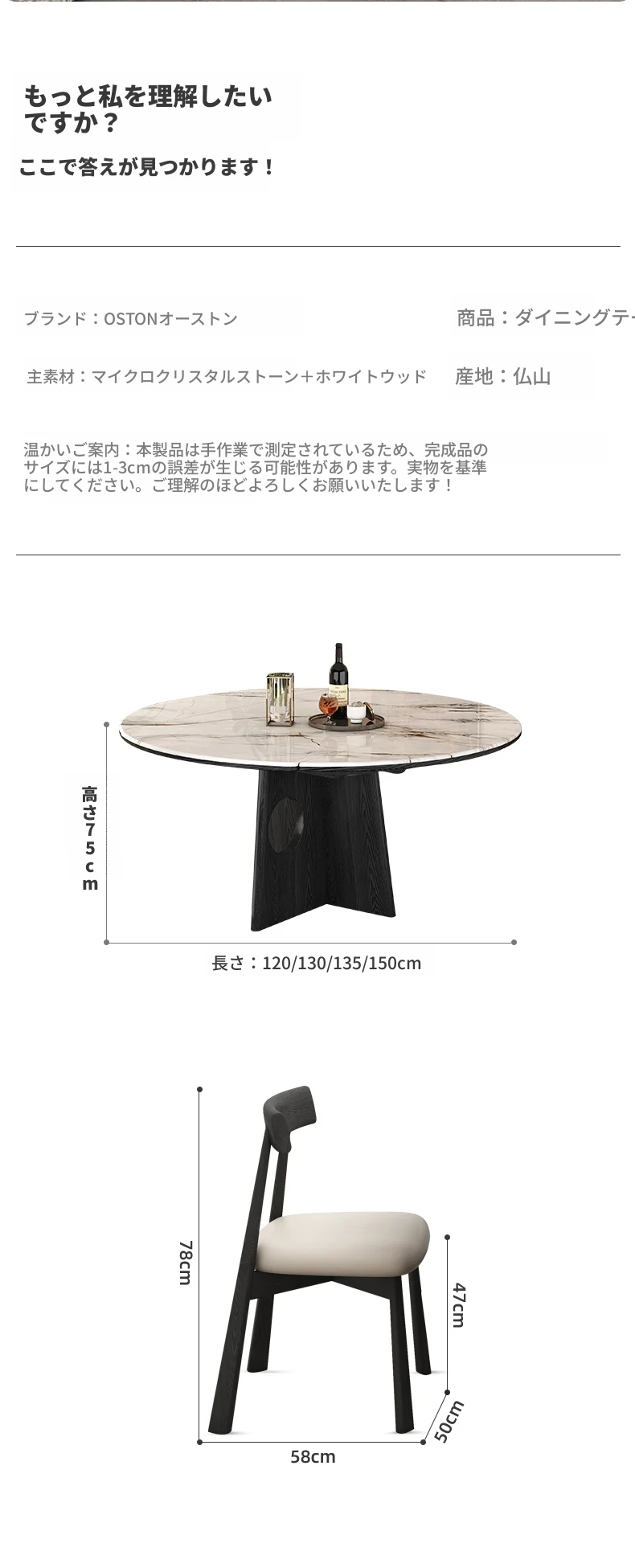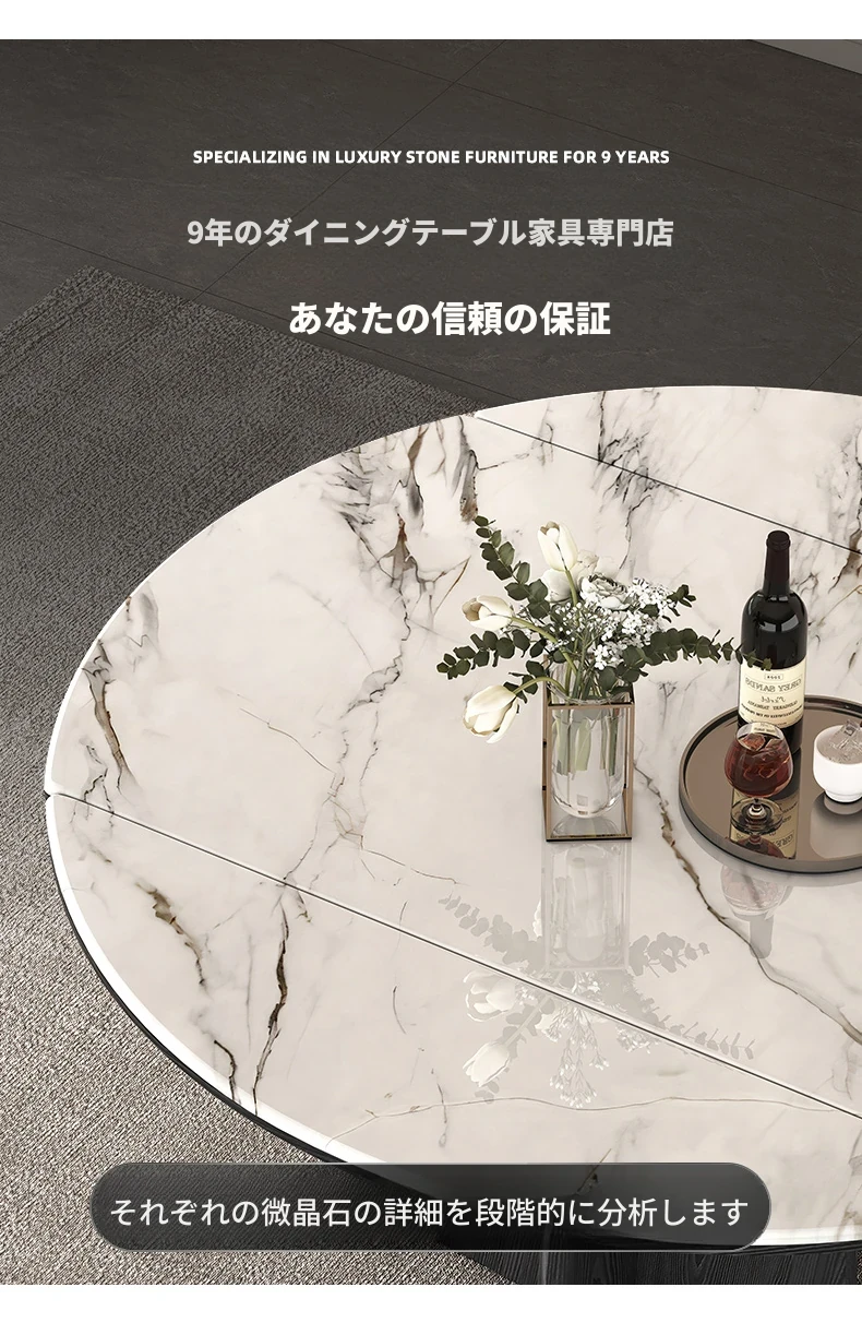 1.35メートル天然ミクロ結晶石折り畳みダイニングテーブル+ダイニングチェア*6