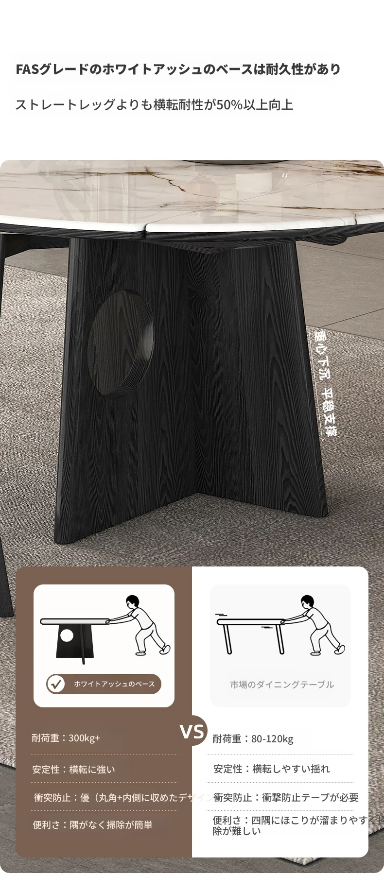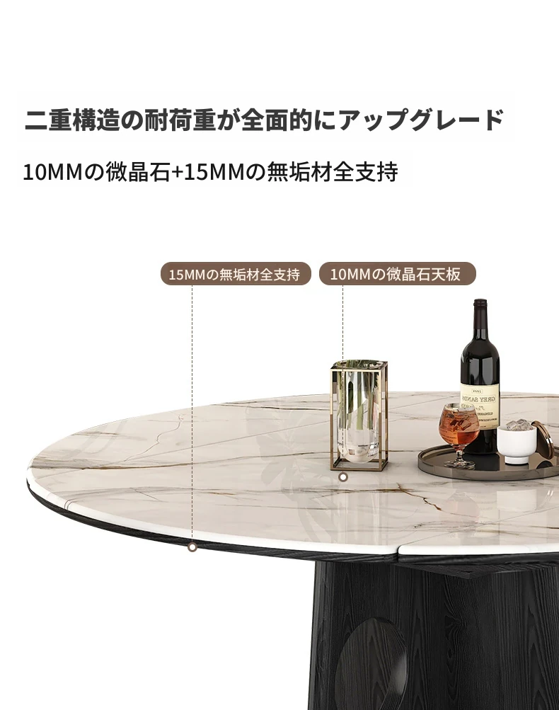 1.35メートル天然ミクロ結晶石折り畳みダイニングテーブル
