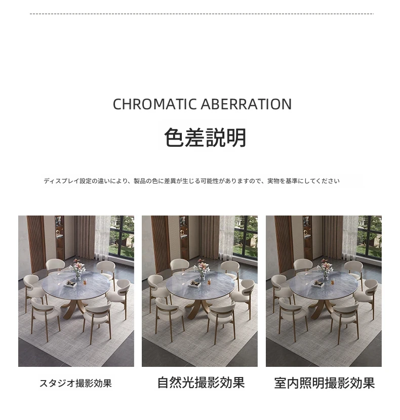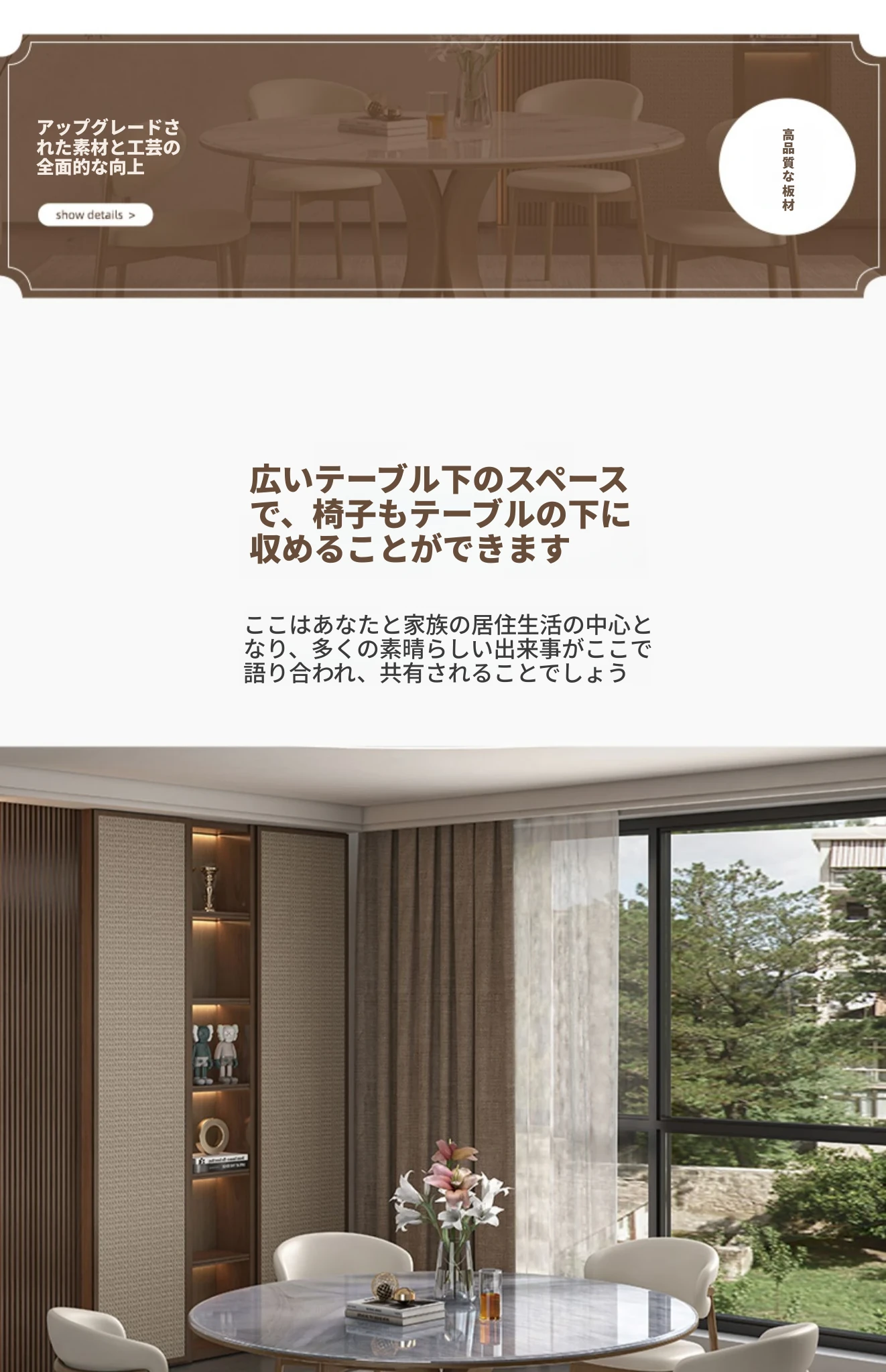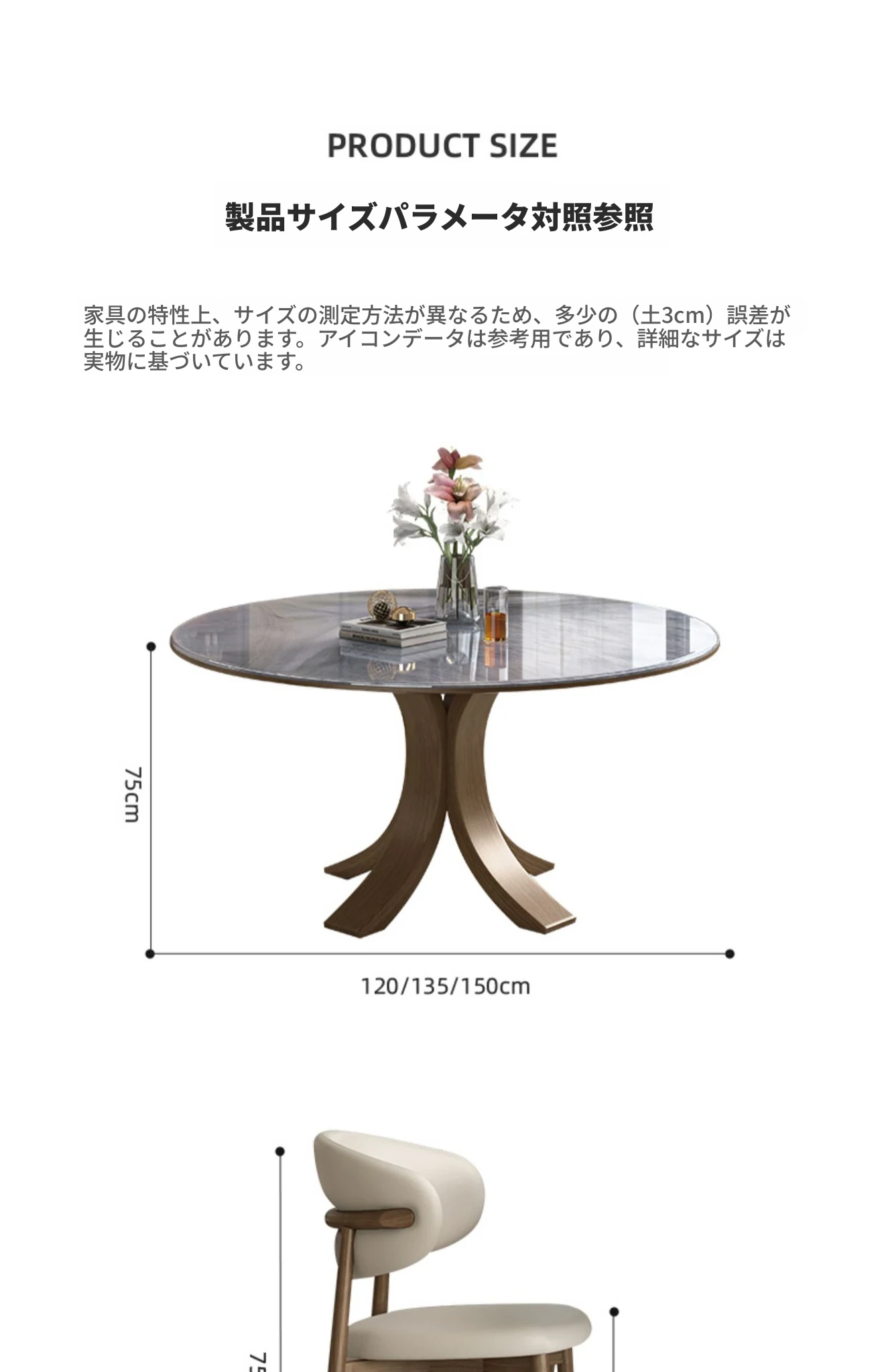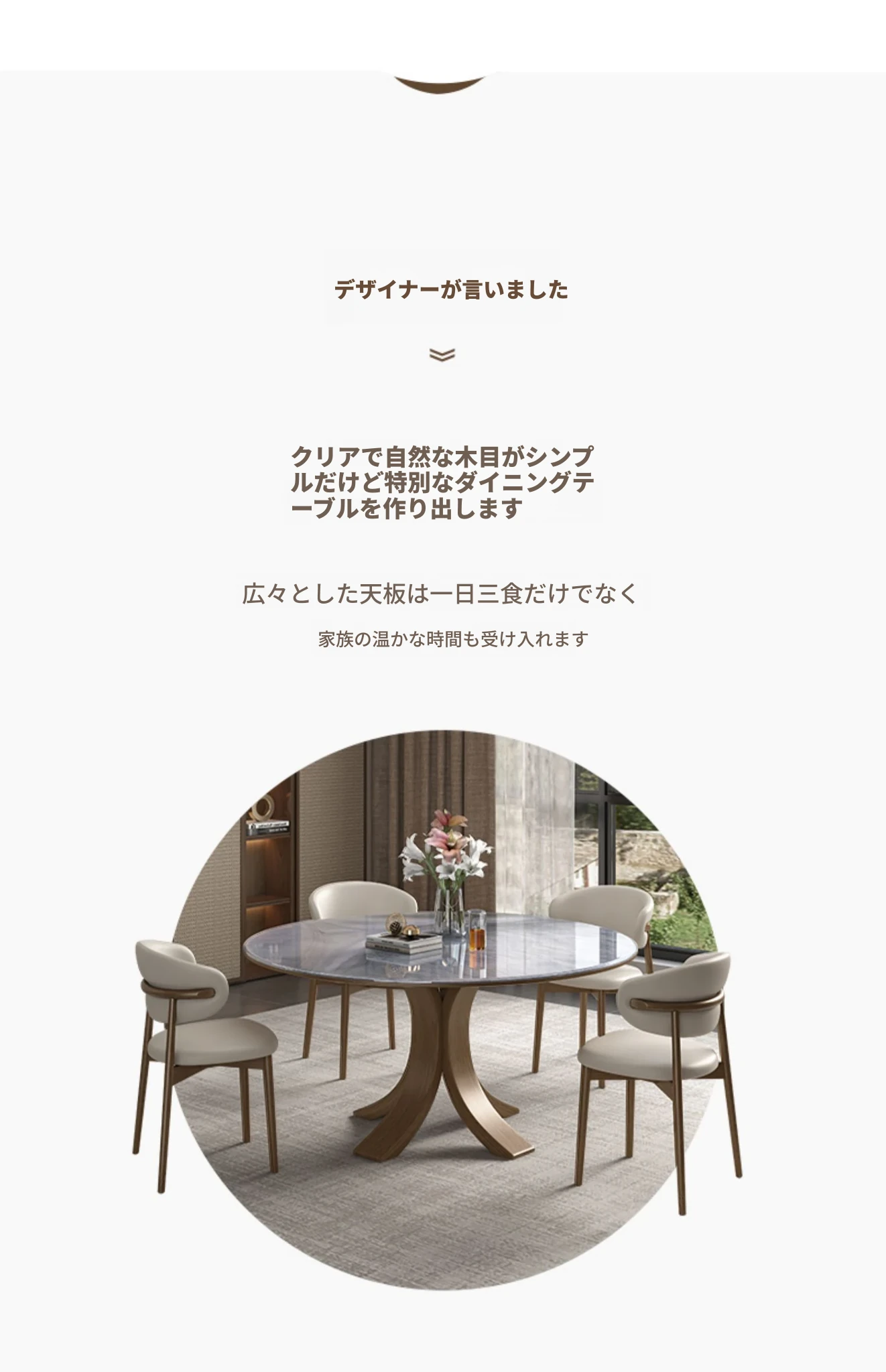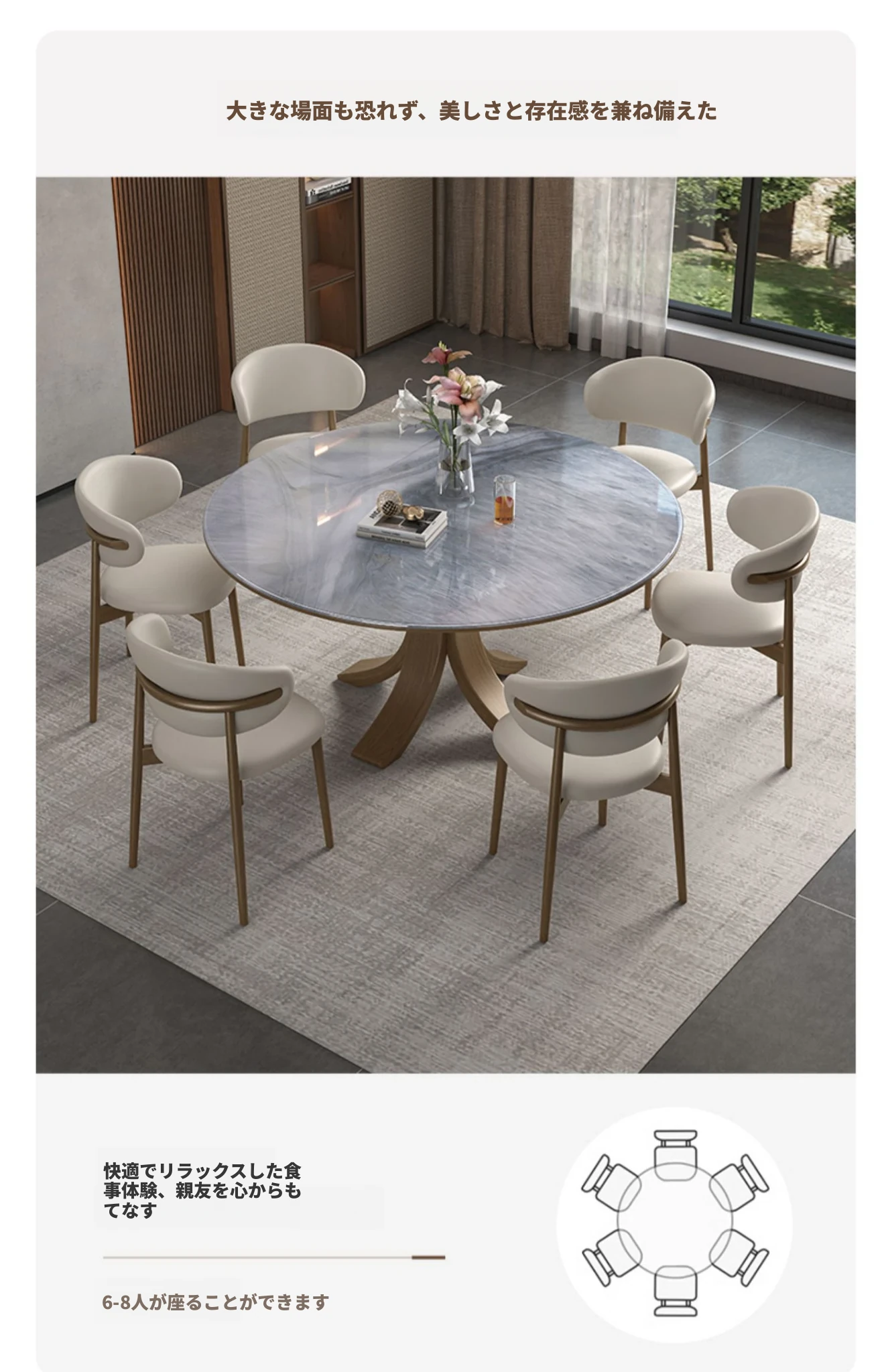 1.5Mマイクロクリスタル石無垢材ダイニングテーブル+ダイニングチェア*6