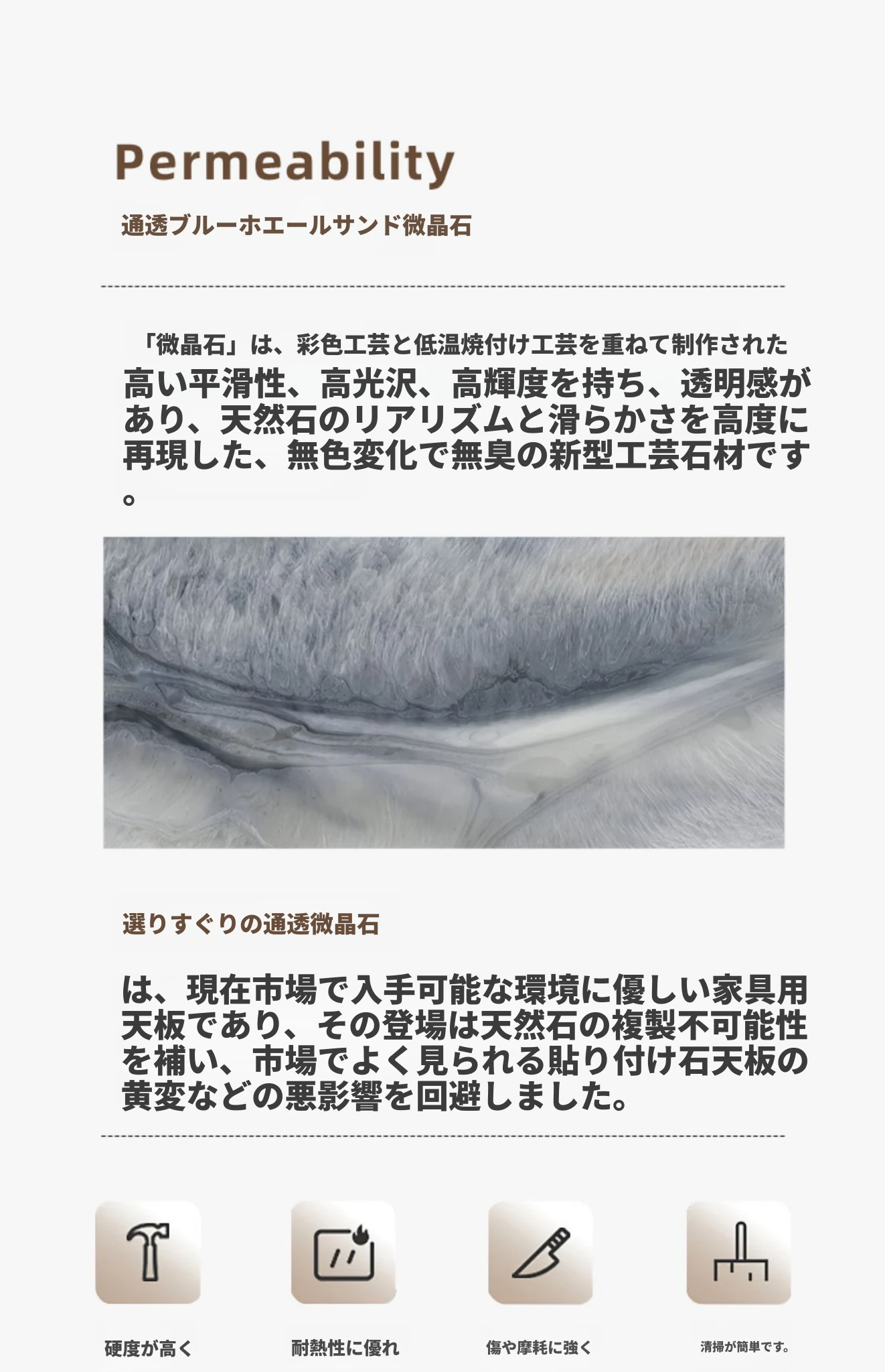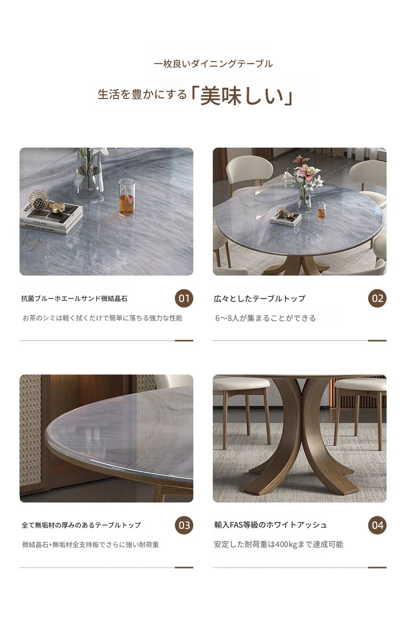 1.35Mマイクロクリスタル石無垢材ダイニングテーブル
