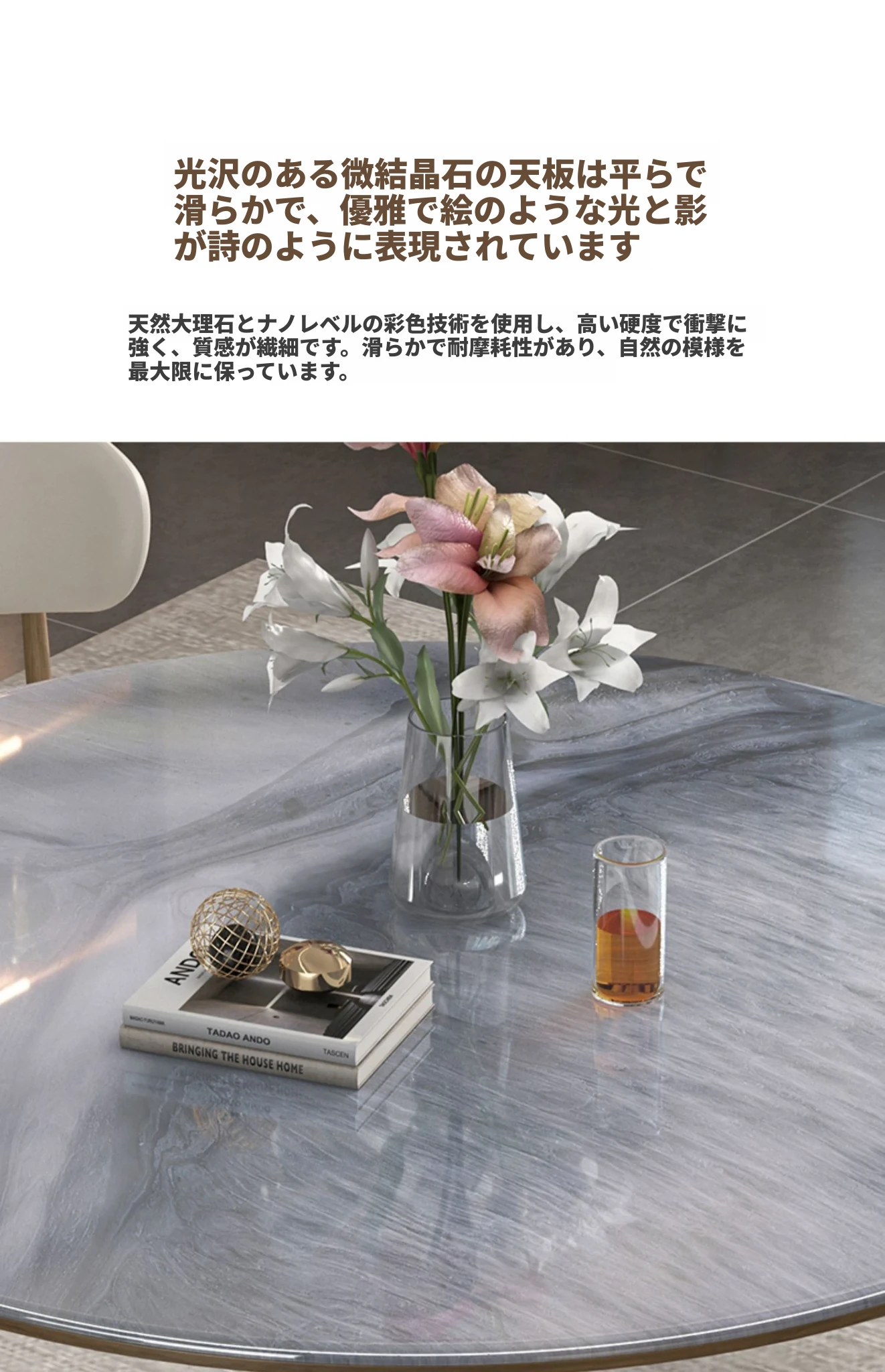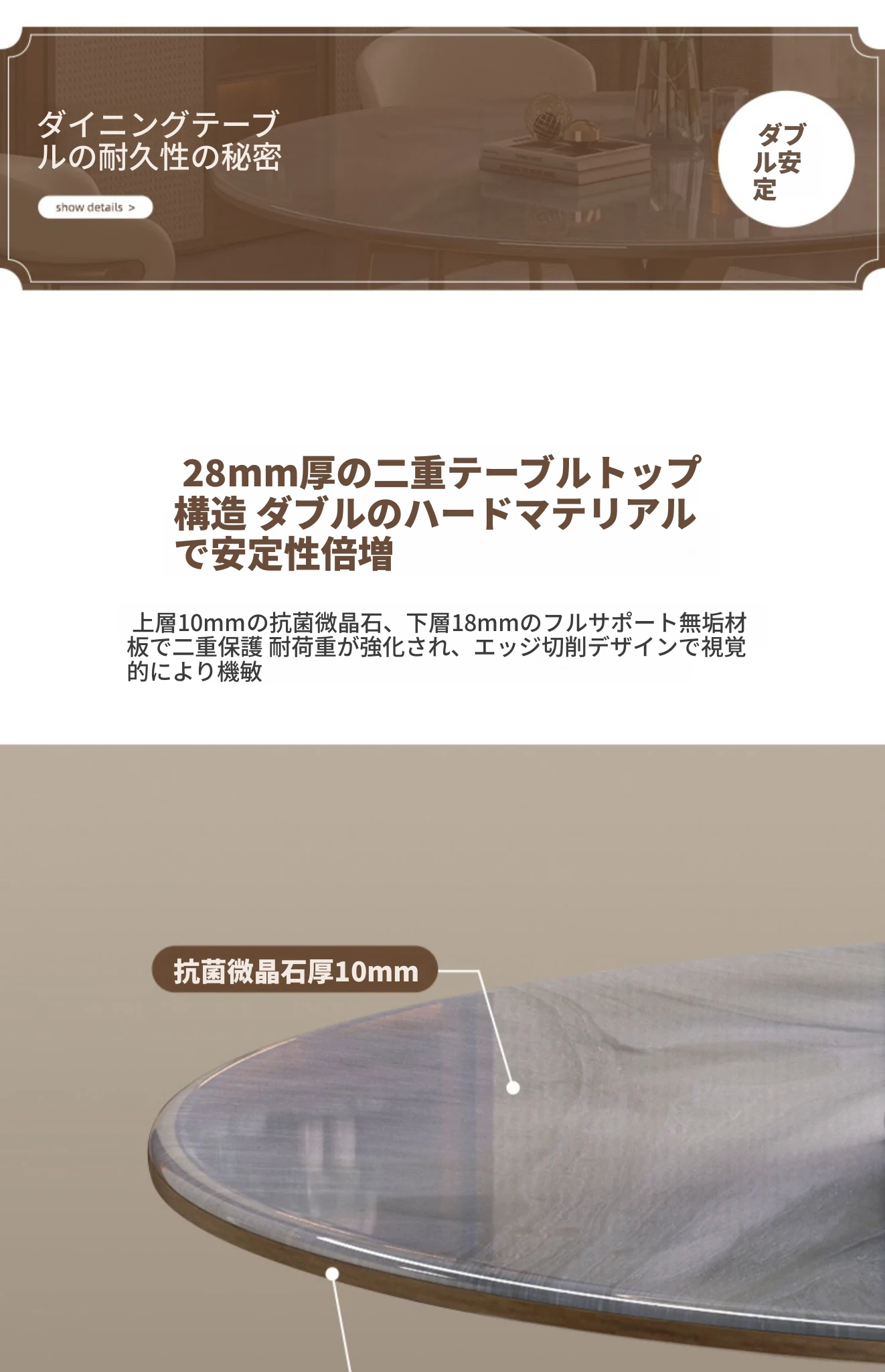 1.2Mマイクロクリスタル石無垢材ダイニングテーブル+ダイニングチェア*6