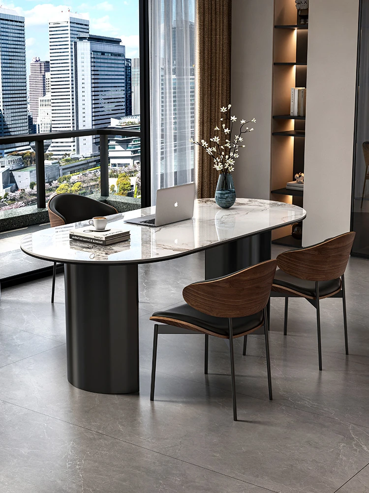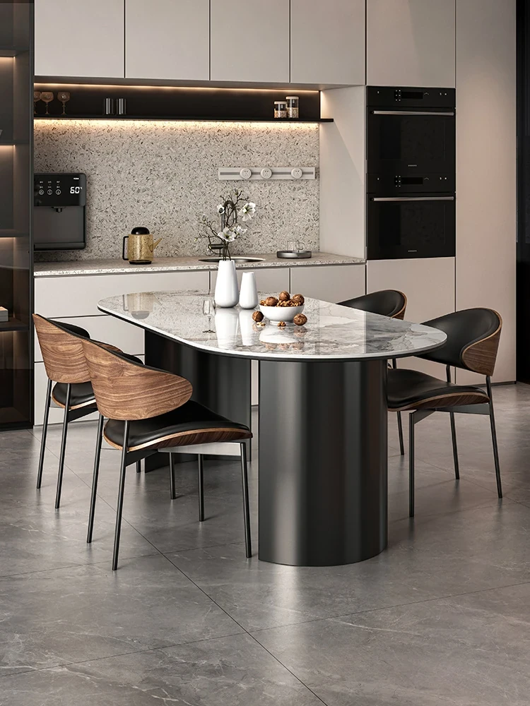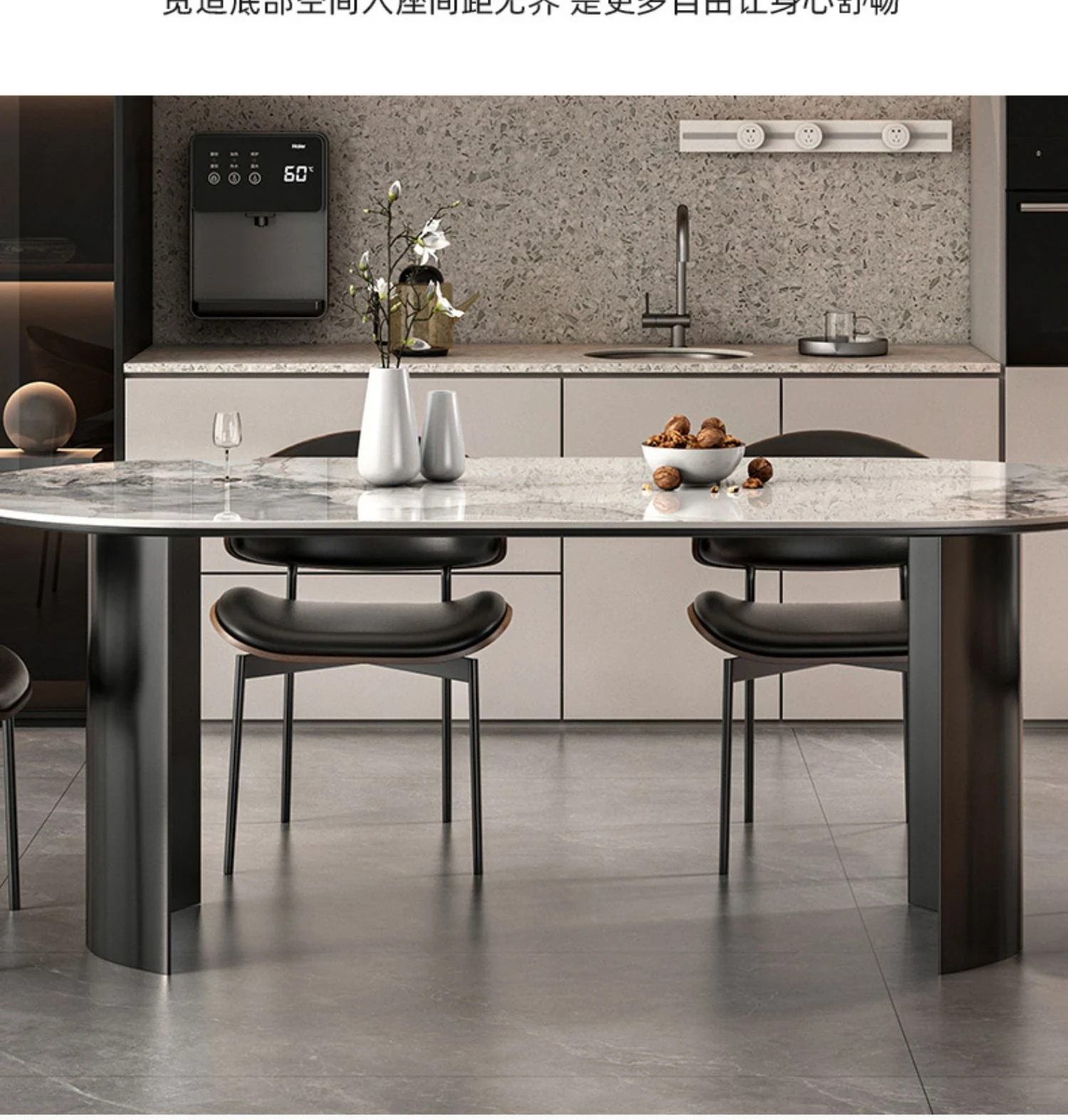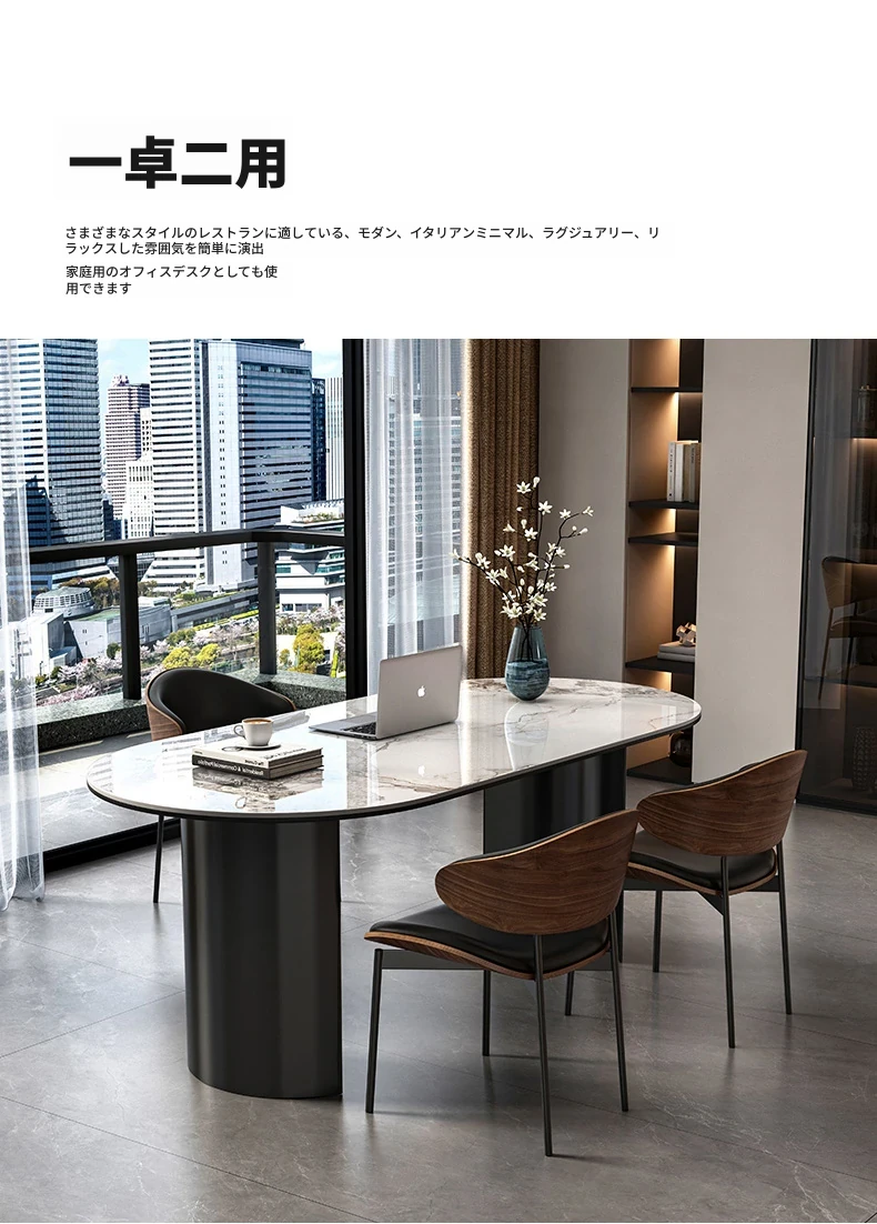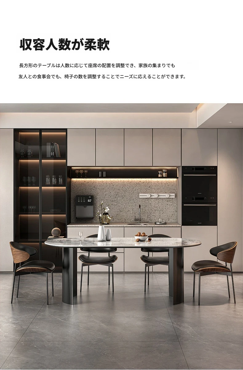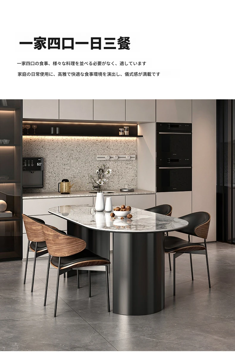 1.8メートル岩板ダイニングテーブル(アップグレード全支持耐荷重板)+猫爪レザー製ダイニングチェア*4