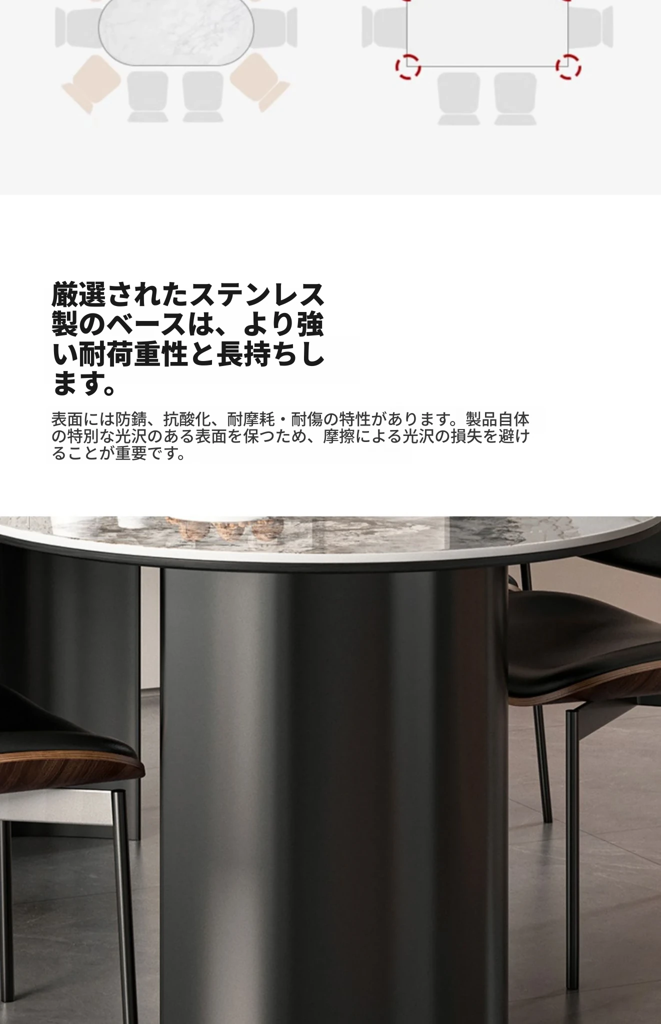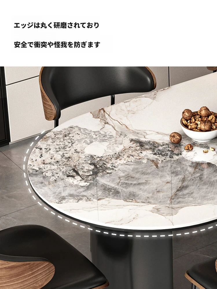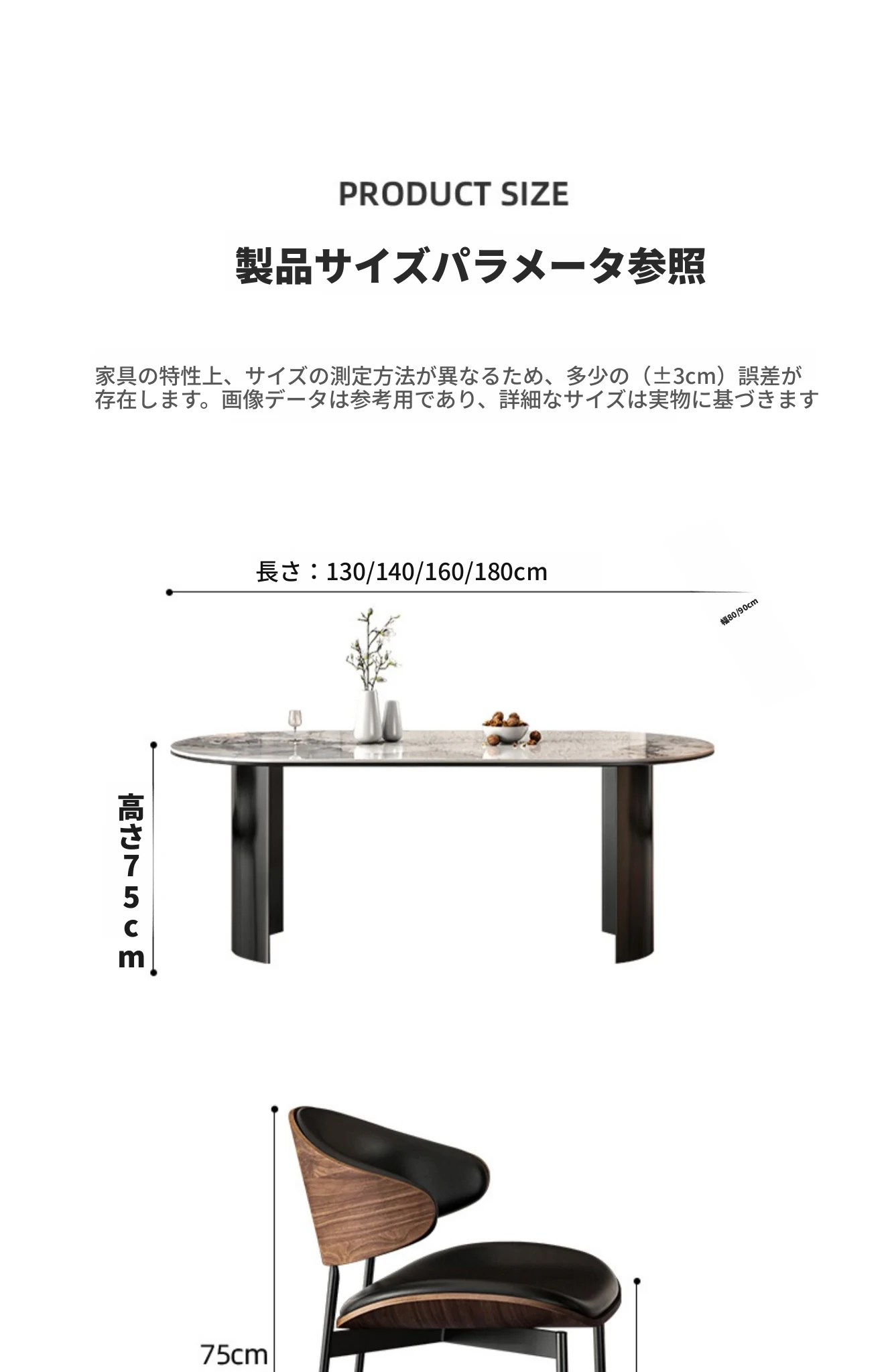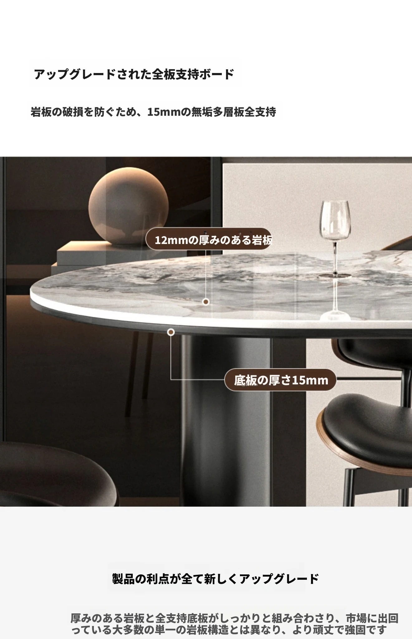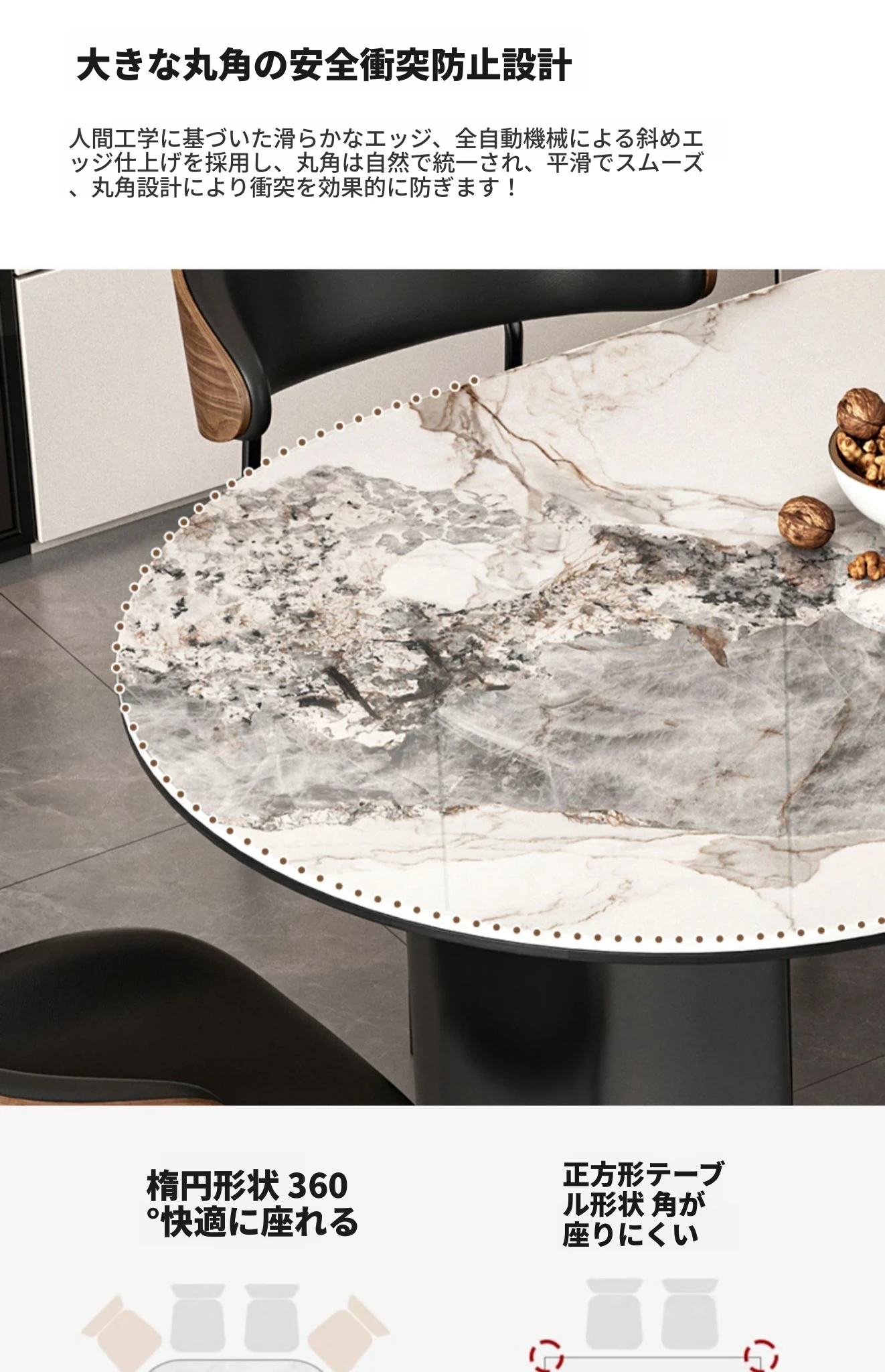 1.3メートル岩板ダイニングテーブル(アップグレード全支持耐荷重板)+猫爪レザー製ダイニングチェア*6