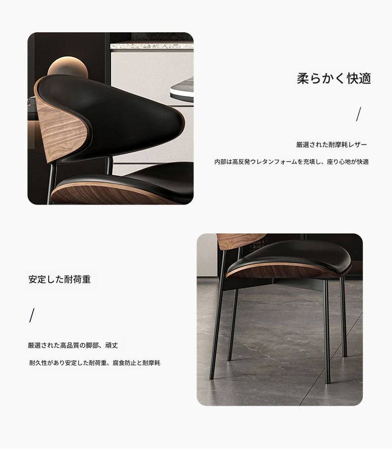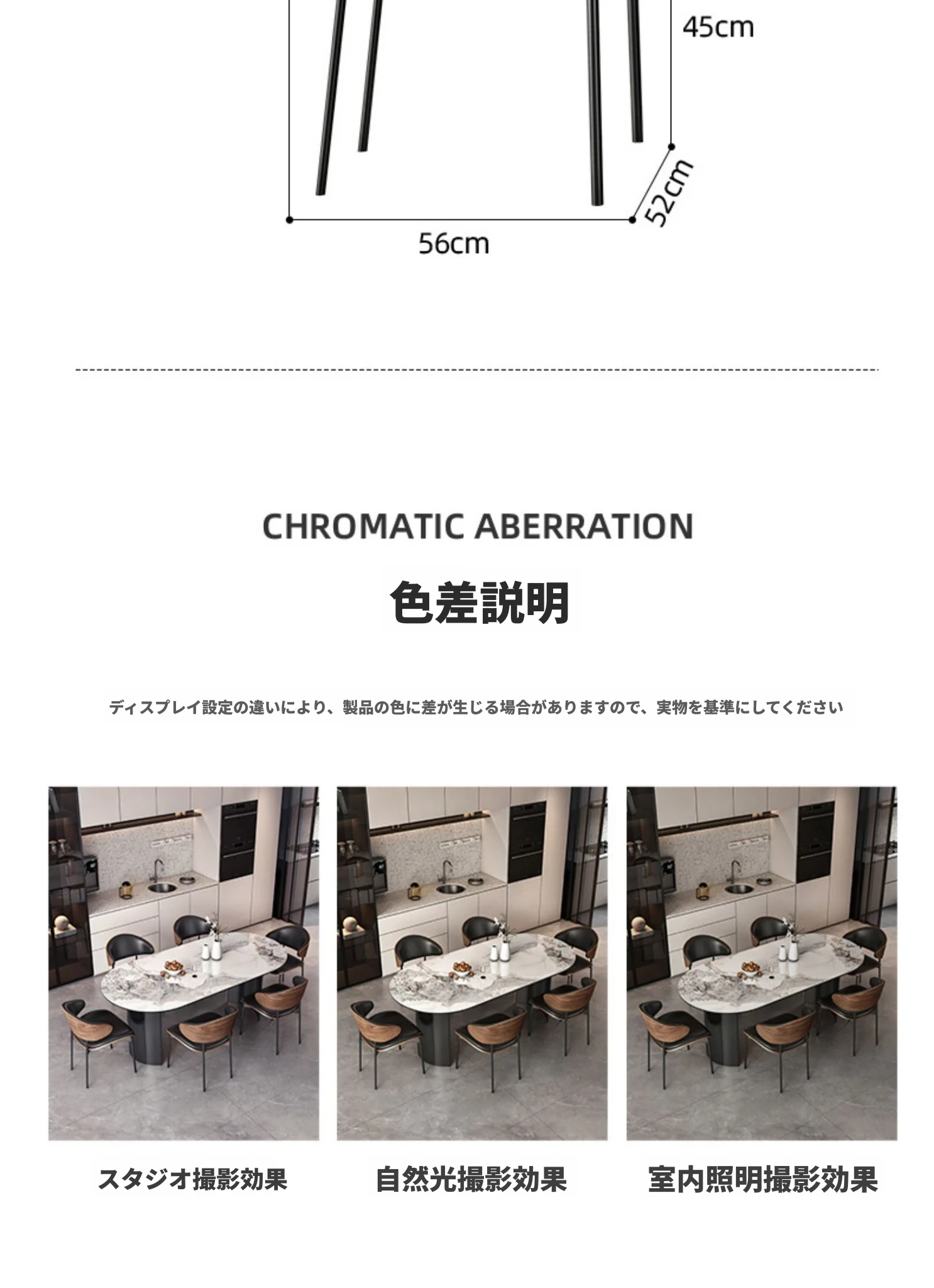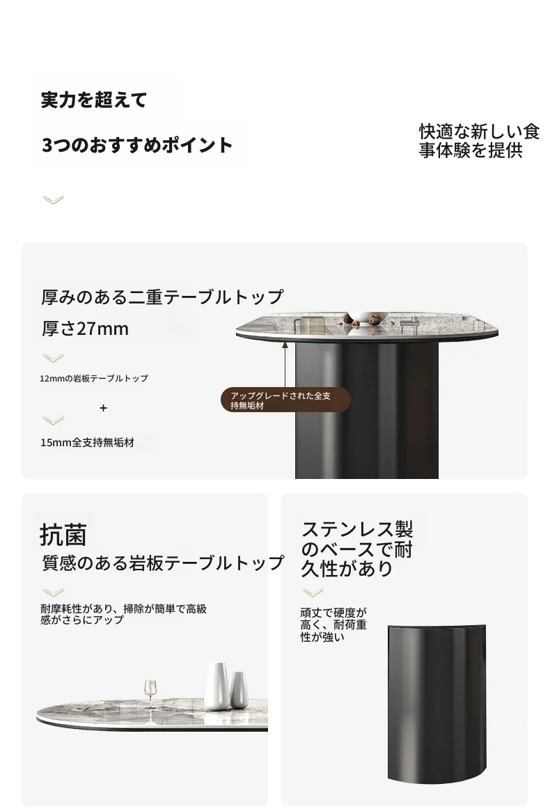 1.3メートル岩板ダイニングテーブル(アップグレード全支持耐荷重板)+猫爪レザー製ダイニングチェア*4