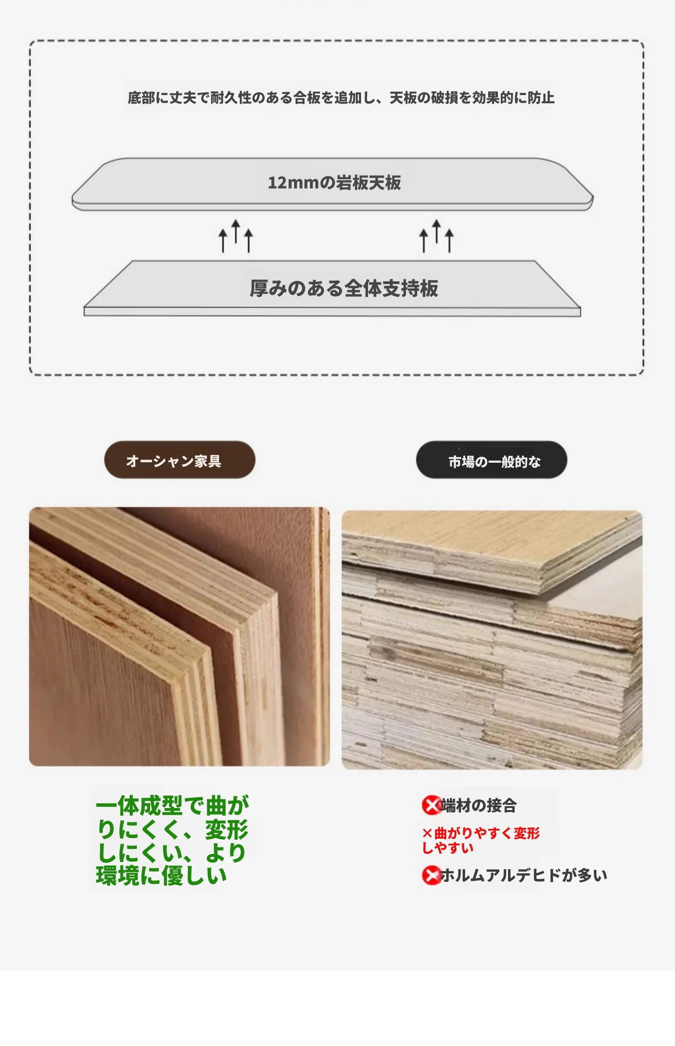 1.6メートル岩板ダイニングテーブル(アップグレード全支持耐荷重板)