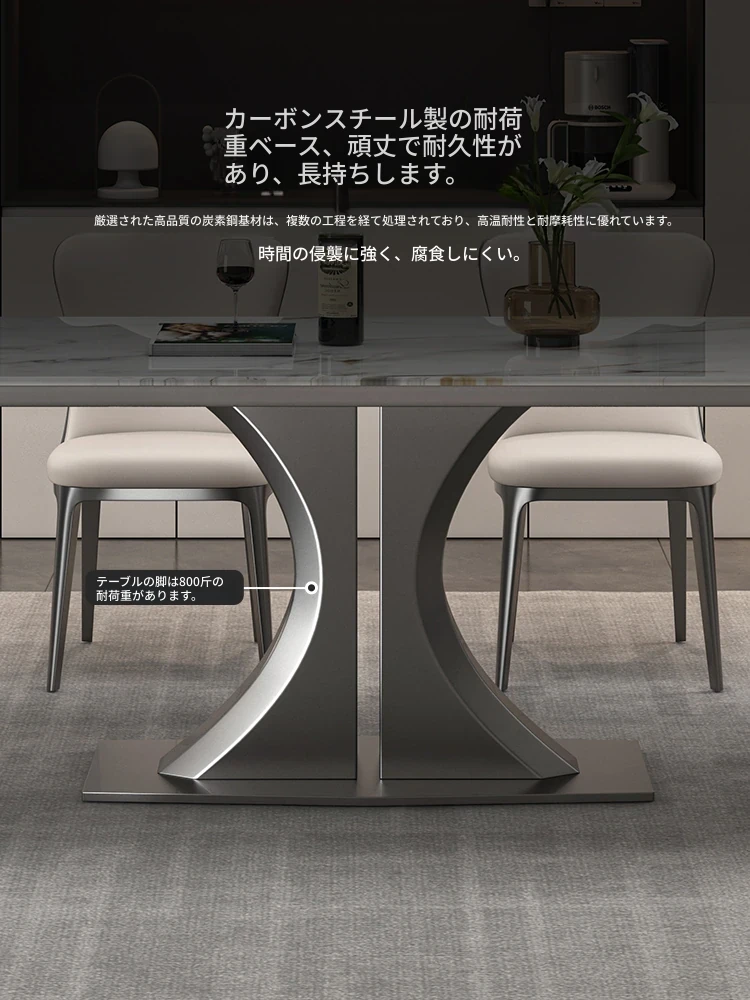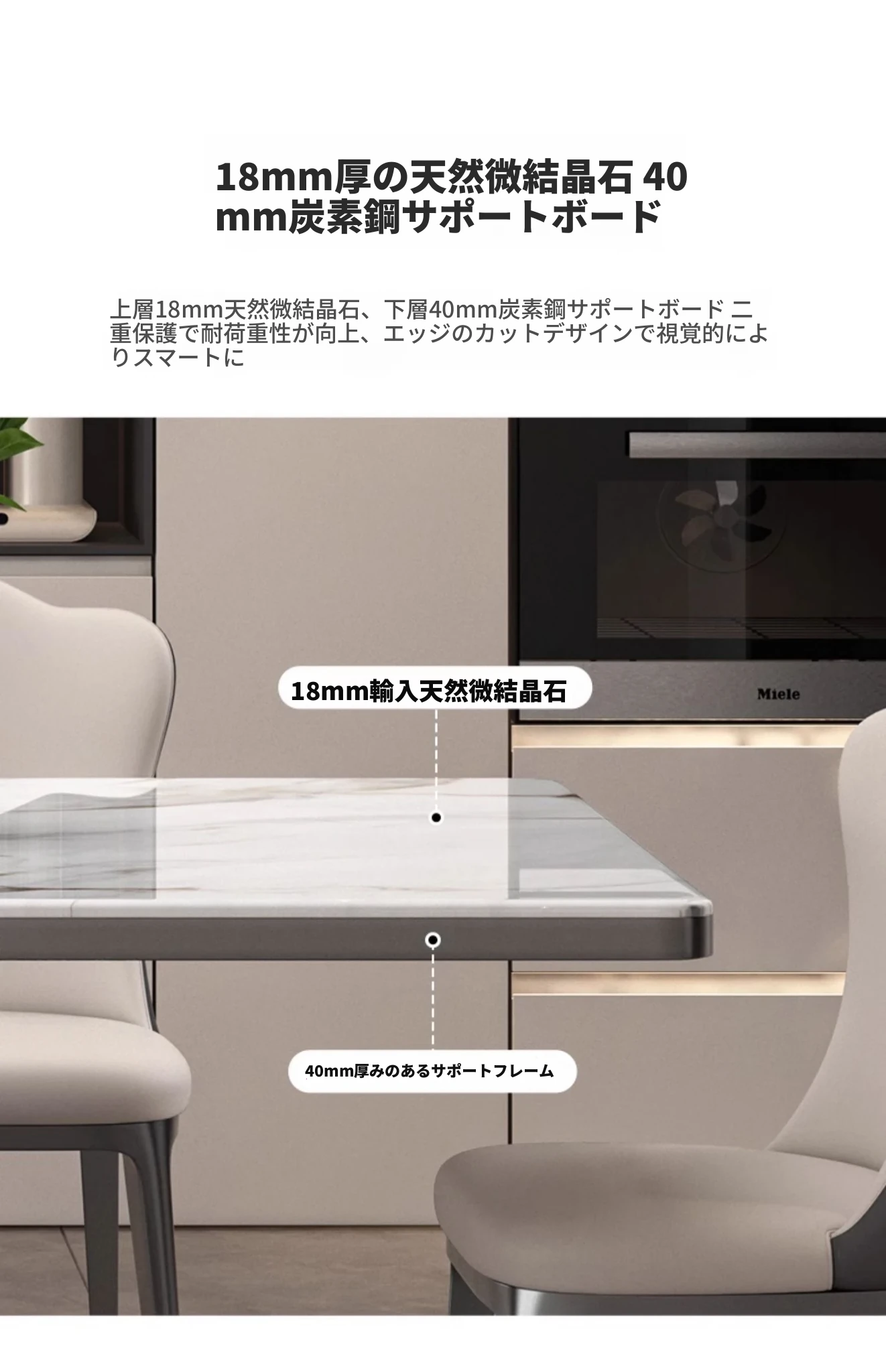 1.8M天然微晶石ダイニングテーブル【アップグレード複合全托+金具フレーム】