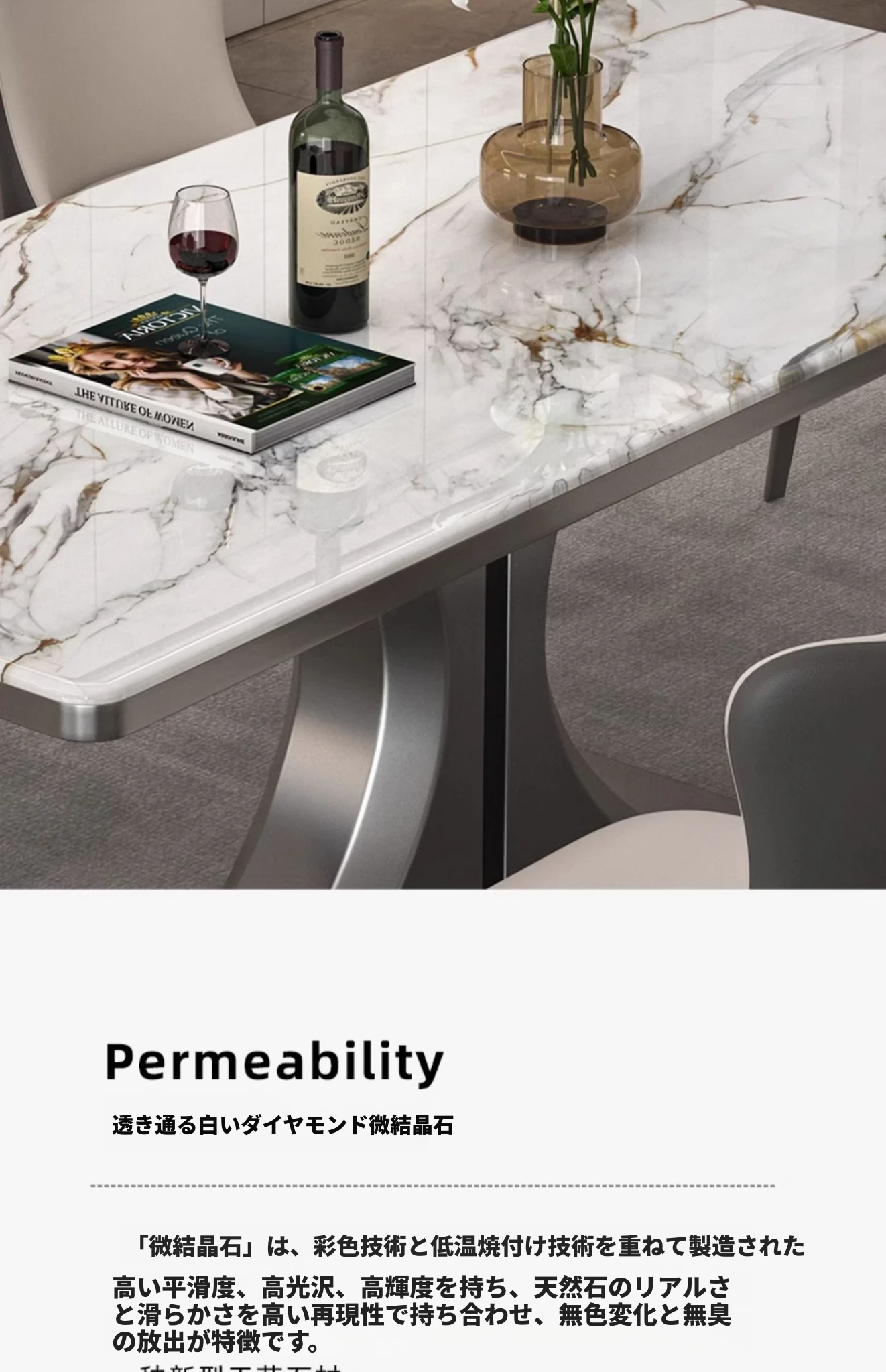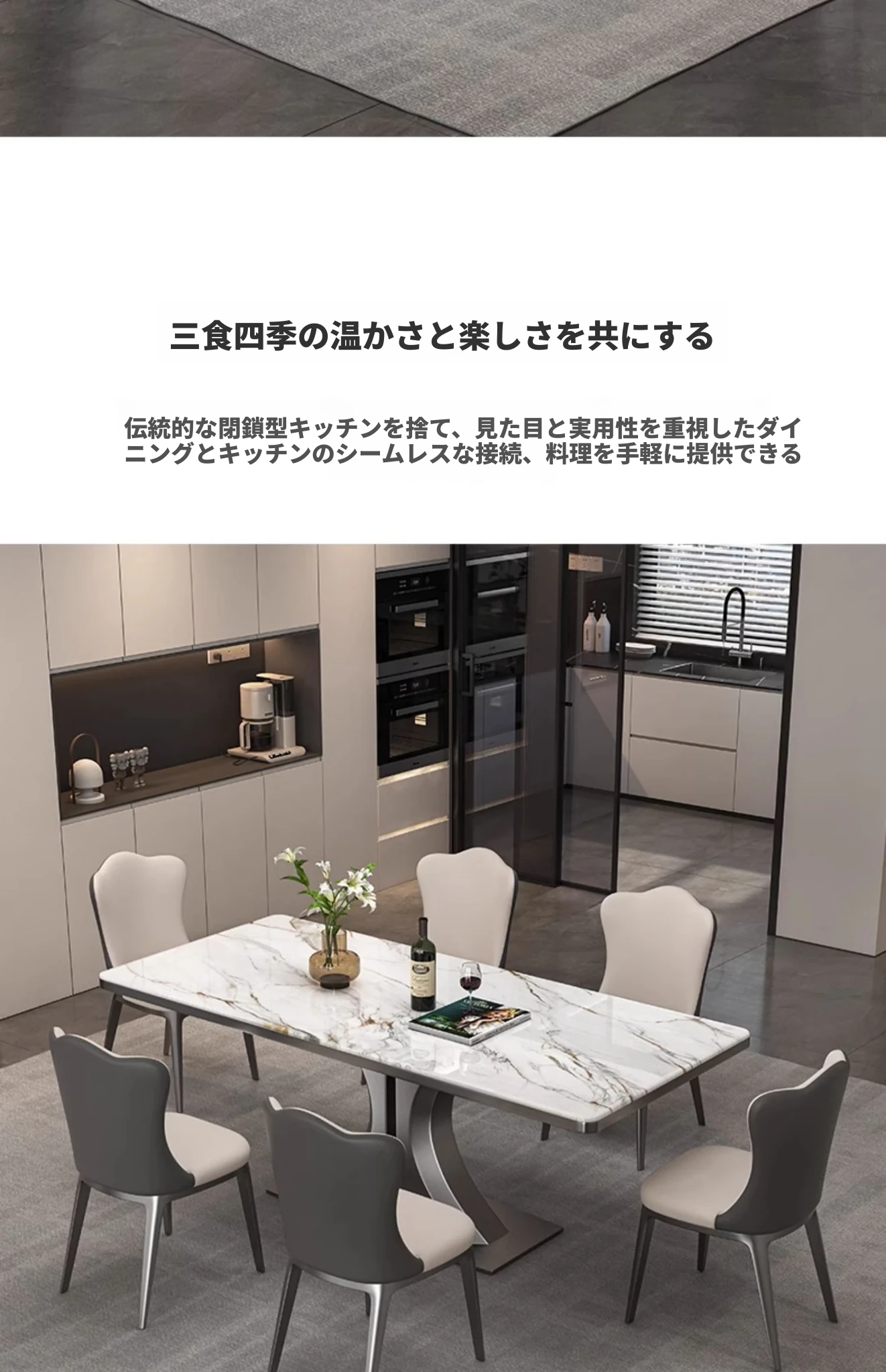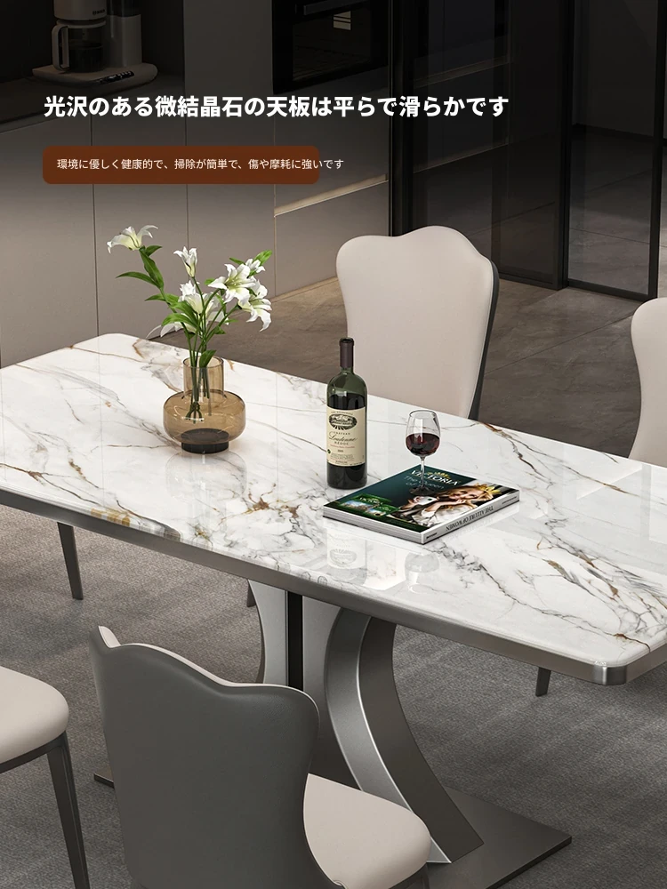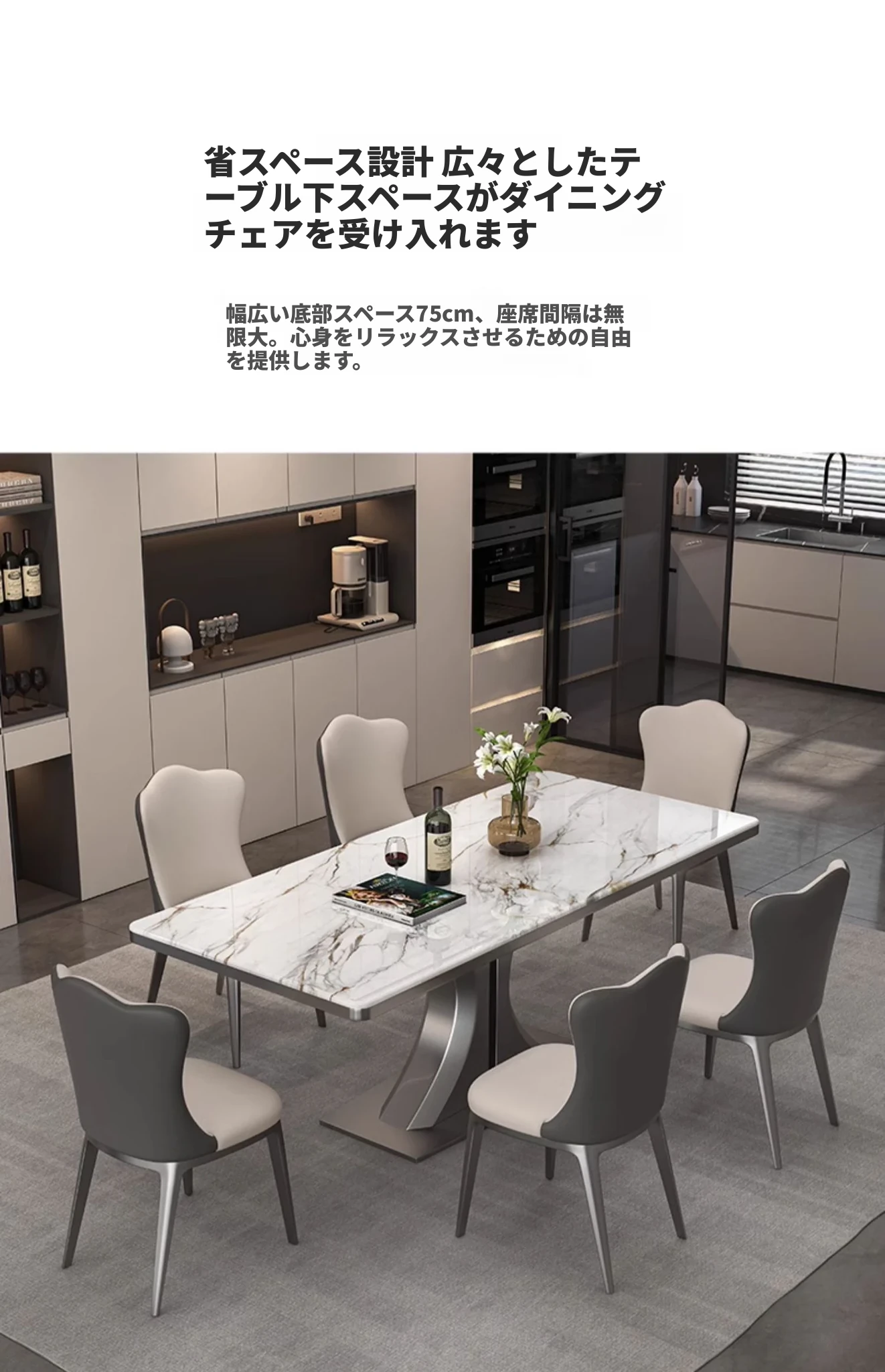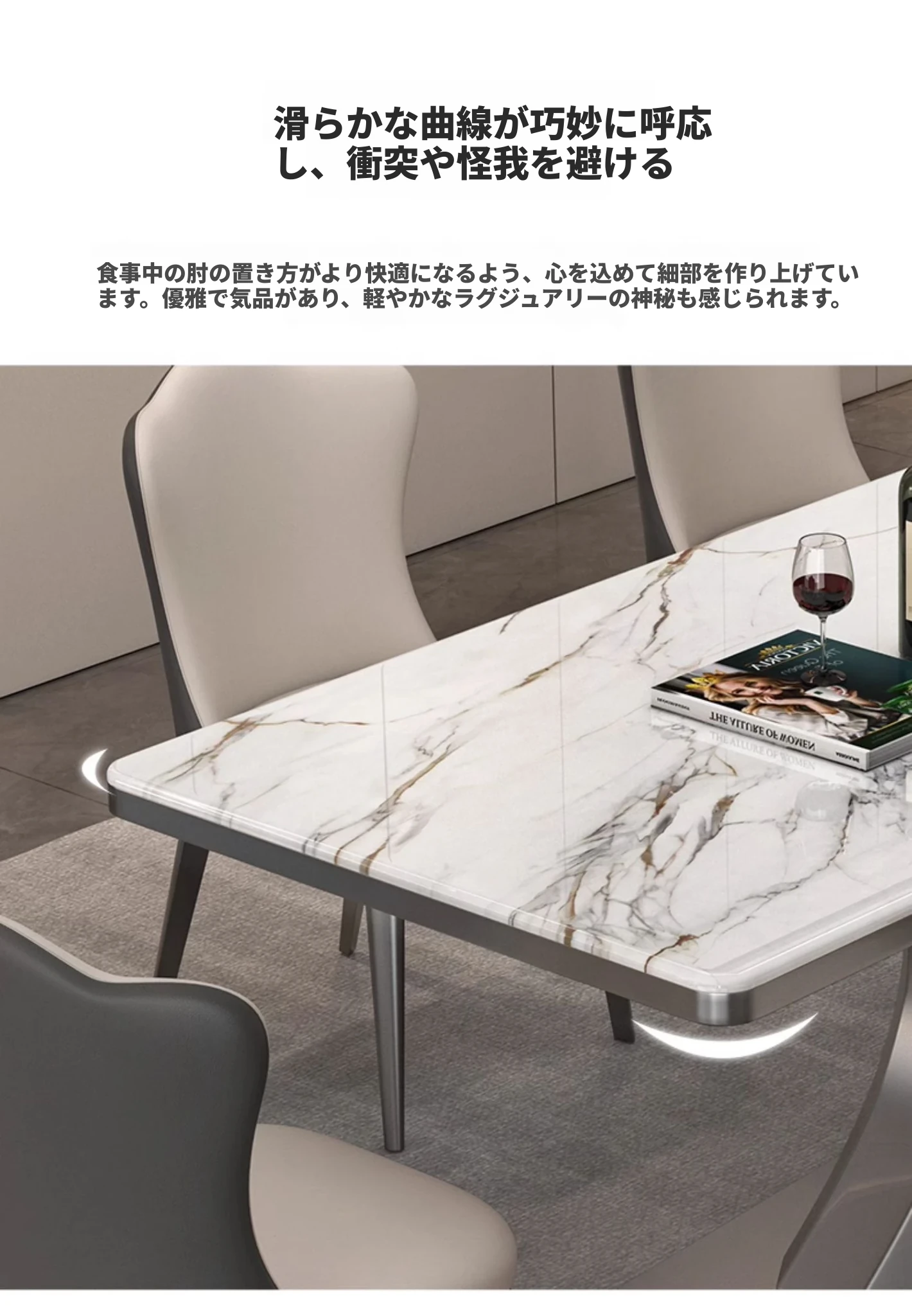 1.4M天然微晶石ダイニングテーブル+高級キャットスクラッチレザーのダイニングチェア*6