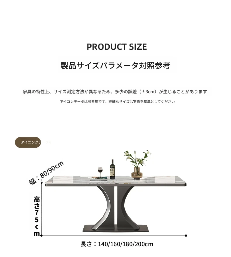 1.4M天然微晶石ダイニングテーブル【アップグレード複合全托+金具フレーム】