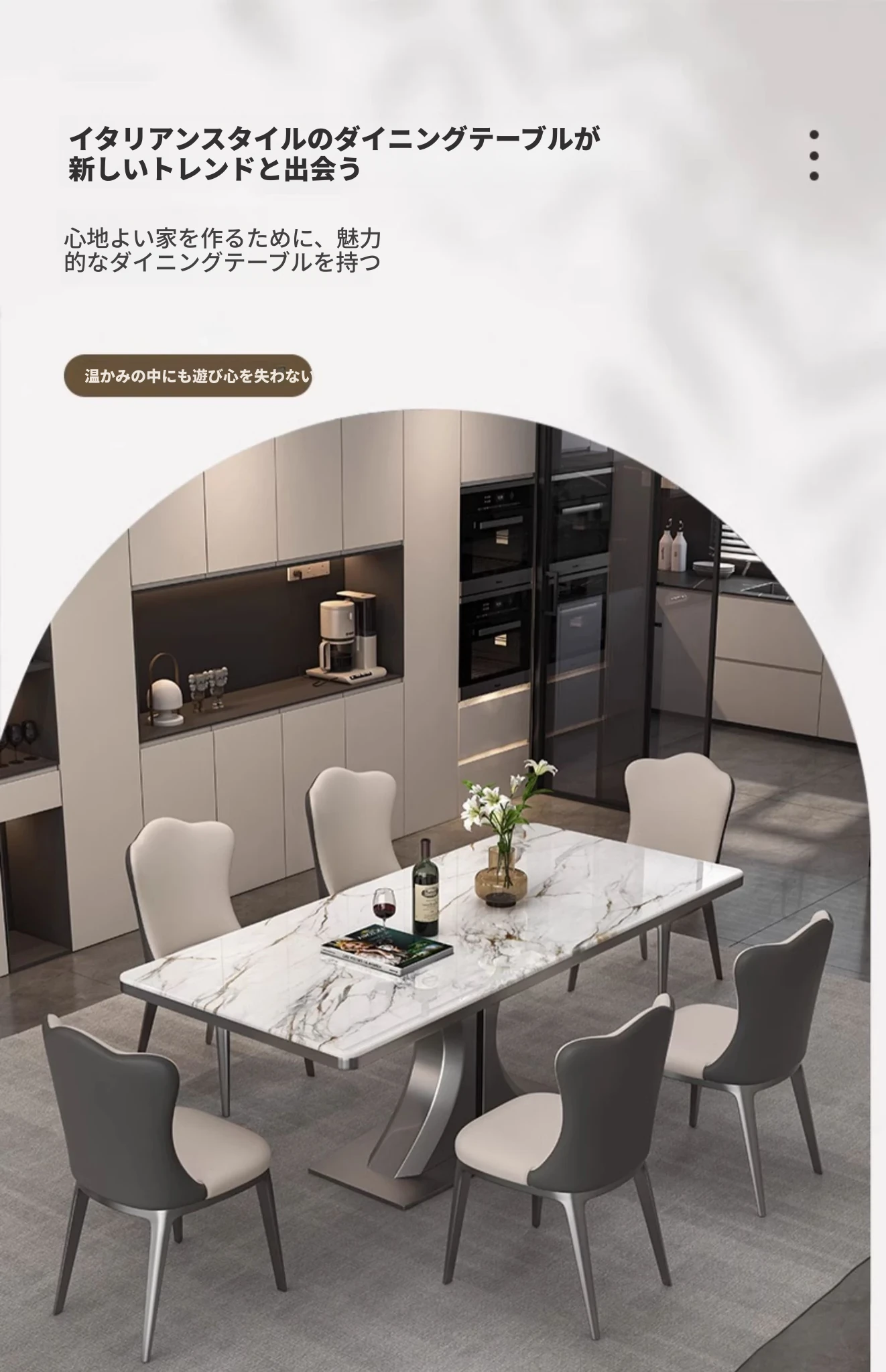 1.8M天然微晶石ダイニングテーブル+高級キャットスクラッチレザーのダイニングチェア*6