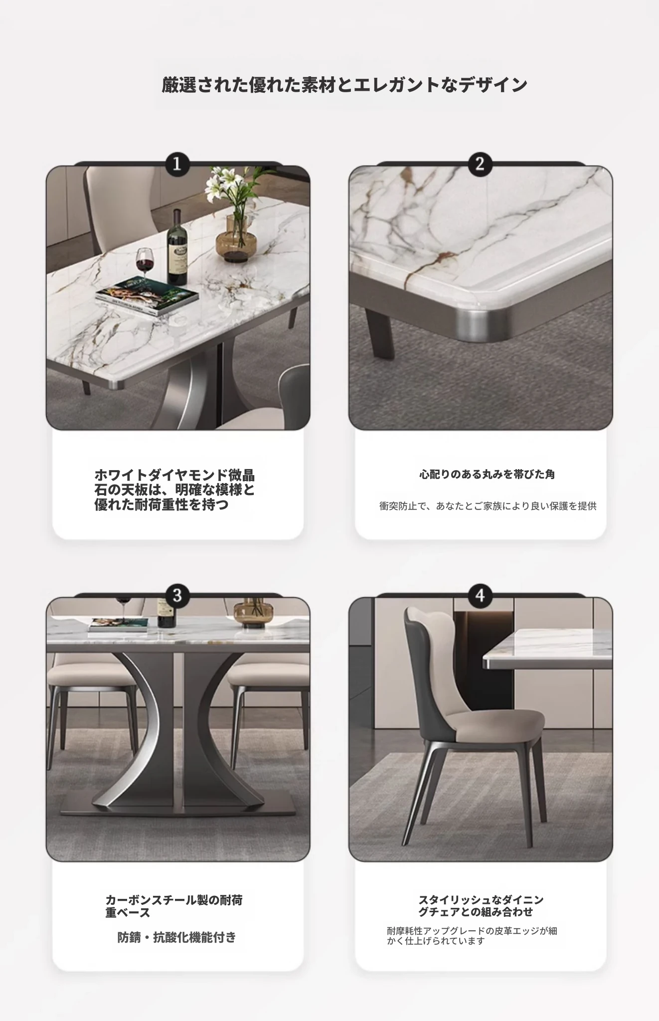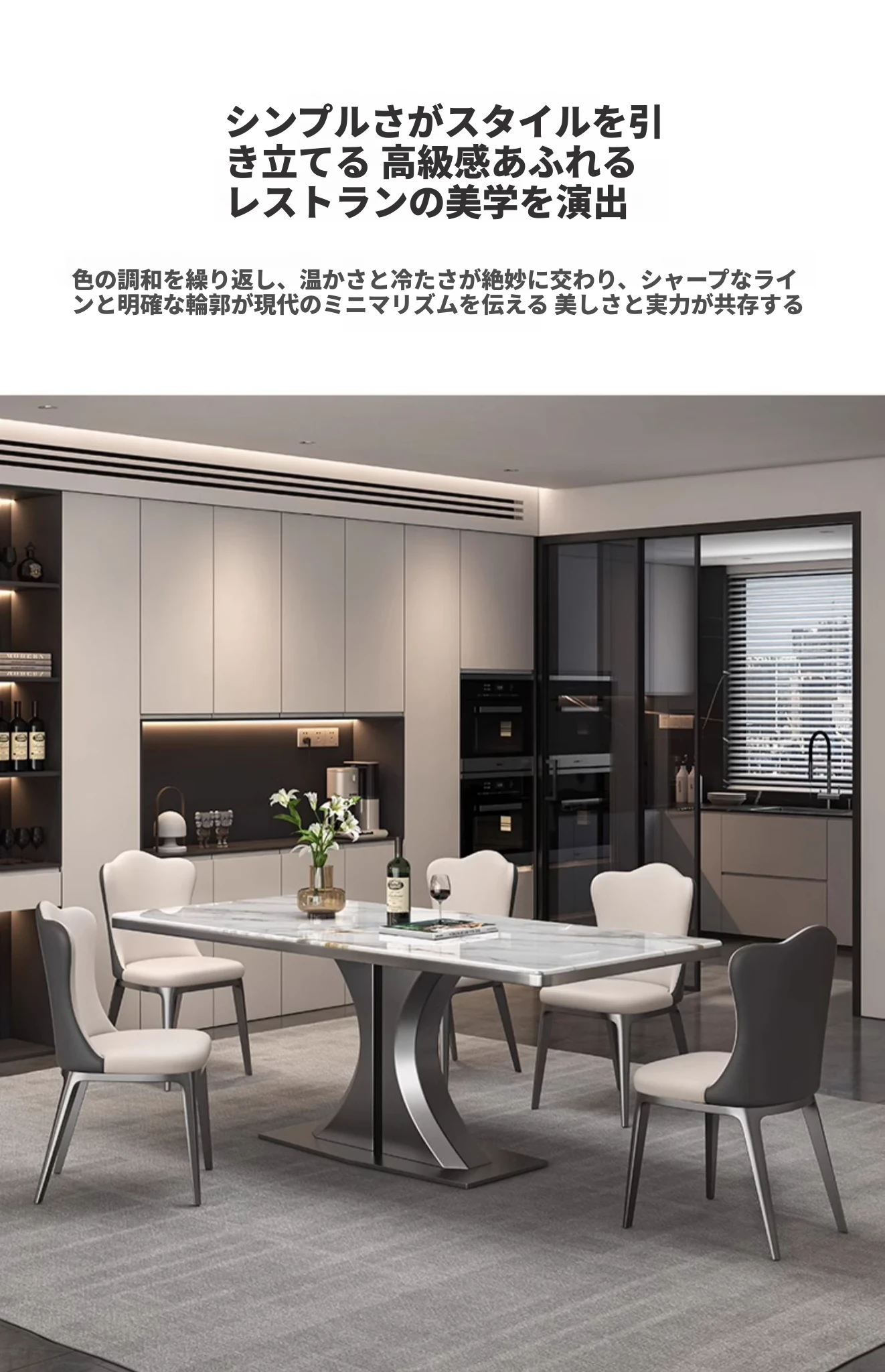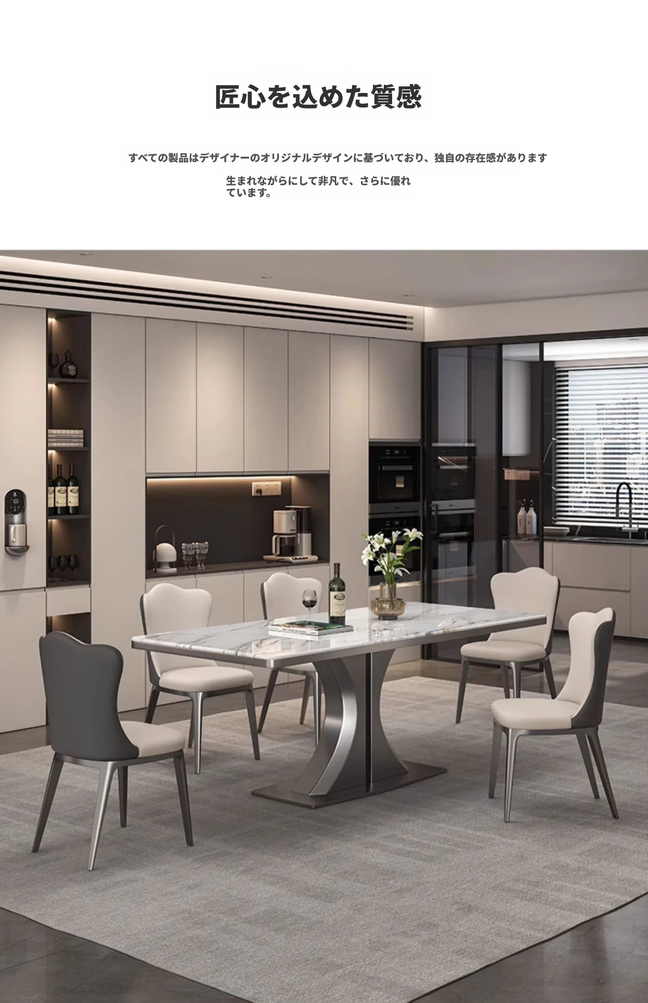 1.6M天然微晶石ダイニングテーブル+高級キャットスクラッチレザーのダイニングチェア*4