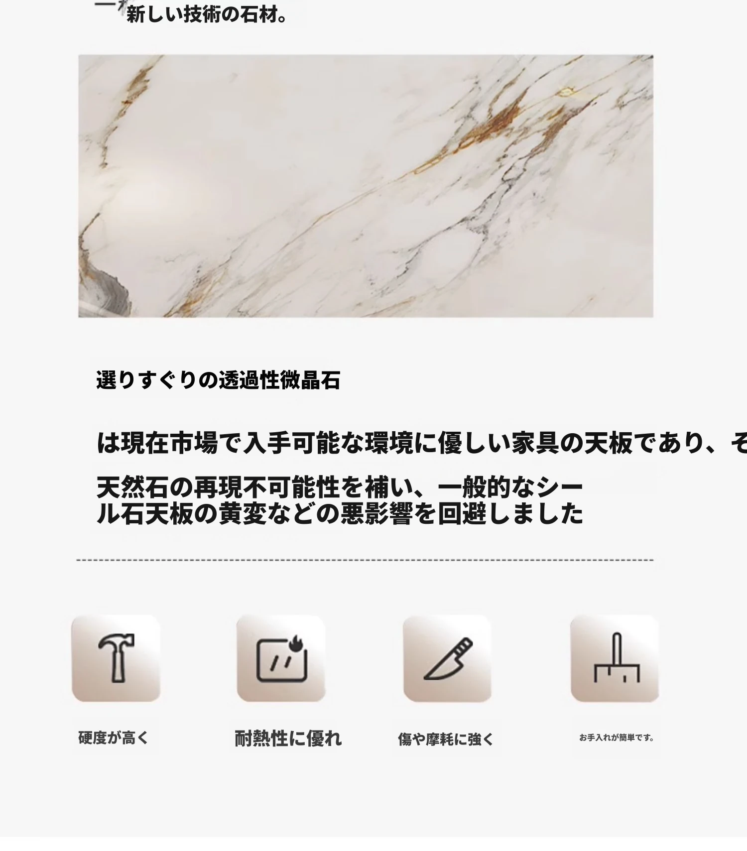 1.3M天然微晶石ダイニングテーブル【アップグレード複合全托+金具フレーム】