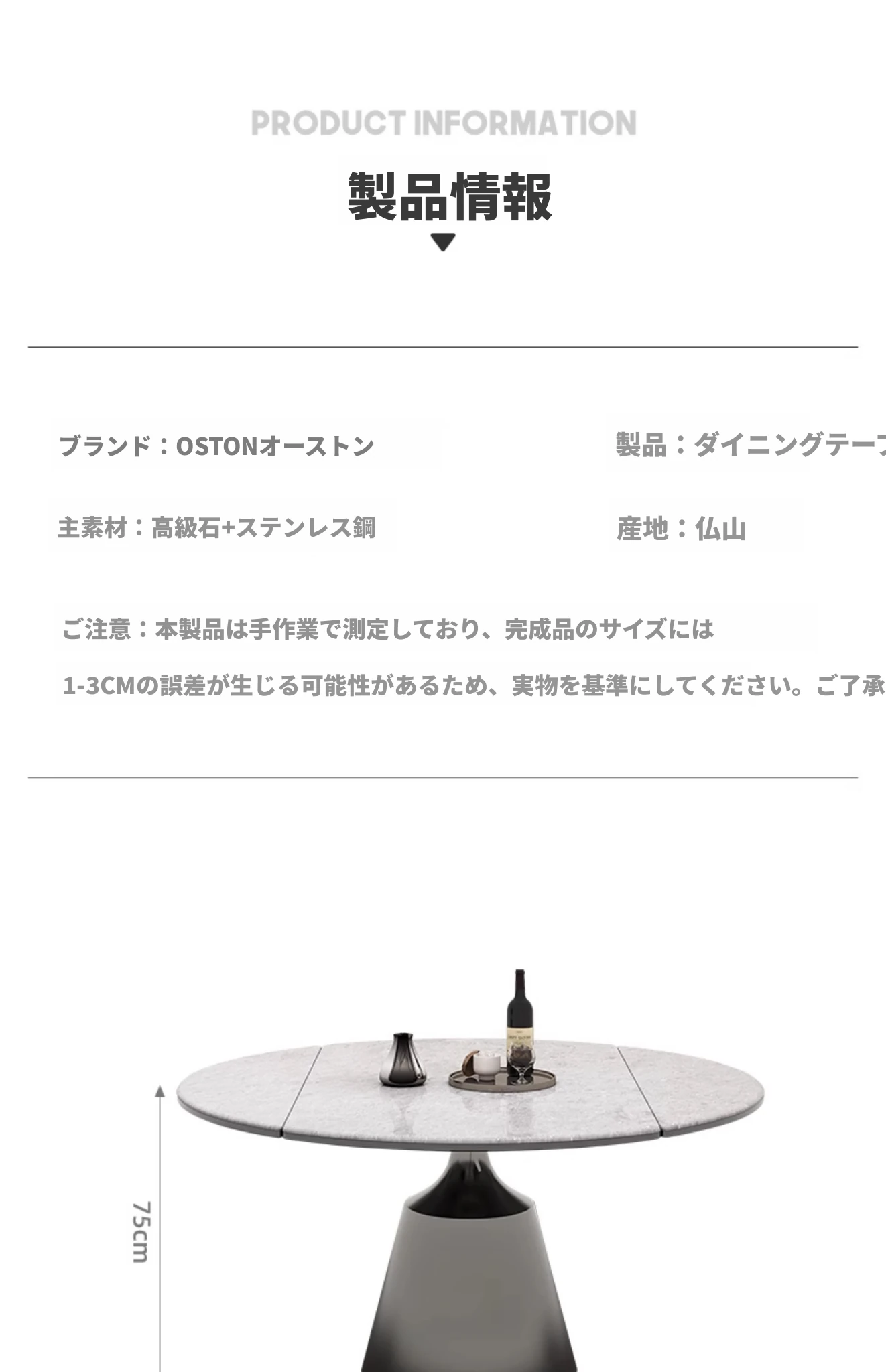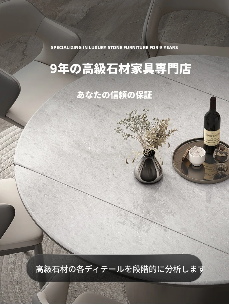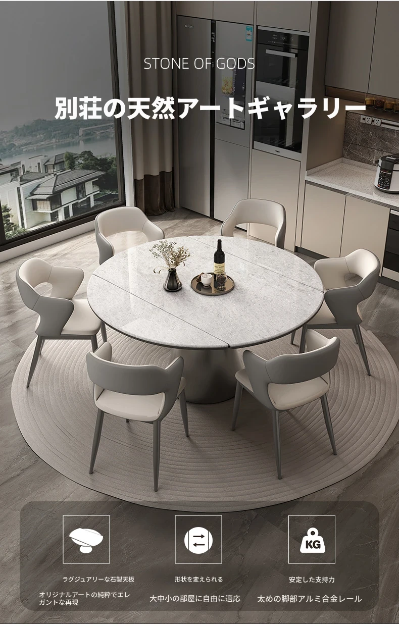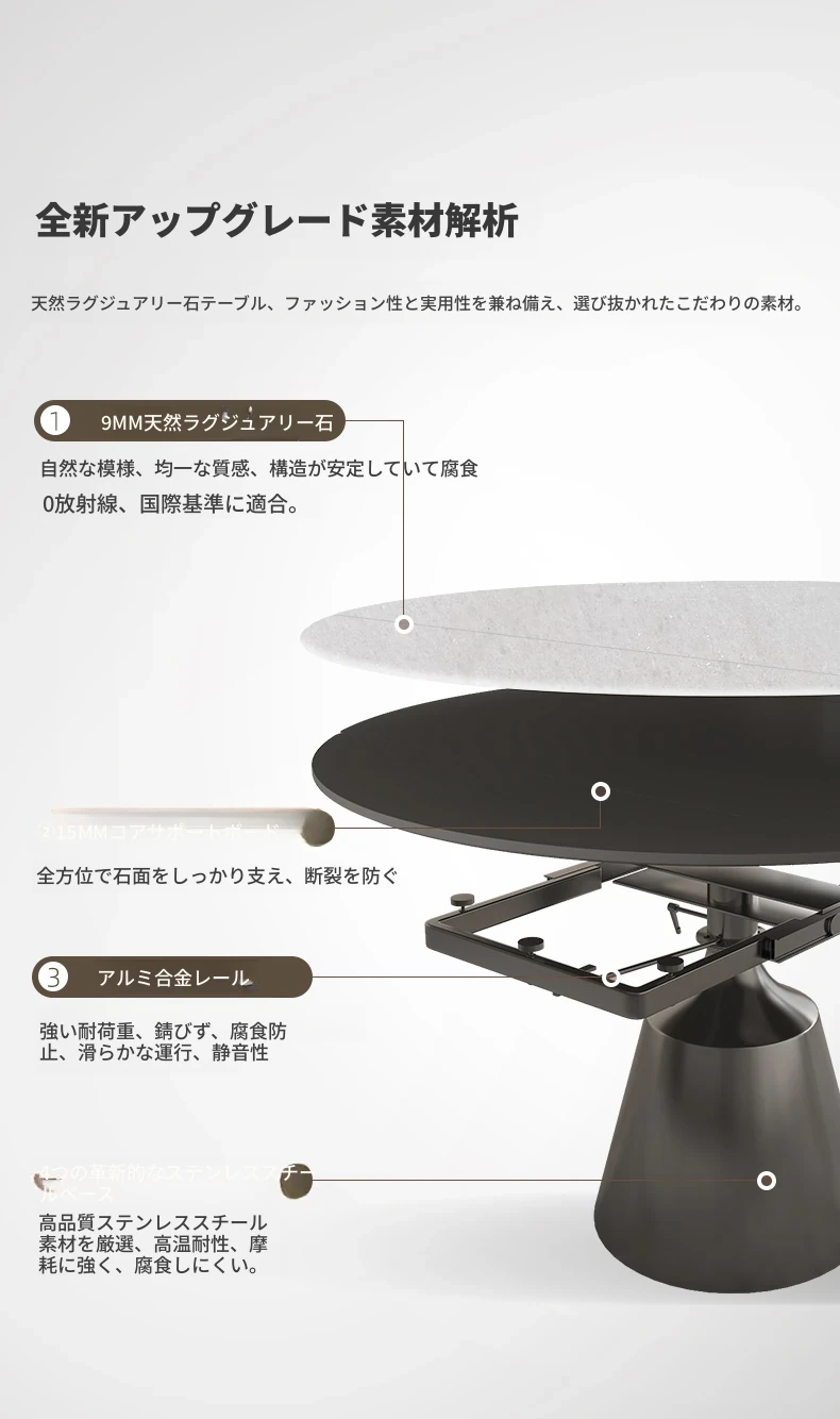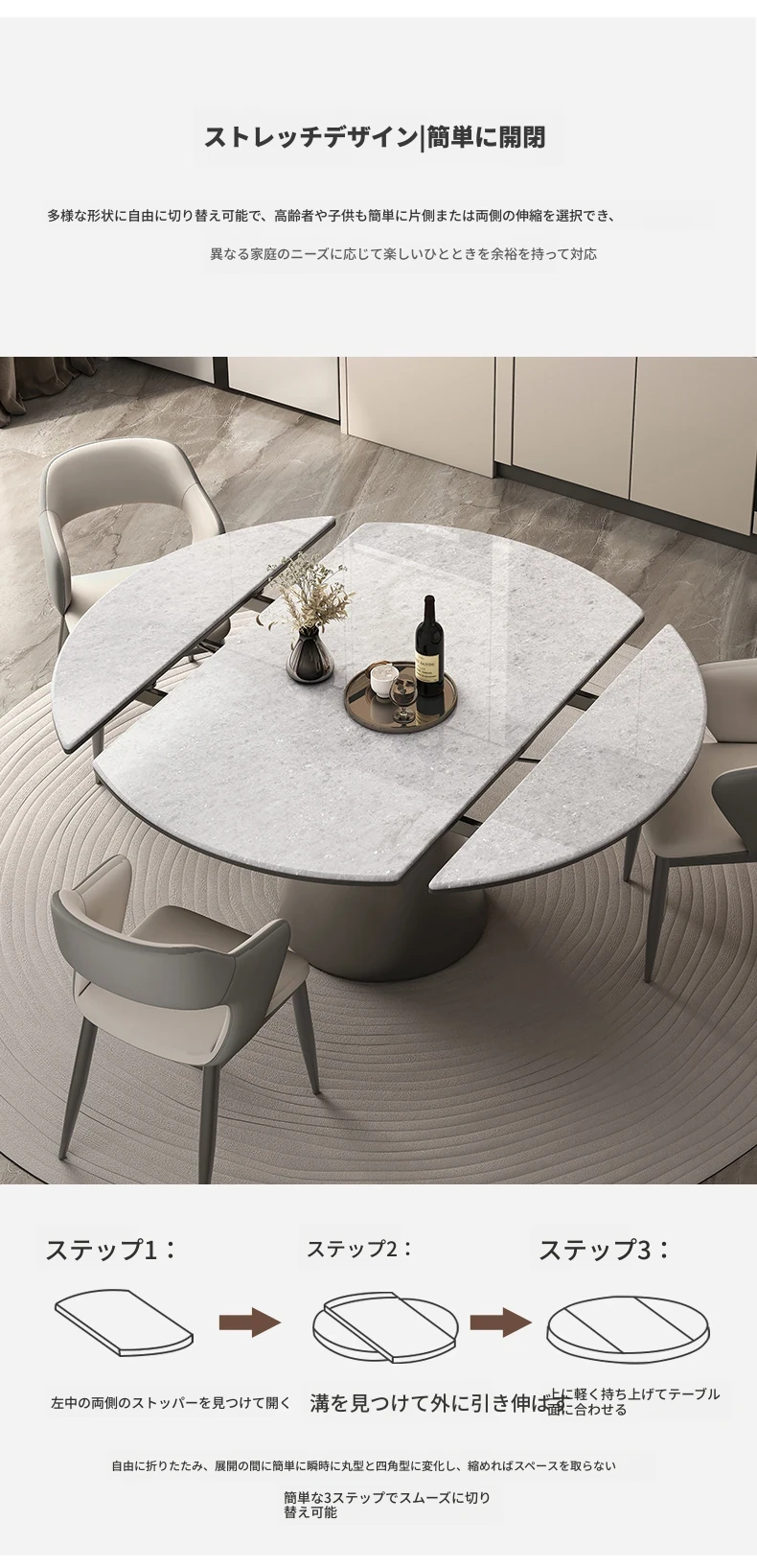 伸縮式ダイニングテーブル(高級輸入ラグジュアリーストーン)
