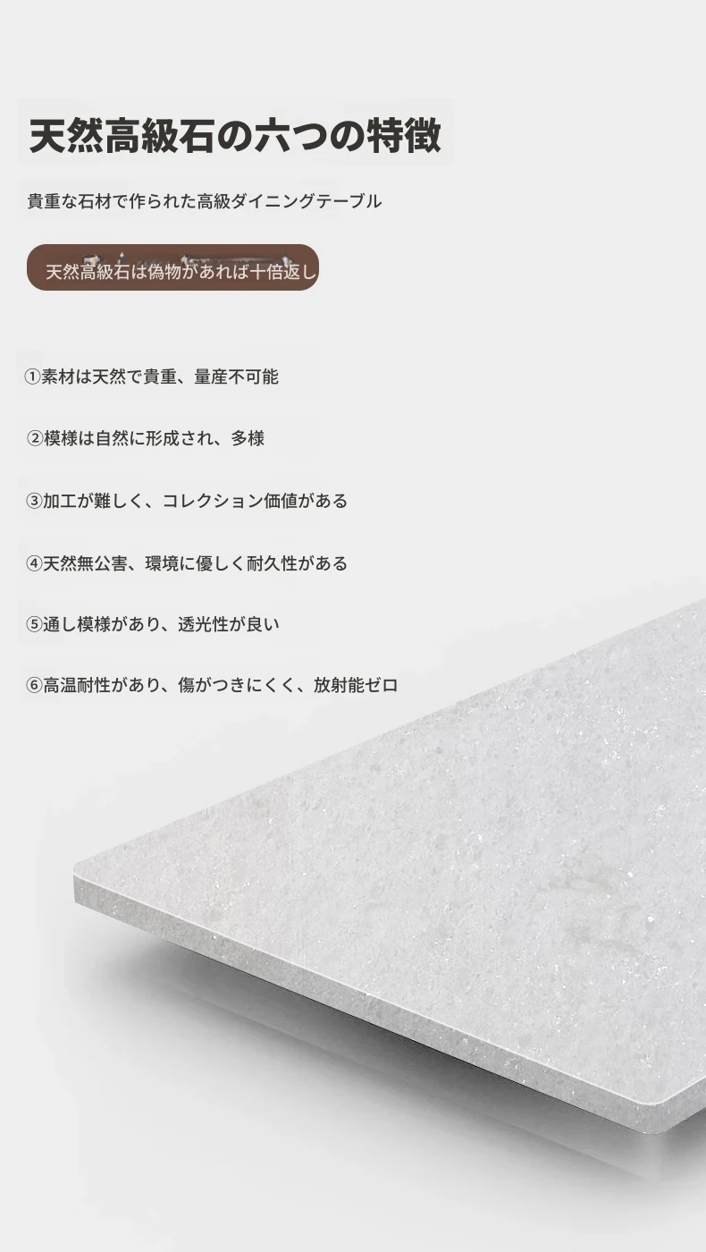 伸縮式ダイニングテーブル(高級輸入ラグジュアリーストーン)+キャットスクラッチレザー椅子*4