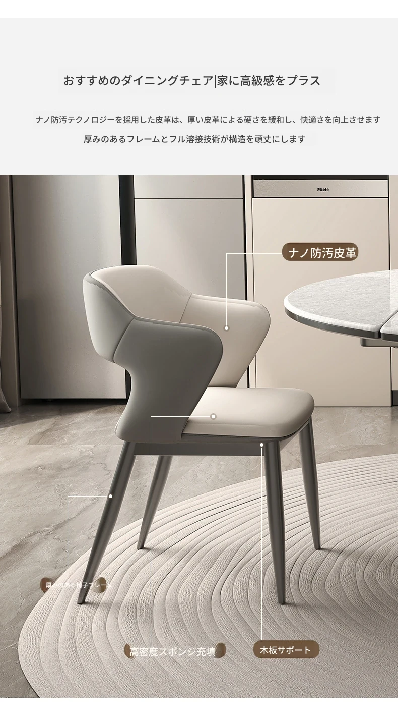 回転式ダイニングテーブル(高級輸入ラグジュアリーストーン)+キャットスクラッチレザー椅子*4