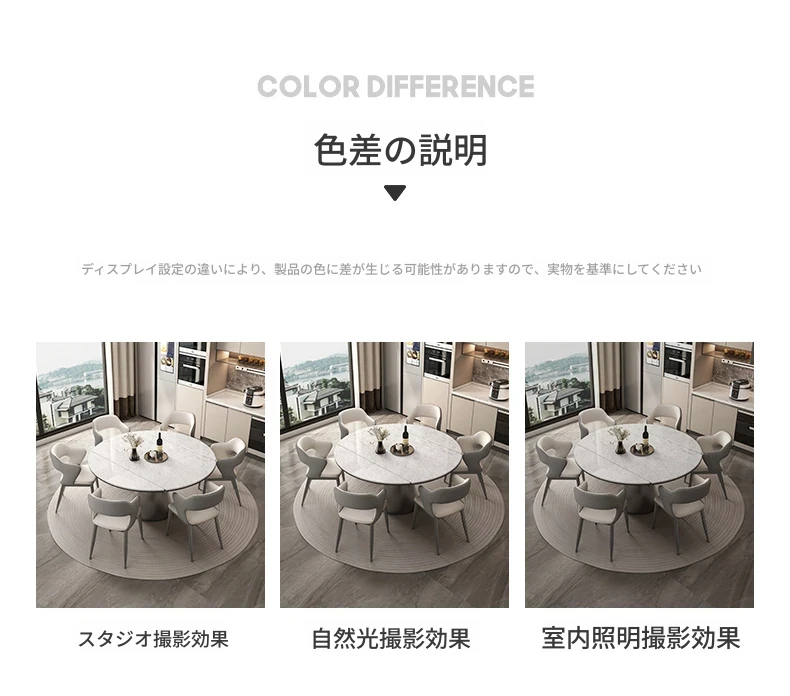 回転式ダイニングテーブル(高級輸入ラグジュアリーストーン)+キャットスクラッチレザー椅子*6