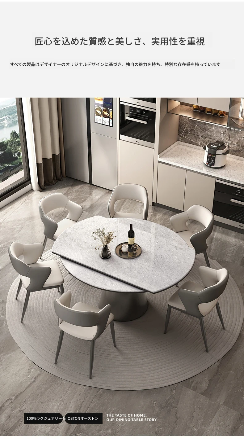 伸縮式ダイニングテーブル(高級輸入ラグジュアリーストーン)+キャットスクラッチレザー椅子*6