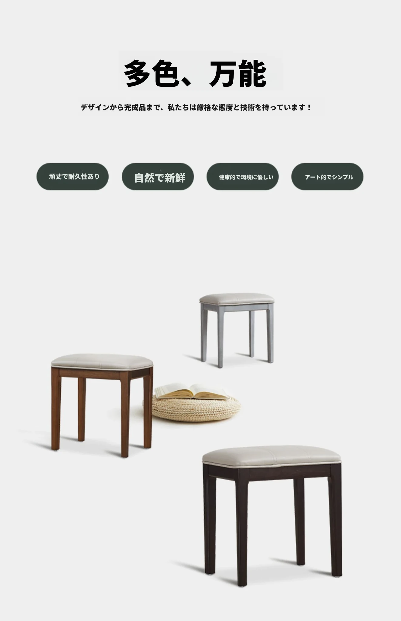 北欧スタイルの天然木製ドレッシングスツール|現代的でシンプルなデザイン|快適なソフトパッキング|家庭用に最適|スタッキング可能な人気メイクアップスツールです!