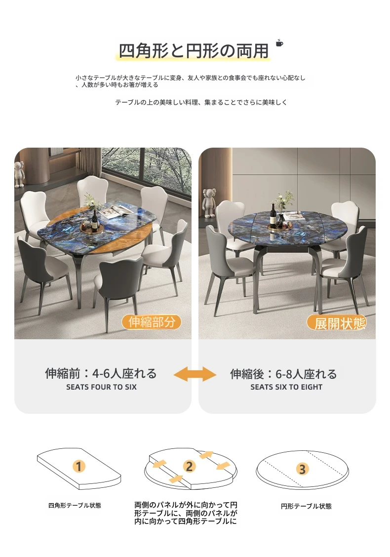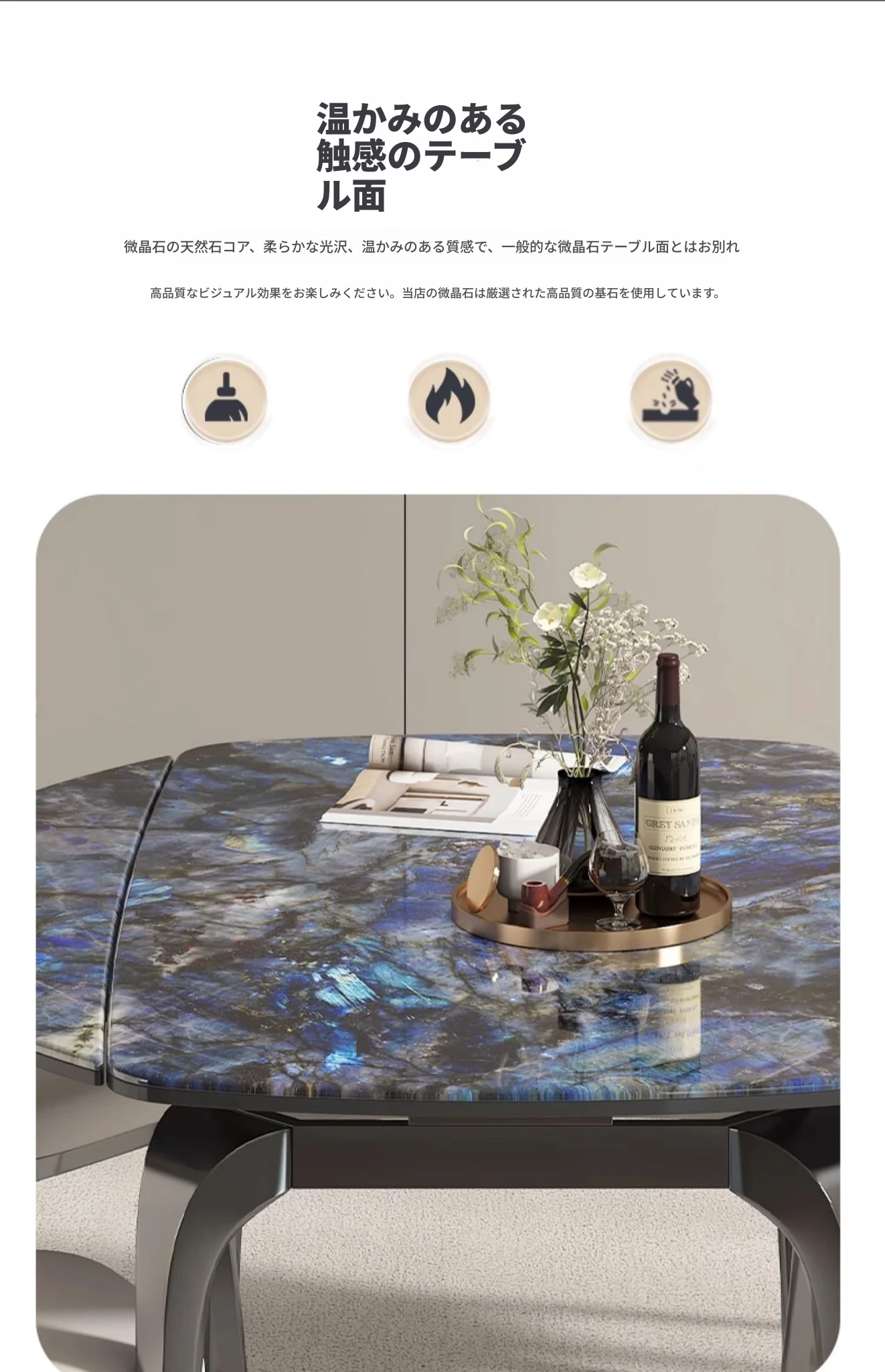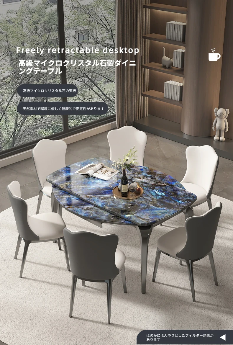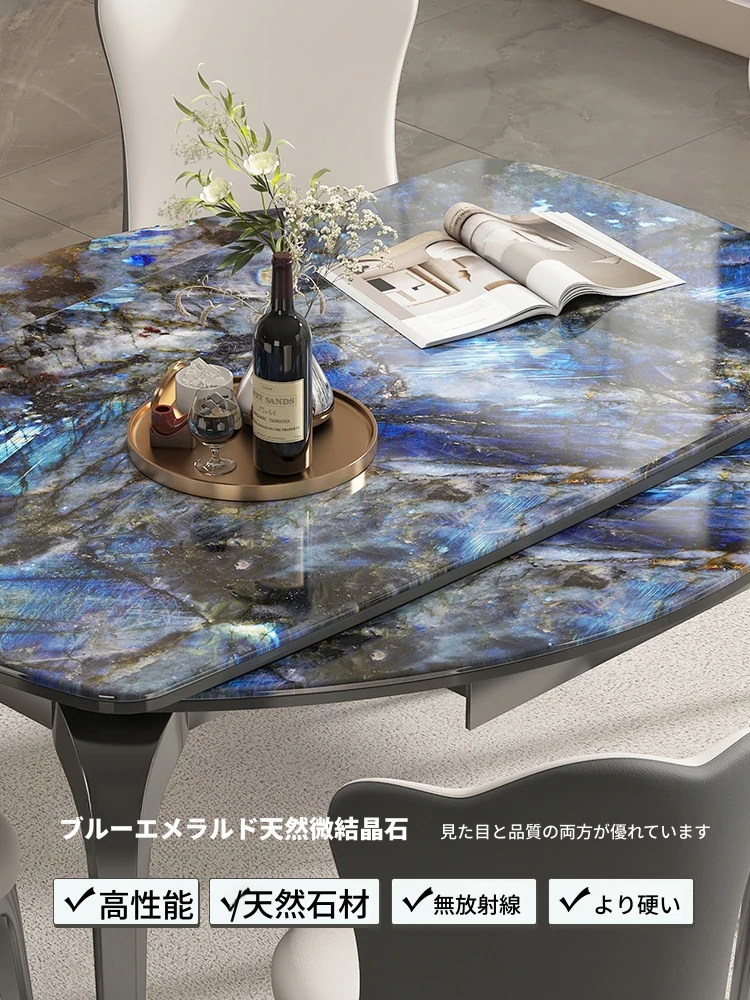 1.3Mブルージェイド微結晶石伸縮ダイニングテーブル