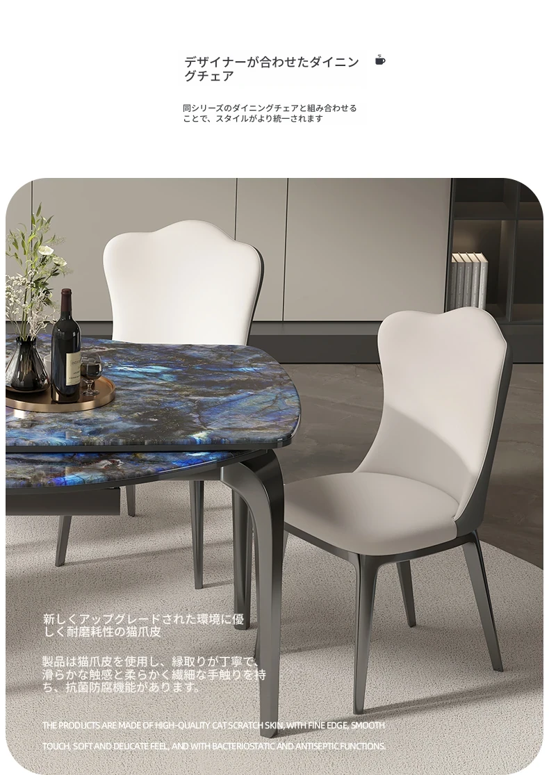 1.5Mブルージェイド微結晶石伸縮ダイニングテーブル+雲の椅子*6