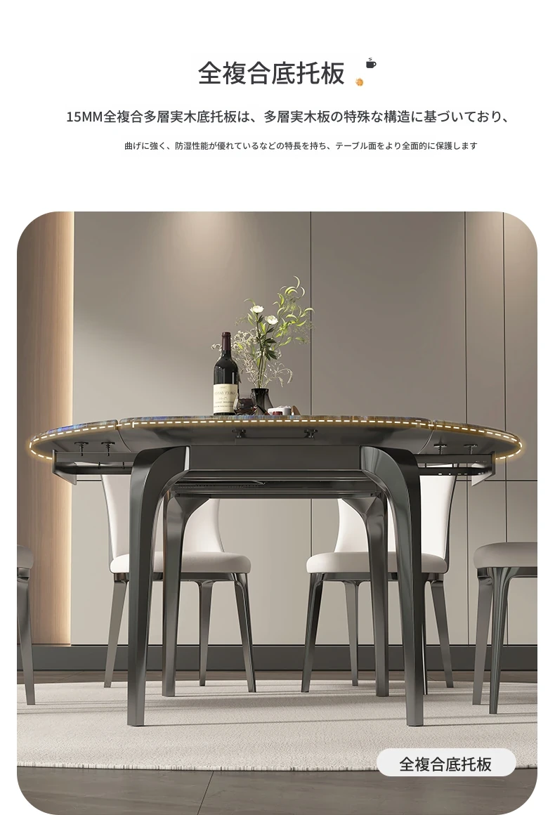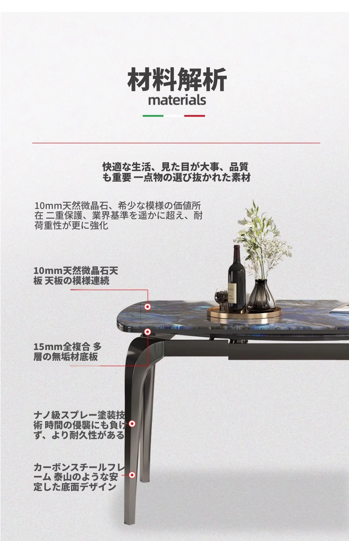 1.5Mブルージェイド微結晶石伸縮ダイニングテーブル